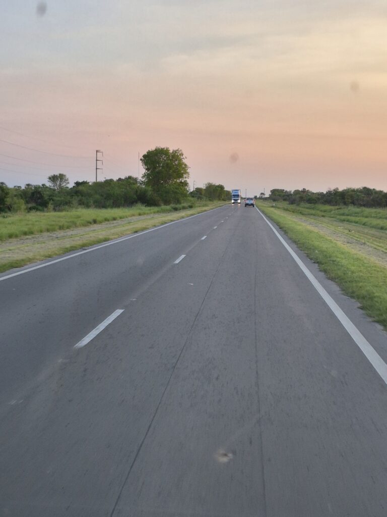 Nous passons les deux premiers jours à rouler. Rien d’intéressant jusqu’à Bahia Blanca, une route rectiligne, de la pampa à perte de vue, des poids lourds, des nids de poule…voilà pourquoi je ne commencerai mon décompte qu’à partir de l’entrée de la Ruta3.