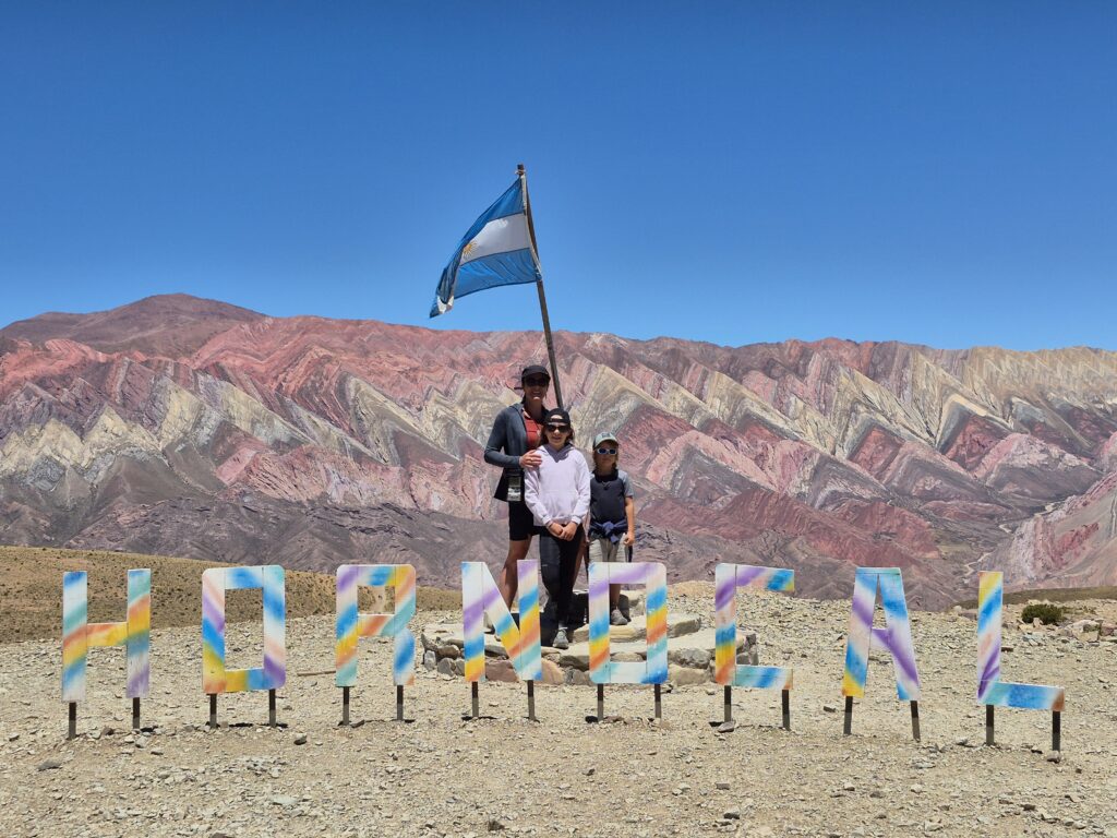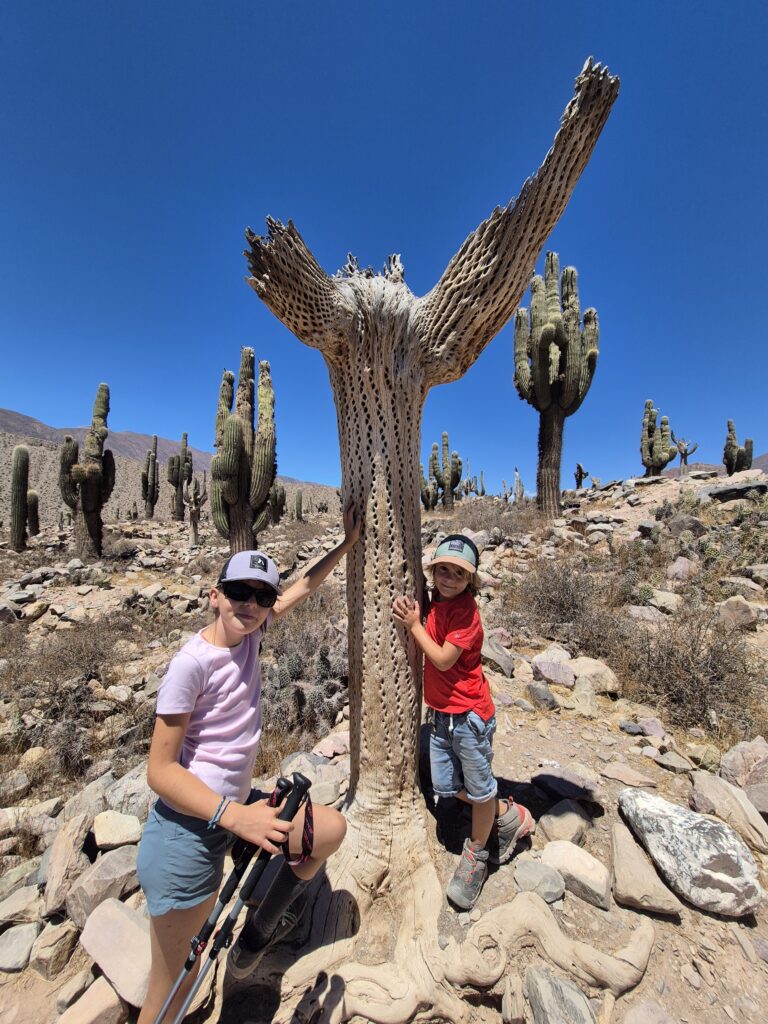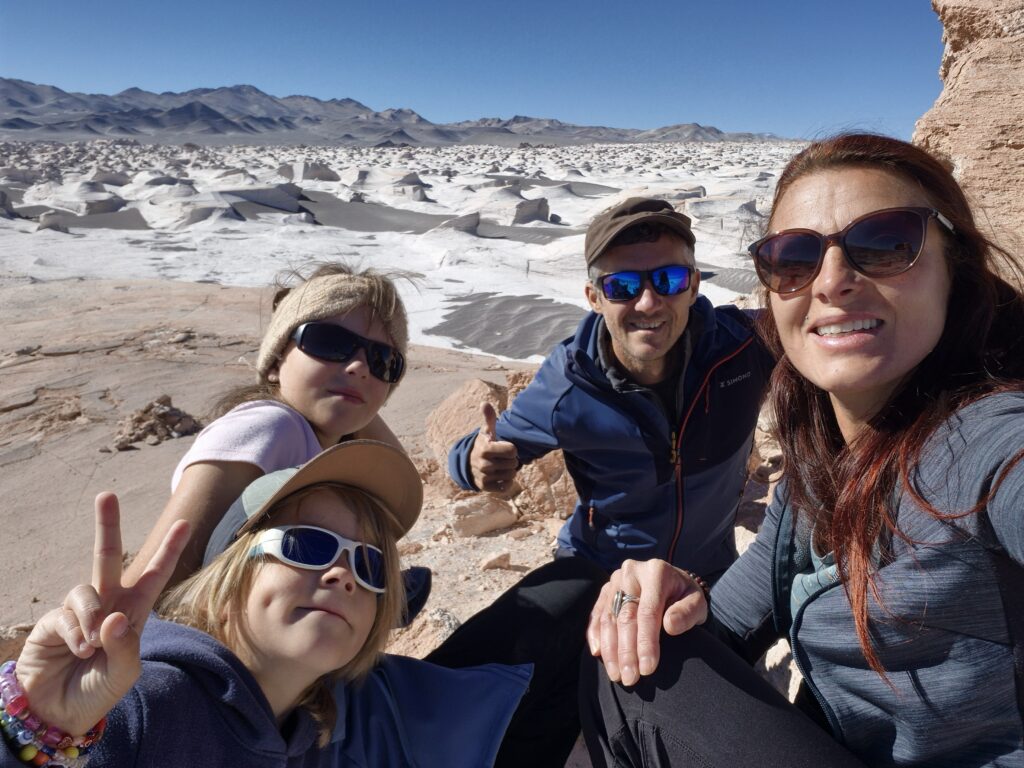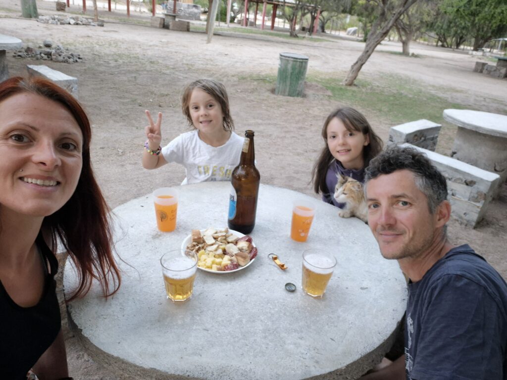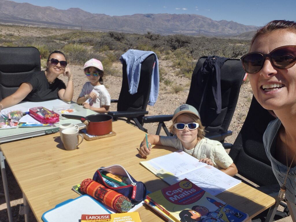 En fin d’après-midi, nous descendons au village d’Humahuaca pour faire des courses. A peine garés, un camping-car immatriculé en France se gare en face de nous. Il s’agit de la famille « Tib-casita »: Fred, Julie et leurs deux filles Julia et Louna. Nous commençons à discuter, à échanger sur nos expériences et nous les invitons à venir nous rejoindre sur notre spot un peu au dessus du village. Nous passerons une bonne soirée à 10, les enfants sont très heureux de pouvoir jouer avec des copains. Ces moments de rencontre avec les autres voyageurs sont toujours très appréciables, de petites pauses d’échange d’idées et d’expériences qui sont précieuses. Nous passerons la journée suivante au même endroit, les enfants font école, nous partageons les repas et je passerai l’après-midi à écrire mes articles en retard.