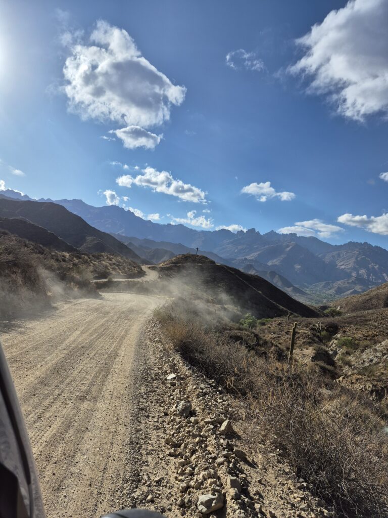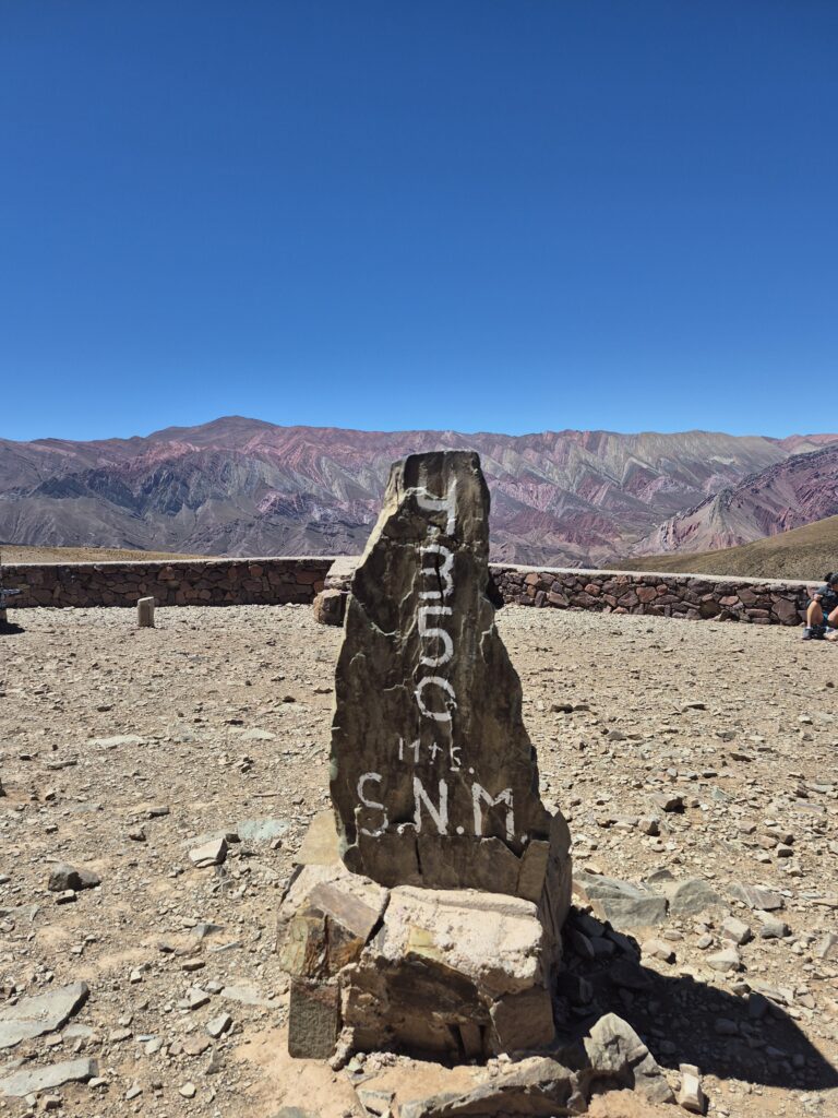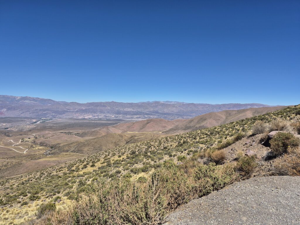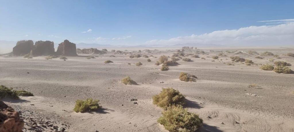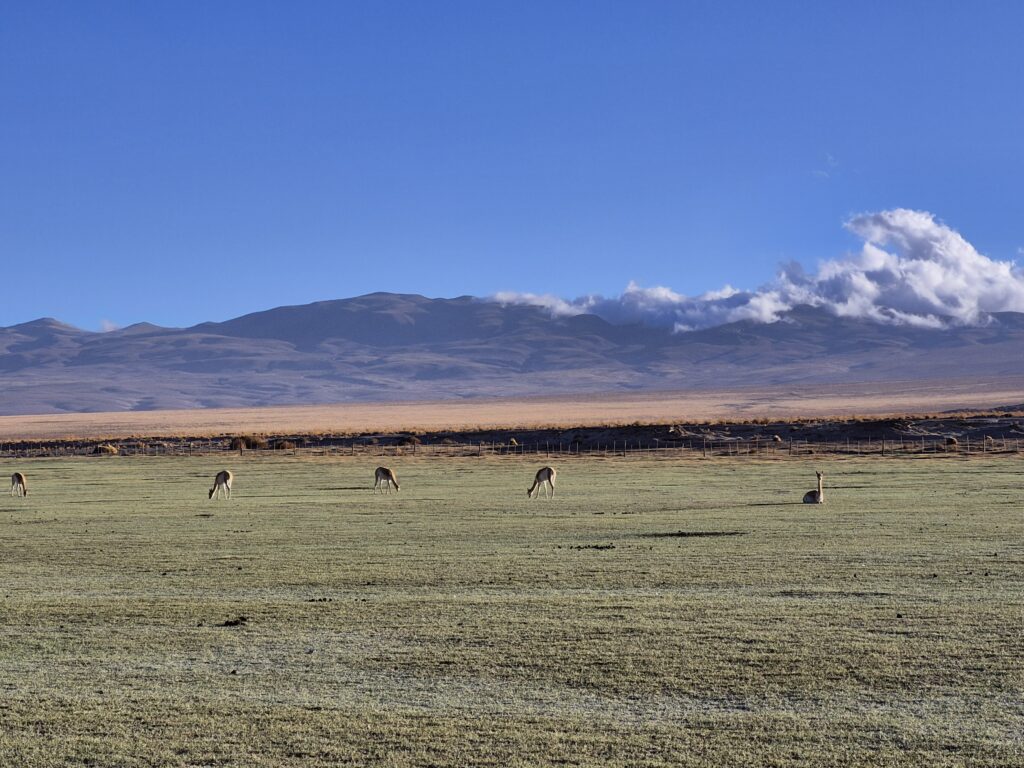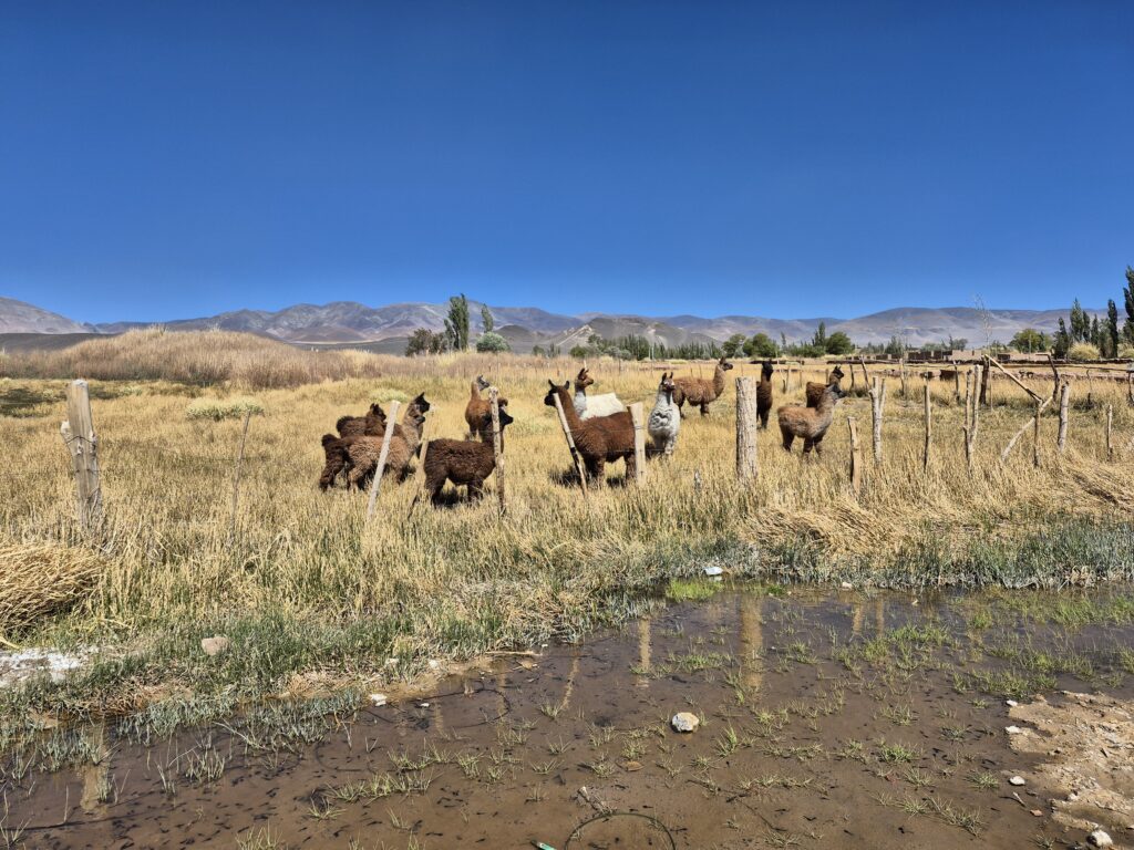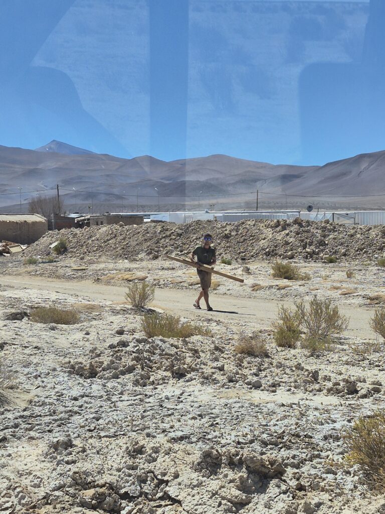 Jour 3 : Le lendemain matin, nous nous réveillons avec un défilé de locaux qui entrent et qui sortent de l’école à côté de laquelle nous sommes garés. Celle-ci a été transformées en bureau de vote. En effet, ce matin, les Argentins doivent élire leurs représentants à l’Assemblée et au Sénat pour donner ou non la majorité à Milei (majorité qu’il n’a pas aujourd’hui, ce qui fait barrière au passage de nombreuses lois). Un habitant vient nous parler, curieux de savoir d’où on vient et surtout comment ce véhicule français est arrivé jusqu’ici, à 3500m d’altitude, au fond de la Puna argentine! Il a marché 7 km pour venir voter ce matin, dans la fraîcheur du lever du jour. Lorsque je lui demande si la vie n’est pas rude ici, il peine à comprendre ma question. Pour lui, la vie ici est parfaite, il va de temps en temps à Salta pour faire le plein de courses, de feuilles de coca mais c’est tout. Il aime sa montagne, son village, son mode de vie. Il respire d’ailleurs le bonheur avec ses yeux rieurs et son sourire franc. Il a bien du mal à comprendre pourquoi nous nous infligeons cette année entière de voyage à travers l’Amérique du Sud! Ici, les gens ne prennent pas de vacances, pas de jours de congé. On travaille tous les jours, pour gagner peu. Le mode de vie des européens est à des années lumières des réalités des andins.