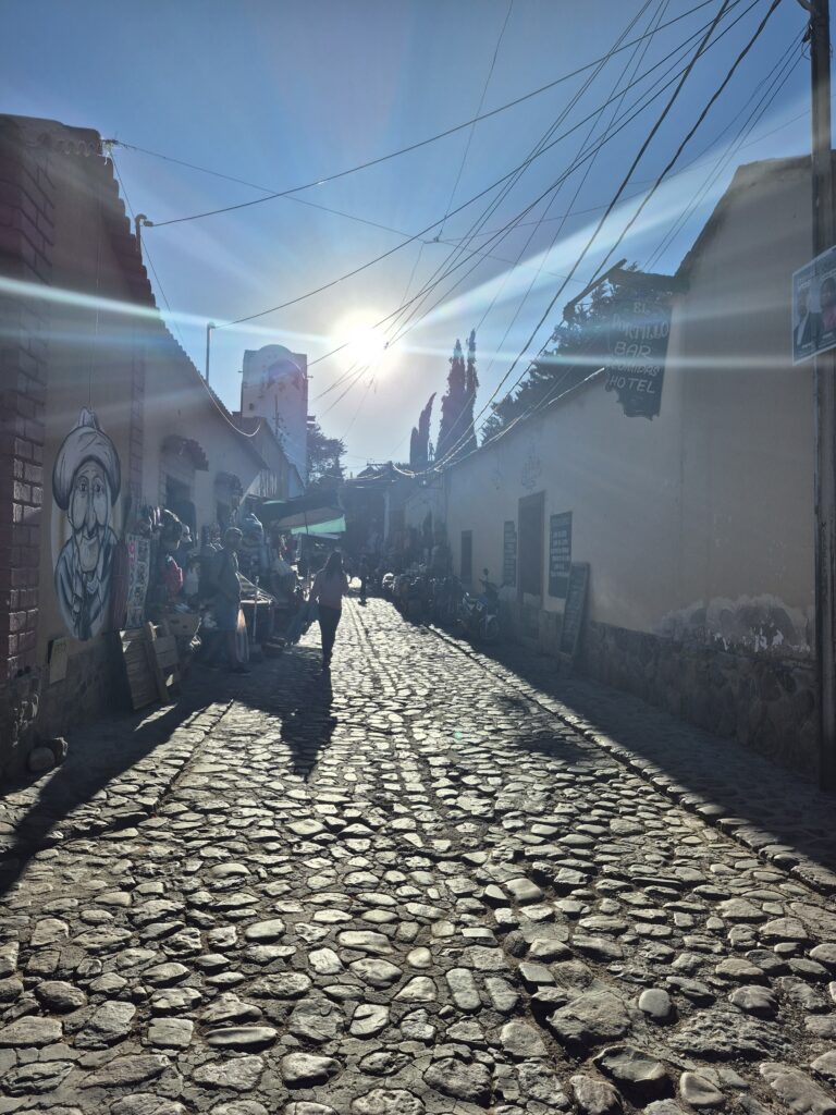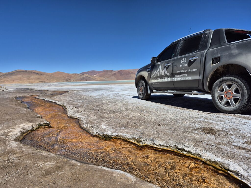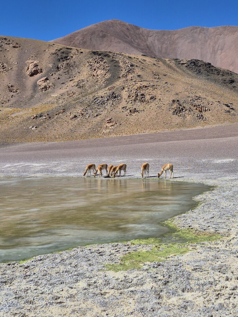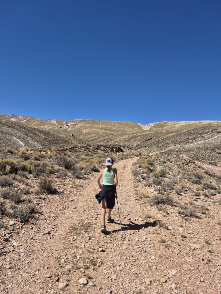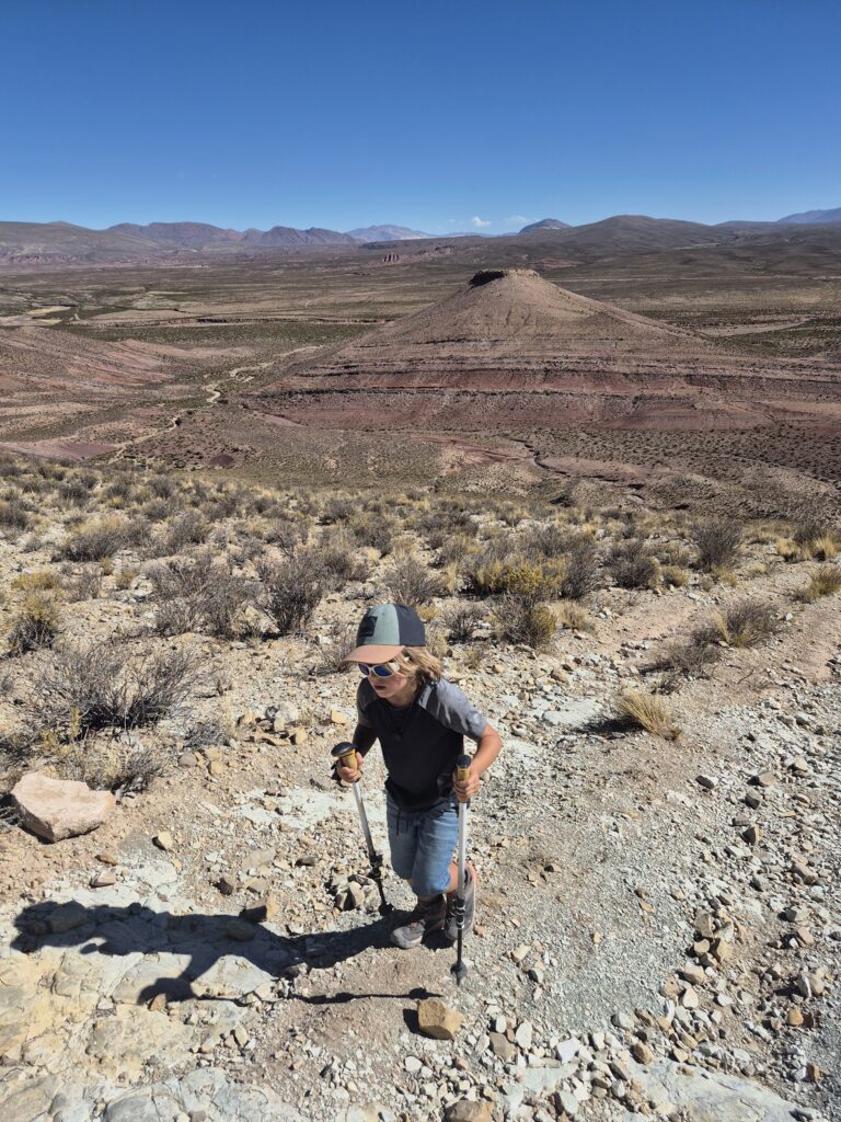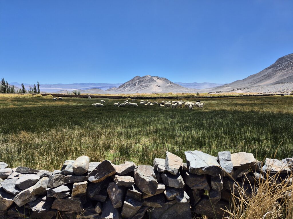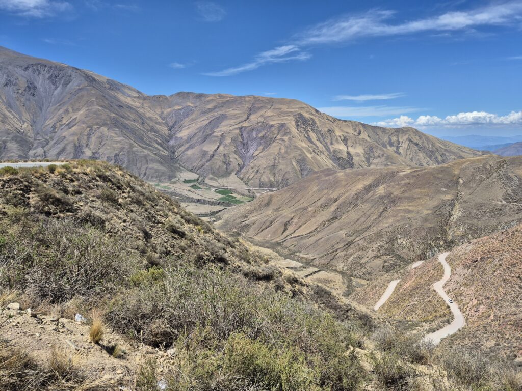 Jour 3 : Le lendemain matin, nous nous réveillons avec un défilé de locaux qui entrent et qui sortent de l’école à côté de laquelle nous sommes garés. Celle-ci a été transformées en bureau de vote. En effet, ce matin, les Argentins doivent élire leurs représentants à l’Assemblée et au Sénat pour donner ou non la majorité à Milei (majorité qu’il n’a pas aujourd’hui, ce qui fait barrière au passage de nombreuses lois). Un habitant vient nous parler, curieux de savoir d’où on vient et surtout comment ce véhicule français est arrivé jusqu’ici, à 3500m d’altitude, au fond de la Puna argentine! Il a marché 7 km pour venir voter ce matin, dans la fraîcheur du lever du jour. Lorsque je lui demande si la vie n’est pas rude ici, il peine à comprendre ma question. Pour lui, la vie ici est parfaite, il va de temps en temps à Salta pour faire le plein de courses, de feuilles de coca mais c’est tout. Il aime sa montagne, son village, son mode de vie. Il respire d’ailleurs le bonheur avec ses yeux rieurs et son sourire franc. Il a bien du mal à comprendre pourquoi nous nous infligeons cette année entière de voyage à travers l’Amérique du Sud! Ici, les gens ne prennent pas de vacances, pas de jours de congé. On travaille tous les jours, pour gagner peu. Le mode de vie des européens est à des années lumières des réalités des andins.