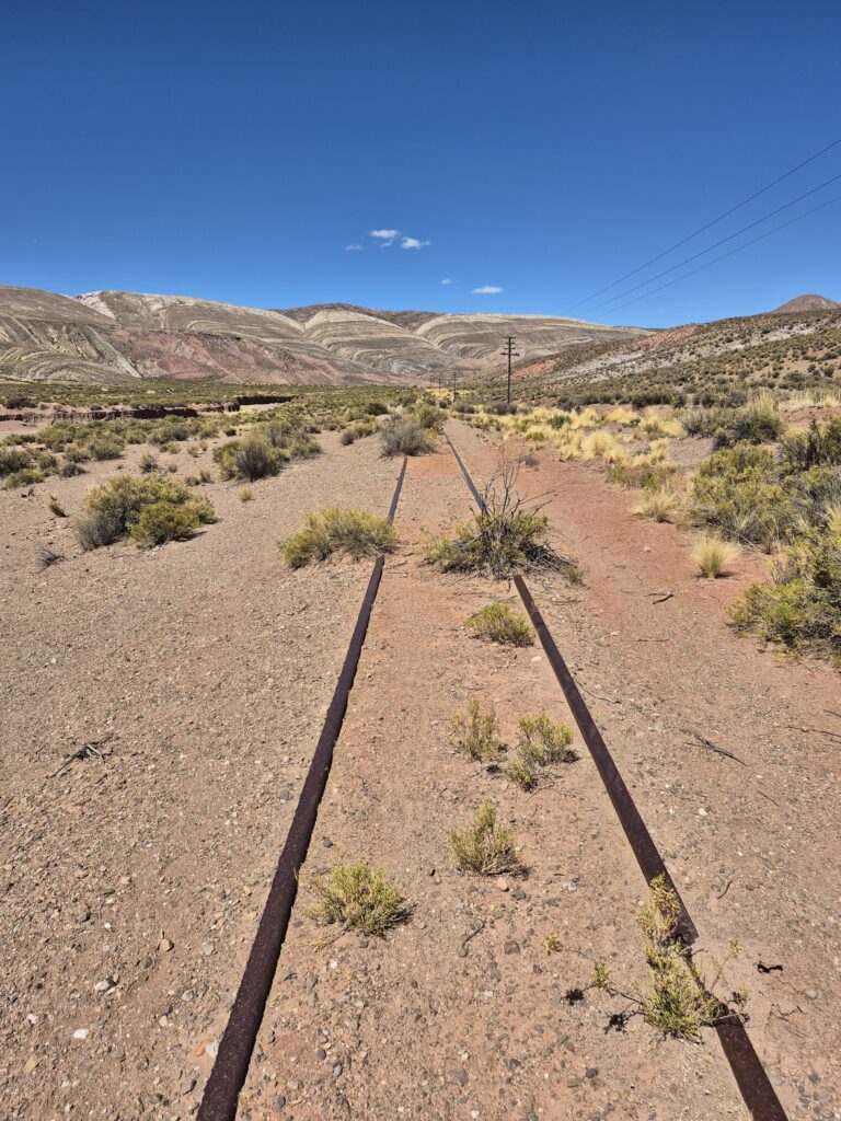Nous partons donc pour une grosse journée de piste. Celle-ci commence par une partie bien dégueulasse, effet tôle ondulée dès qu’on dépasse les 20km/h! Nous passons devant la piste secondaire qui mène vers le viaduc de la Polvorilla, pont courbé de 224m de long et de 63m de haut, perché à 4220m d’altitude. Ce viaduc est une prouesse technique des ingénieurs qui réussirent à faire circuler un train entre Salta et le col Paso Socompa à la frontière chilienne. Surnommé « le train des nuages » et inauguré en 1924, celui-ci a longtemps fait le lien entre les villages Andins, les mines et Salta. Nous nous disons que nous irons voir ce viaduc en rentrant car cela ajoute tout de même 36 km aller-retour à notre trajet (soit plus d’une heure!).