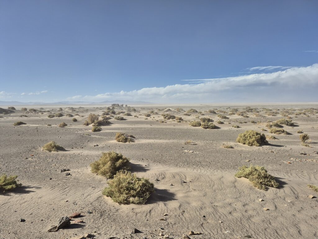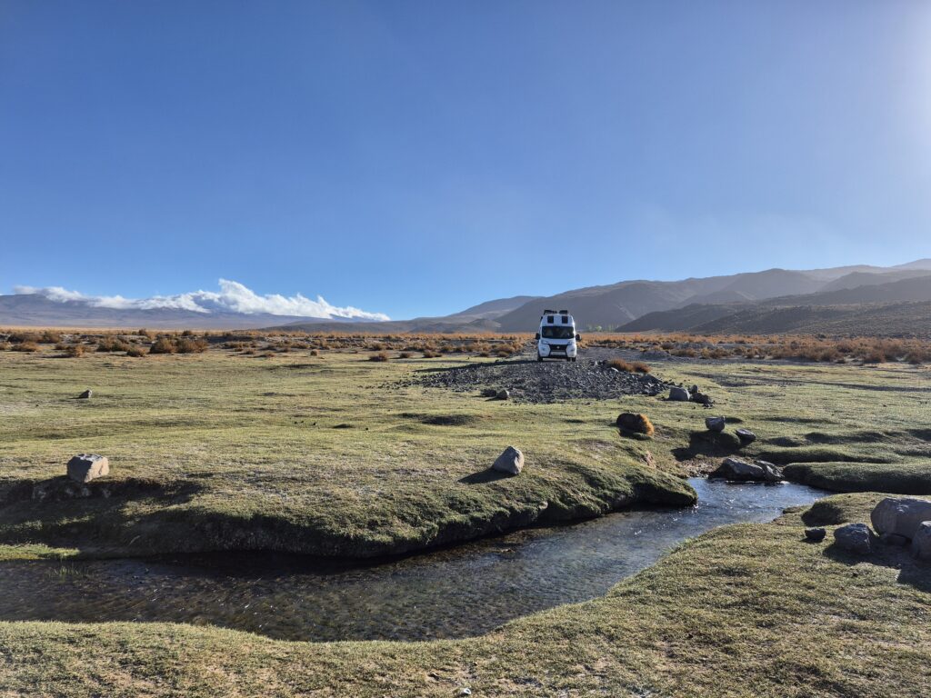 Nous voilà donc lancés sur cette piste qui sera la première d’une longue série à travers la Puna, ces hautes plaines perchées à plus de 3000m d’altitude qu’on appelle communément l’Altiplano. La Puna est la partie Argentine de l’altiplano. Celui-ci s’étend également sur le Nord-Est du Chili, l’Ouest de la Bolivie et le sud du Pérou. Nous n’avions absolument pas connaissance de cette région argentine qui est peu connue en Europe. Nous avions bien entendu parler de Jujuy, de Salta, de Cafayate, mais de la Puna, jamais. Pour autant, depuis que nous sommes arrivés en Argentine, un ensemble de petits signes n’ont eu de cesse de me mener vers Tolar Grande, village poussiéreux, loin, haut, difficile d’accès qui semble pourtant recéler des trésors naturels incroyables. Quelques jours avant, je me renseignais pour parcourir cette partie de l’Argentine en 4×4 depuis Salta, persuadée que nous ne pouvions pas le faire avec notre camion. Un guide francophone m’a gentiment répondu par Whatsapp, me disant qu’on pouvait tout à fait le faire. Il m’a indiqué l’itinéraire, les points d’altitude, le numéro des pistes à suivre, etc.