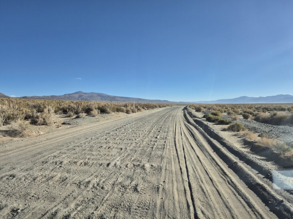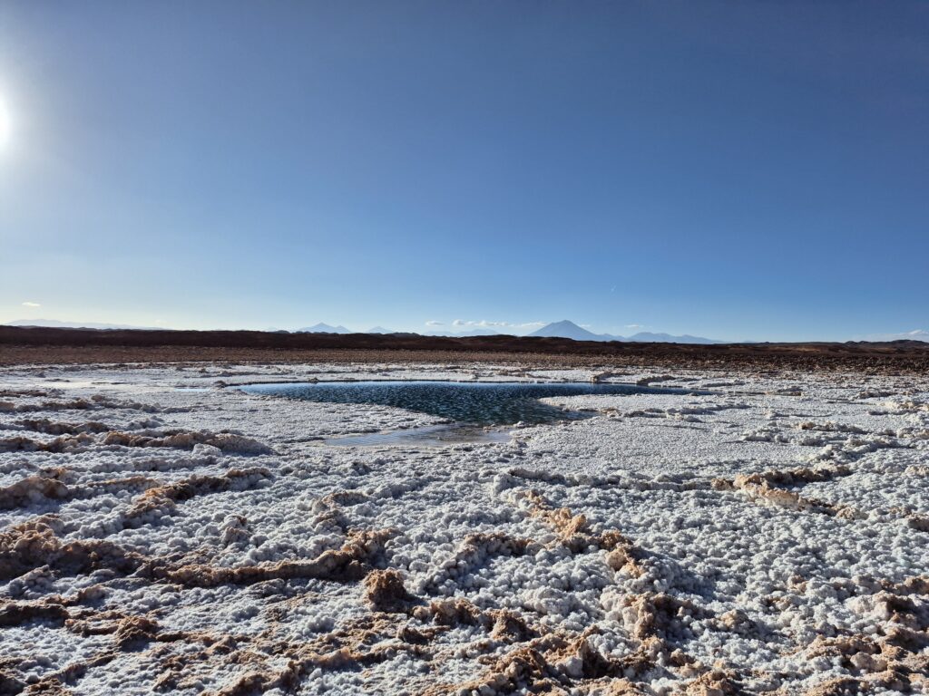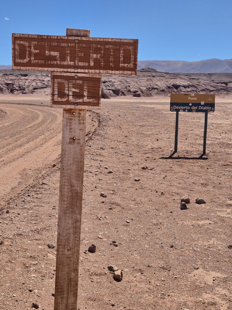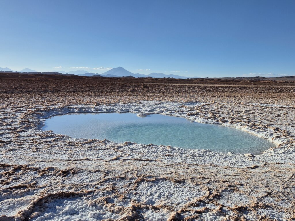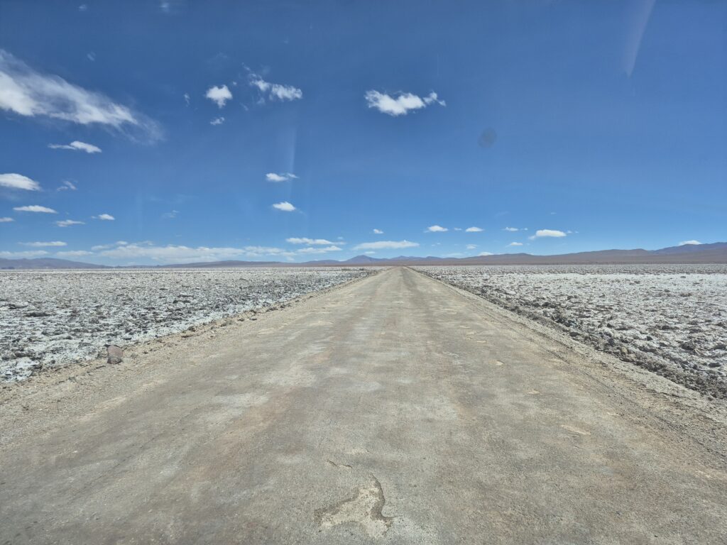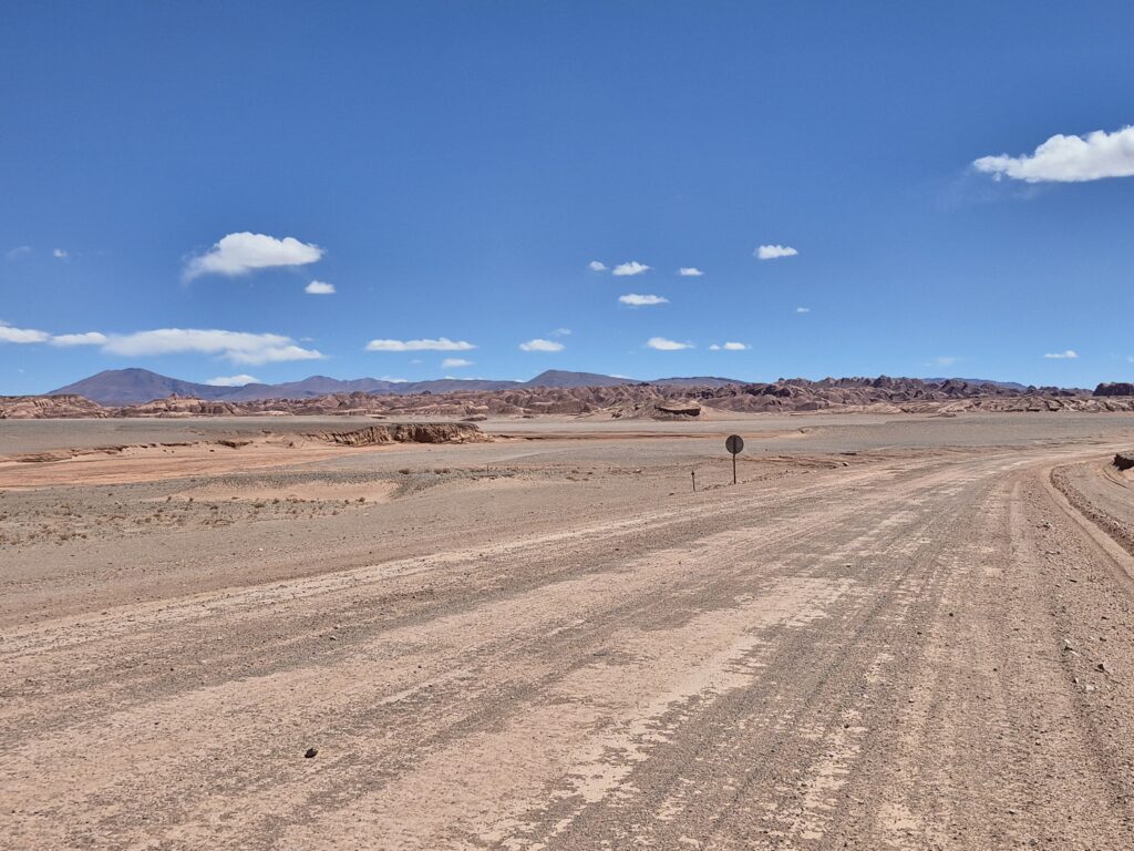 Jour 2 : Le lendemain, nous faisons le plein d’essence à San Antonio avant de nous engager sur la piste 51 qui mène à notre première étape: le Salar de Pocitos. Dernière vérification auprès du pompiste qui nous confirme qu’en allant doucement, notre véhicule peut y aller sans problème.