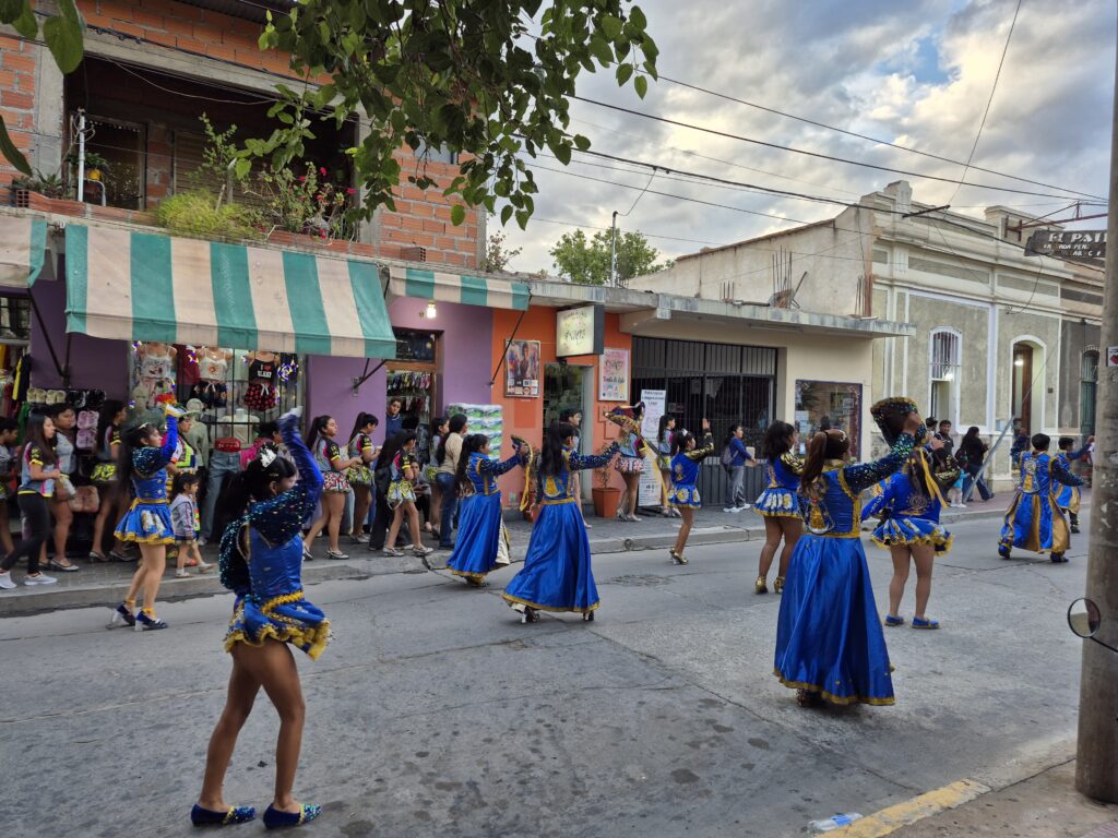 Nous quittons la place principale en suivant un défilé dansé et costumé. Les danseurs suivent un Pick-up qui diffuse de la musique en réalisant des chorégraphies de danse traditionnelle. Moment très sympa! Nous retrouvons nos amis Belges ainsi qu’un autre couple rencontrés à Salta quelques jours plus tôt et passons une belle soirée à discuter autour d’un bon verre de vin local!