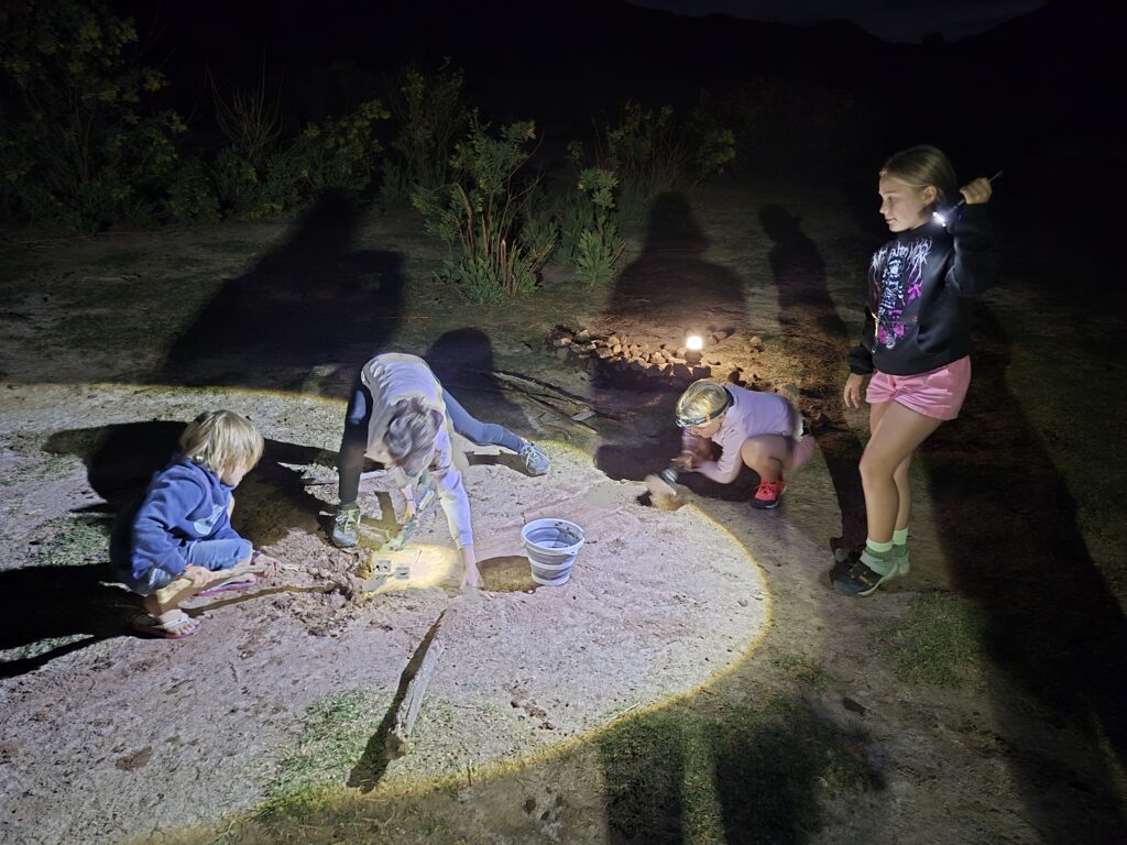 Nous passons la soirée avec Fred et Julie et nous nous racontons respectivement nos dernières aventures depuis Humahuaca, lieu de notre rencontre. Nous ne voyons pas les enfants de la soirées qui sont trop occupés à reprendre leurs histoires où ils les avaient laissées. Ils sont vraiment trop contents de se retrouver, notamment Agathe pour qui Julia est un vrai coup de coeur! Cette douce soirée est aussi très agréable pour nous, adultes, qui pouvons discuter sans avoir les enfants auprès de nous! Nous finissons tard, sans avoir fait le tour de tout ce qu’on avait à dire mais la fatigue se fait sentir! Cette nuit ne sera pas aussi reposante qu’escomptée…une colonie de petits scarabées a réussi à entrer dans le camion malgré nos précautions et la chasse avant de dormir ( j’ai une petite technique avec l’aspirateur à batterie…presque infaillible)! Au cours de la nuit, toujours une de ces petites bêtes pour venir nous chatouiller les jambes, les bras, le visage…un régal! Ajouté à cela: la chaleur! La soirée est chaude…la nuit aussi! Nous dormons les lanterneaux ouverts, jusqu’à ce qu’un orage éclate avec le vent et la pluie qu’il apporte avec lui. Pas le choix, il faut fermer les lanterneaux…et crever de chaud! Le vent secoue le camion assez fortement et nous avons bien du mal à retrouver un sommeil serein.