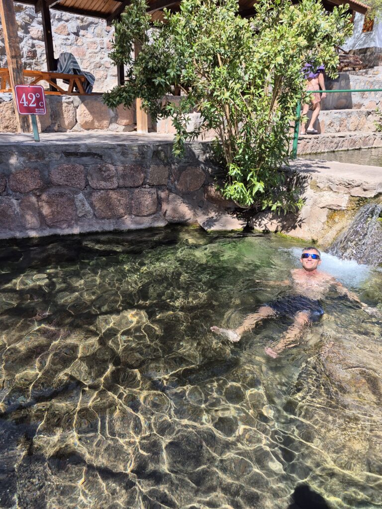 Nous roulons donc jusqu’à la nuit et gagnons un village à la sortie de la route 81 qui permet un stationnement gratuit dans le parc municipal gardé toute la nuit. Nous y passerons une très chaude nuit à plus de 30 degrés qui se terminera par une pluie diluvienne au petit matin, la première depuis 5 mois! Celle-ci nous vaudra notre deuxième enlisement du voyage!