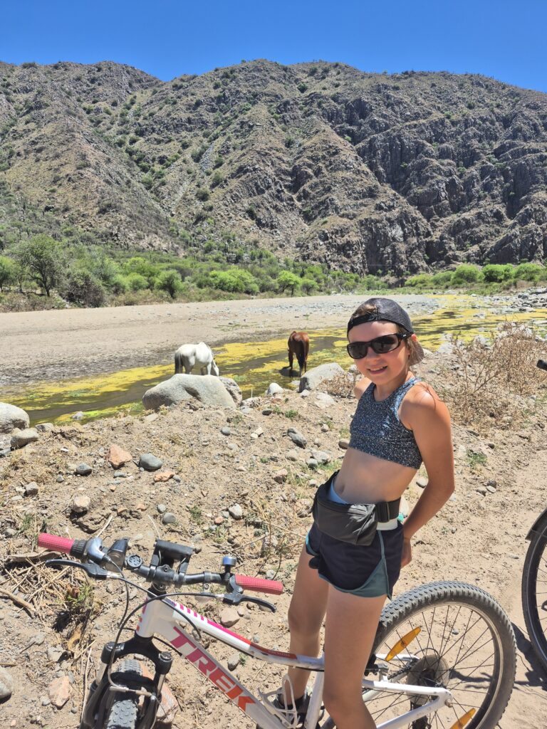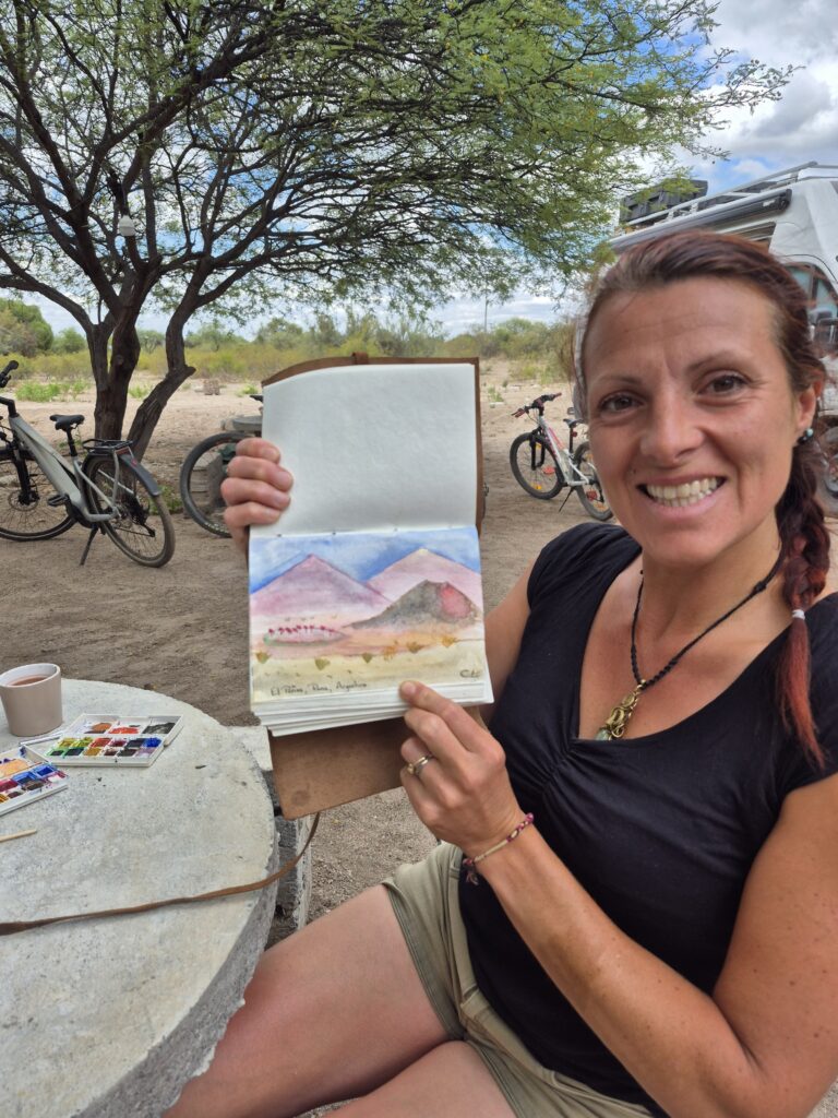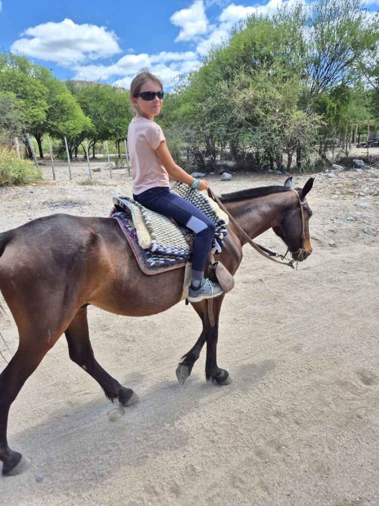 Nous profiterons de ce temps de pause pour faire laver notre linge, aller faire de l’escalade sur le site tout récent qui se trouve à 500 mètres du camping, monter à cheval avec Don Pedro, faire un peu de vélo dans la Valle Fertil et même reprendre un peu l’aquarelle! Nous prenons le temps de vivre et c’est très agréable!