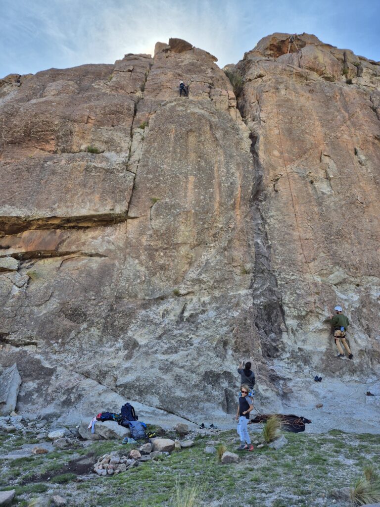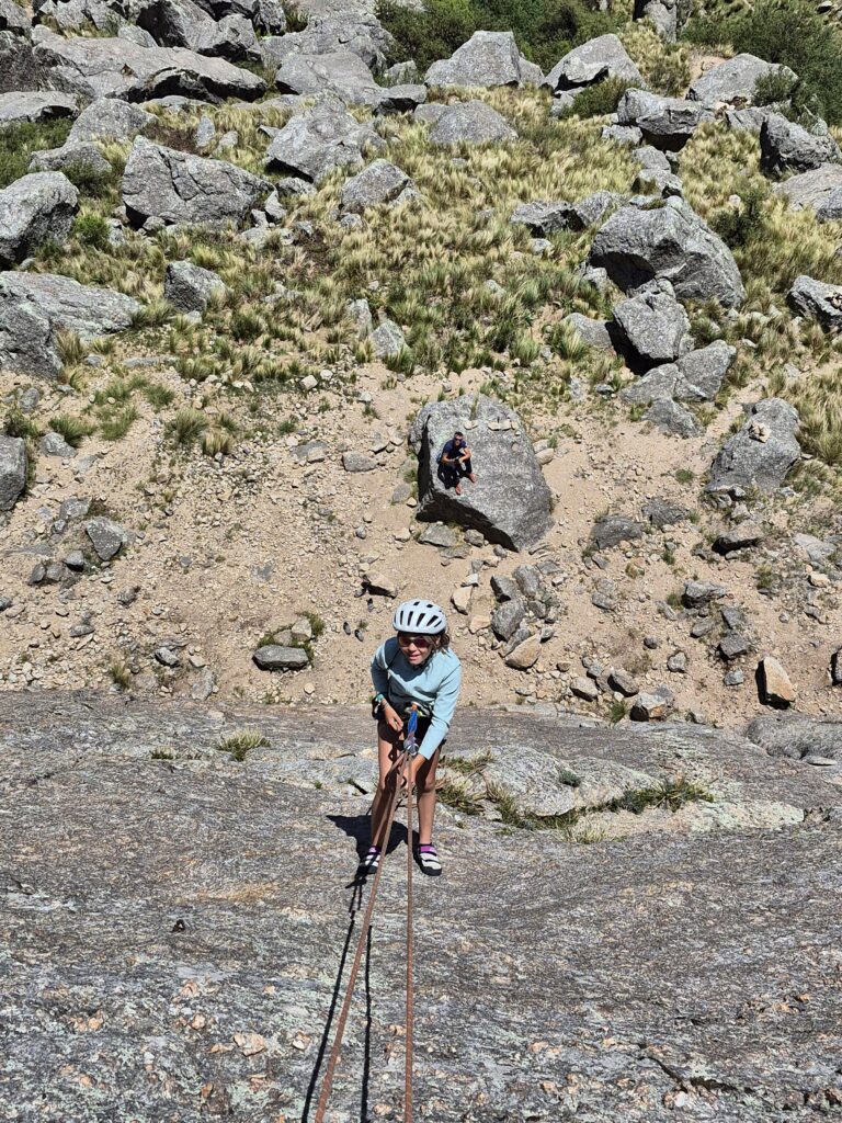 Après avoir démonté le camp, nous nous attaquons au Cerro de la Cruz. Nous aurions bien aimé enchaîner plusieurs longueurs pour gravir les 120m mais nous n’osons pas laisser les enfants seuls en bas. En cas de problème, impossible de redescendre rapidement pour les aider. Nous enchaînons donc des voies en couenne de 30 à 35 mètres, toutes dans le 6. C’est une grimpe principalement en dalle avec de petites prises de pieds et de main, encore différente de ce que l’on a connu sur le site de la Ola. En milieu d’après-midi, nous redescendons vers le parking avec pour objectif de grimper un peu sur un autre secteur qui se trouve sur le chemin. Nous cherchons ce fameux secteur un moment, trouvons quelques voies équipées mais ne ressemblant pas tout à fait à la photo du topo. Nous doutons d’être au bon endroit. Il se fait déjà tard, nous décidons finalement de redescendre au parking. Nous rejoignons le camion vers 17h30. Le temps de ranger tout notre matériel, nous quittons Los Gigantes une heure plus tard, juste à temps pour rejoindre Villa Carlos Paz avant la nuit que nous passerons au bord du lac.