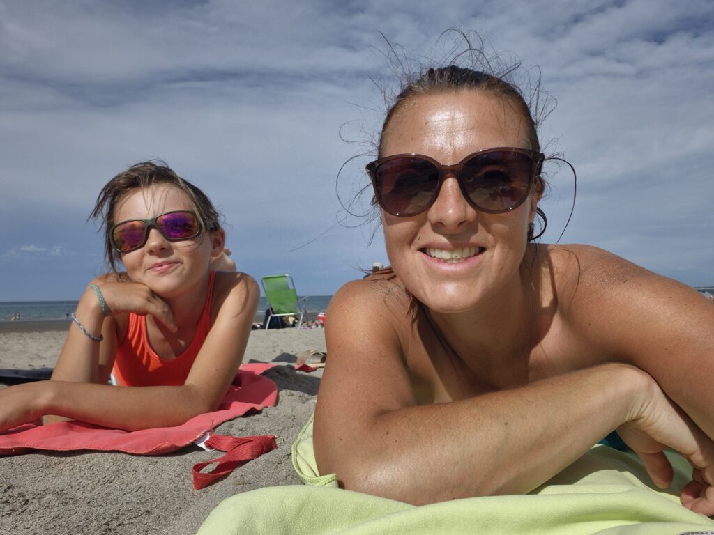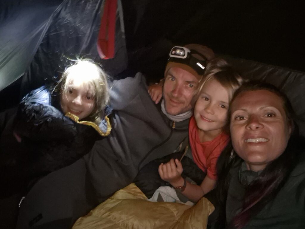 Au milieu de la nuit, le vent se met à souffler en rafales, secouant de manière discontinue la tente dans tous les sens! Me voilà réveillée à chaque bourrasque, si tant est que je m’étais endormie… Agathe a elle aussi peur, elle se réveille régulièrement pou se blottir contre son père. Le seul qui passe une bonne nuit, c’est Gaspard, qui pense que son lit est la tente entière et grimpe sur tous ses voisins, les confondant avec son oreillers ou son matelas! Bon clairement, cette première fois ne sera pas la nuit la plus reposante de notre vie mais en revanche, comme toutes les premières fois, elle restera gravée dans nos mémoires!