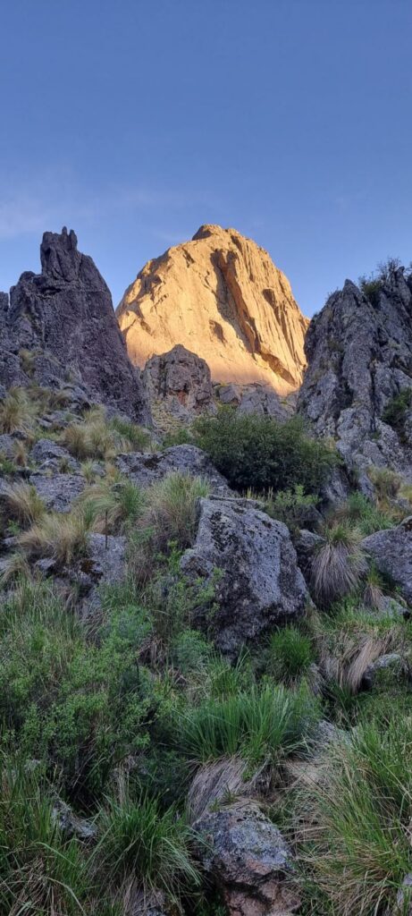 En fin d’après-midi, nous bifurquons à gauche en direction d’une lagune où nous retrouverons nos amis Belges, près de laquelle se trouve un spot d’escalade. La piste est étroite et sillonne à travers les montagnes avec parfois des pentes assez importantes. Une heure de pur bonheur de voir notre Inkaiko parvenir à enchaîner ces virages dans un paysage andin époustouflant! Nous rejoignons la famille liégoise déjà installée au bord de la lagune. Le lieu est magnifique! Nous sommes seuls au beau milieu des montagnes, si l’on ne compte pas les dizaines d’ânes qui nous entourent! Nous passerons une bonne soirée au coin du feu, les enfants réalisant une construction Inka avec des pierres et du ciment (totalement local!) et les adultes profitant de ce moment de répit pour bavarder autour d’un verre de vin.