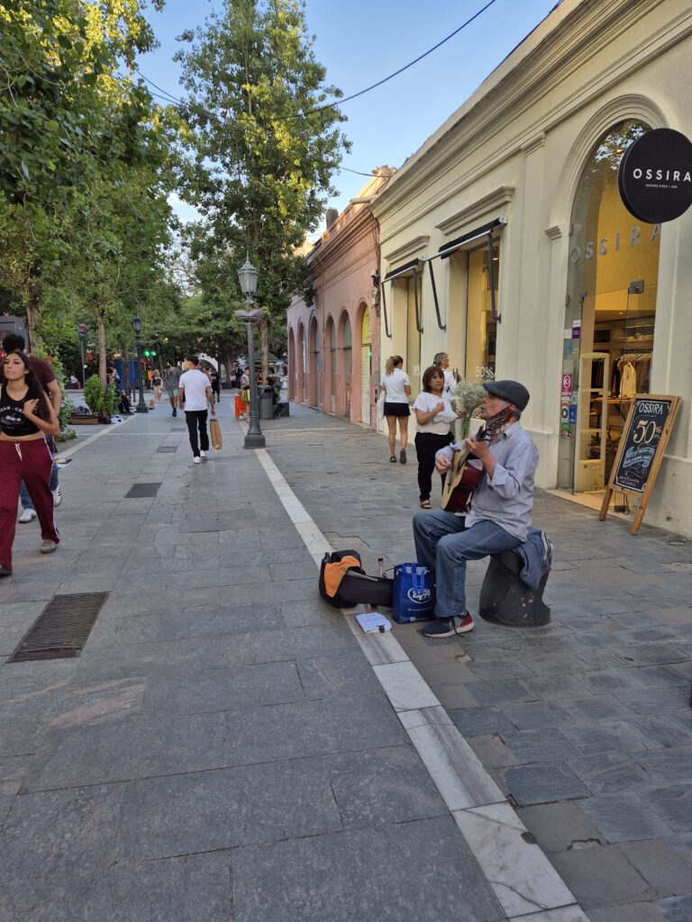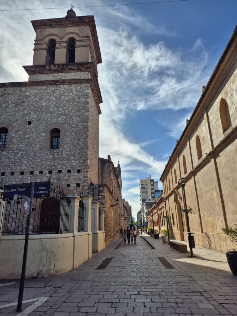 Nous commençons notre visite par le centre historique qui s’est construit autour de la « Manzana Jésuitica ». En effet, au XVIème siècle, le royaume d’Espagne proposa à des diocèses de s’installer en Argentine pour évangéliser la population. Les frères Jésuites ont donc élu domicile ici, construisant de nombreux édifices religieux et des bâtiments annexes. Leur objectif était certes d’évangéliser la population mais également de l’instruire et de la cultiver. En effet, les jésuites étaient très attachés à l’éducation, à la connaissance, aux sciences et à l’art. Ils ont construit ici la première université d’Argentine. La ville a continué à croitre sur ce modèle et détient aujourd’hui la plus grande proportion d’étudiants (12%). L’université est très présente dans la vie de Cordoba, ainsi que sa vie culturelle et nocturne. Nous croisons de nombreux théâtres, salles et associations culturelles, académies de sciences, d’anthropologie, etc. Je ne connais pas la moyenne d’âge exacte de la ville mais nous sommes frappés par la proportion de jeunes.