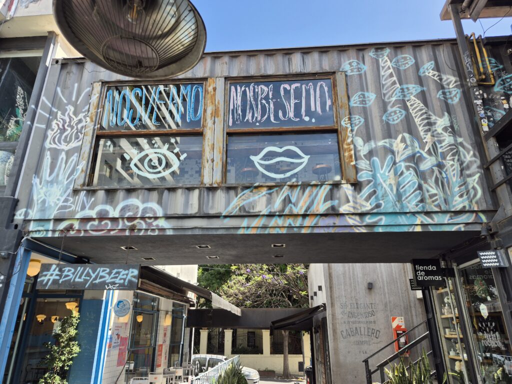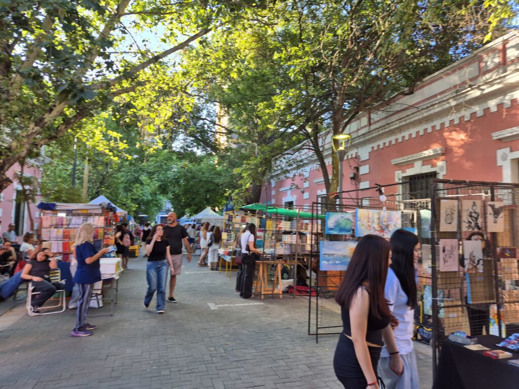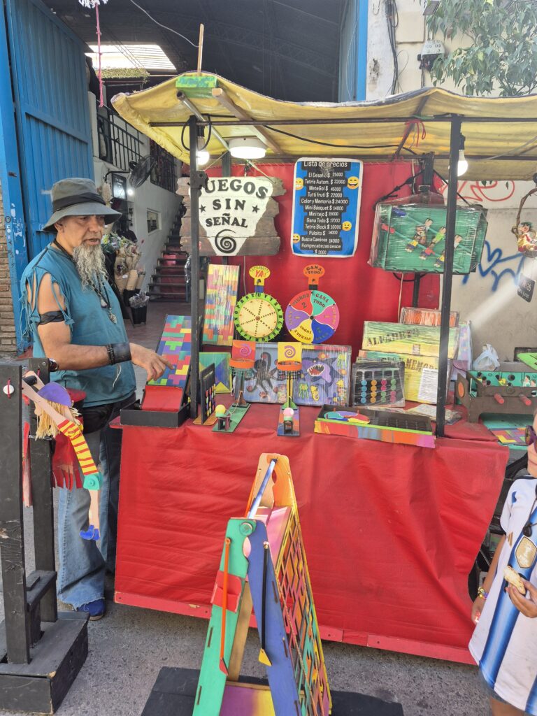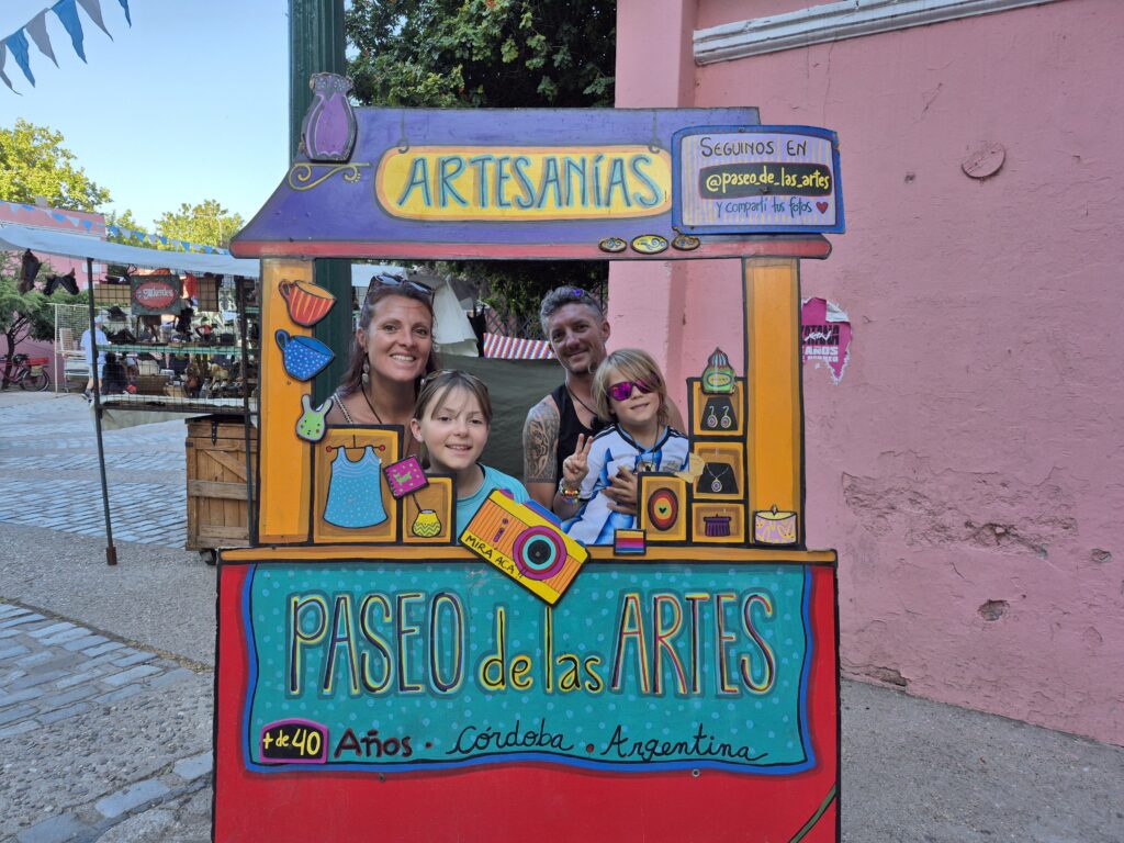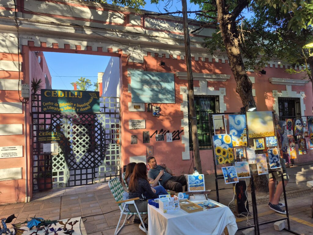 L’après-midi, après avoir parcouru la moitié de la ville à la recherche d’un Western Union ouvert (qu’on trouvera finalement au fond du nouveau terminal de la gare routière), nous nous rendons dans le quartier de Guëmes. C’est l’ancien quartier colonial de la ville, qui longe la rivière et qui fut délaissé par la population, aspirant à des lieux plus modernes. Aujourd’hui parfaitement réhabilité, c’est le quartier hipster de la ville, le plus touristique mais aussi celui qui accueille toute la vie nocturne. Nous retrouvons ici les maisons coloniales typiques que nous avions découvert à Montevideo: de petites constructions colorées, basses à toit plat avec portes et fenêtres arrondies. Elles ont presque toutes été réhabilitées et forment un ensemble charmant et chaleureux. De nombreux passages étroits menant vers des cours intérieures recèlent des trésors cachés: bars à bières, salons de thé, petites boutiques de créateurs. Il y a de nombreux bars, tous plus originaux les uns que les autres, prêts à accueillir touristes mais aussi tous les jeunes de cette ville qui, le soir venus, quittent leur costume d’étudiants pour profiter de Cordoba by night! Il faut attendre un bon 17h30 pour que les rues de ce quartier s’animent. Le paseo de Los Artes, marché artisanal, s’installe chaque soir et des centaines d’artisans de toutes spécialités viennent exposer leur travail. C’est vraiment magnifique! Il y a tout type d’artisanat: pierres, bijoux, bois, couture, cosmétiques, nourriture, antiquités, coutellerie, céramique, etc. Le travail est toujours d’une grande qualité et les prix très raisonnables comparés à ce que l’on peut trouver en France. Nous passons deux bonnes heures à déambuler dans les ruelles, puis, les bras chargés, décidons de remonter au camion en taxi pour déposer tout cela avant de revenir dîner dans ce quartier qu’on apprécie tant. Nous sommes frappés par l’effervescence qui règne dans les rues. Nous sommes samedi soir, comme partout ailleurs en Argentine la ville se transforme. Tout le monde sort, prêt à retrouver ses amis pour un repas, un verre, un pique-nique au bord de l’eau ou une nuit de folie dans les bars et les boîtes de la ville. Tous les trottoirs grouillent de jeunes gens, mêlés aux familles, aux couples, aux bandes de copains qui se rendent à leur lieu de fête. En voyage, j’apprécie beaucoup les samedi soir en ville, même petite. C’est une véritable plongée dans la vie sociale des locaux et en Argentine notamment, la différence avec les autres jours de la semaine est vraiment frappante.