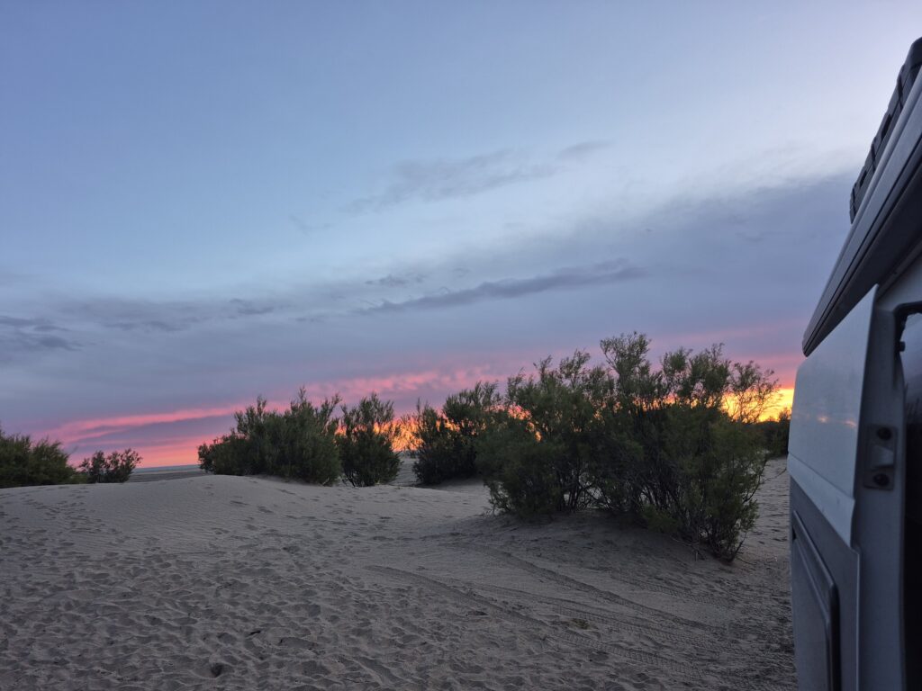 Puis, nous reprenons notre route en direction du Sud et nous arrêtons au bord de l’océan sur un petit parking éloigné de la route surplombant une plage. Encore un joli spot et une douce soirée qui nous permettra d’allumer une nouvelle fois le barbecue!