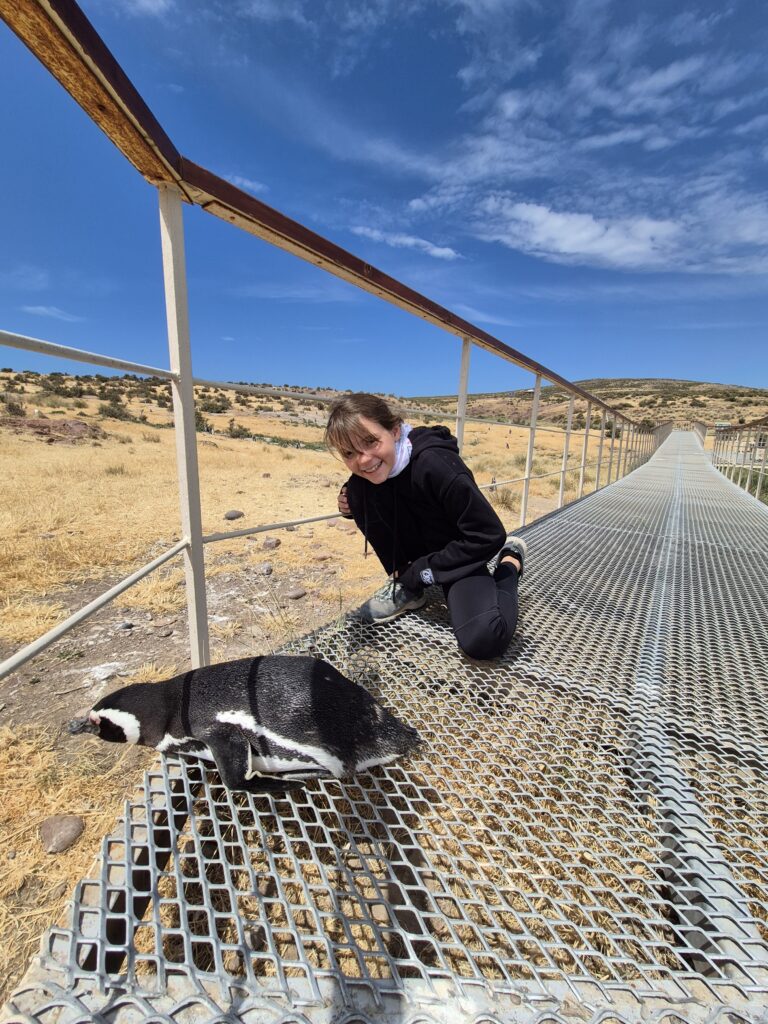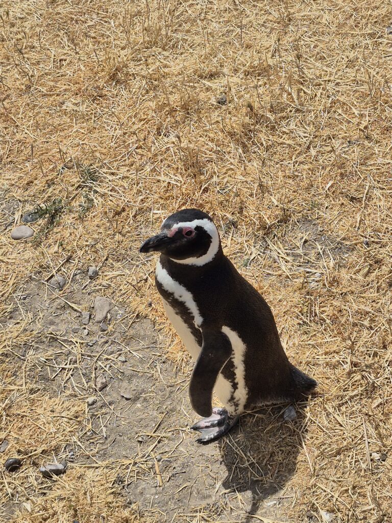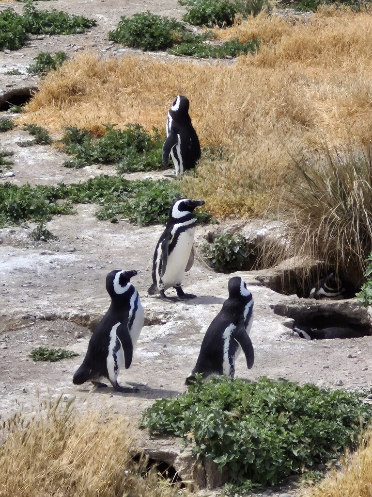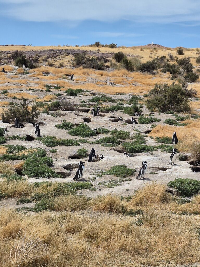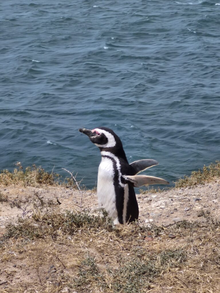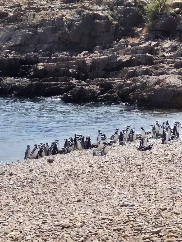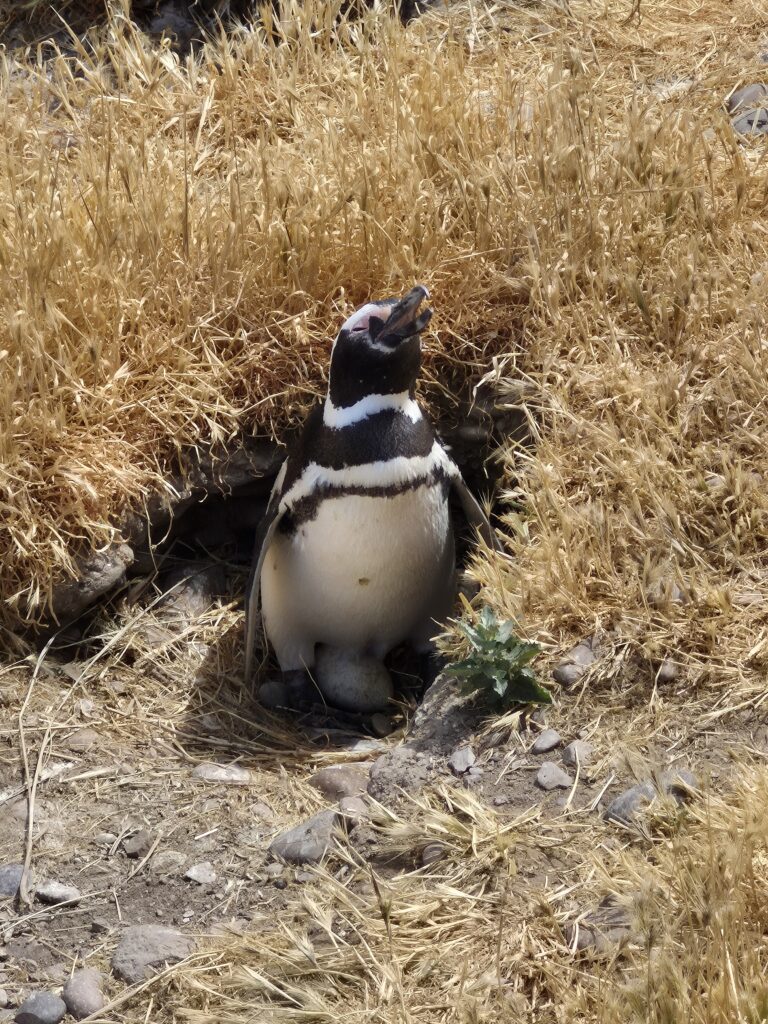Jour 6: Ce matin, nous visitons la pinguinera de Cabo Dos Bahias. Nous pouvons y observer une grande colonie de manchots de Magellan venue se reproduire et élever les petits ici. C’est vraiment une saison propice pour l’observation de ces animaux car les oeufs sont en train d’éclore et nous pouvons observer les petits. Les parents, vivant en couple, se relaient auprès des petits pour aller prendre un bain dans l’océan. Les manchots ont une plage et ont dessiné des sentiers pour s’y rendre. Ils sont vraiment drôles à observer avec leur démarche de clown et leur manière de se tenir en réunion. Ce sont des animaux sociaux, il n’y a aucun doute, il font beaucoup les choses en groupe. Nous nous régalons pendant une bonne heure à regarder ces petites boules de plumes et à analyser leur comportement. Un super moment en famille!