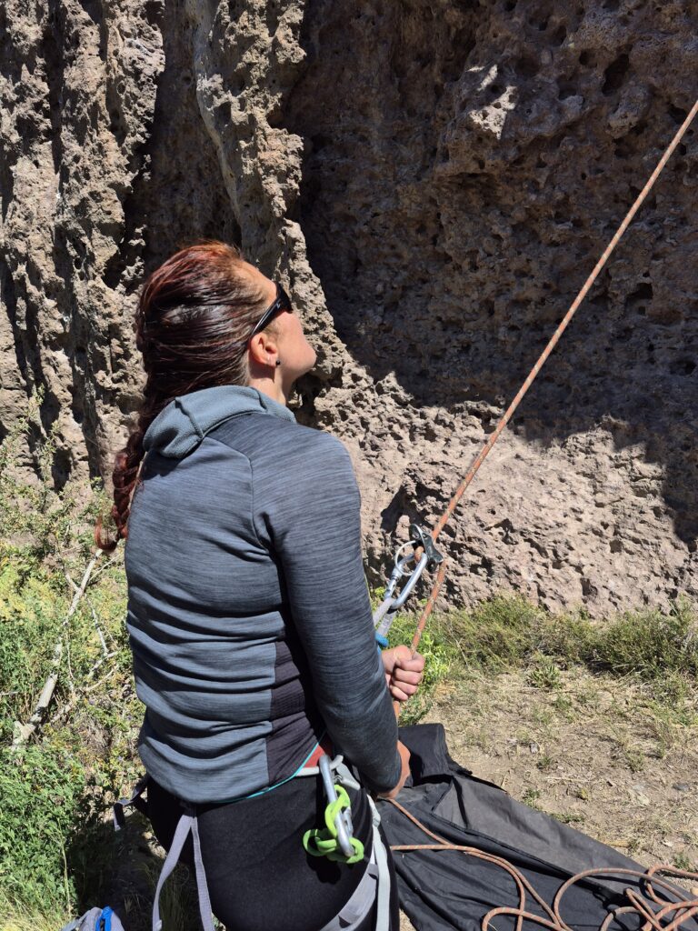 Nous décidons alors d’aller faire un peu d’escalade dans un des canyons bien connu des grimpeurs locaux. Un grands nombre d’entre eux sont présents en ce dimanche après-midi. Nous sommes immédiatement accueillis par l’une d’entre eux, qui nous présente le secteur et les voies qui sont agréables. La roche est très abrasive, c’est une roche sableuse avec de nombreuses aspérités qui paraissent être de bonnes prises. Une fois sur les voies, ces prises ne sont finalement pas si bonnes et le vent qui s’engouffre dans le canyon rend la grimpe difficile et peu agréable. Après quelques voies bien laborieuses, nous décidons de profiter de la fin d’après-midi pour faire quelques courses en ville et trouver un joli spot pour dormir.