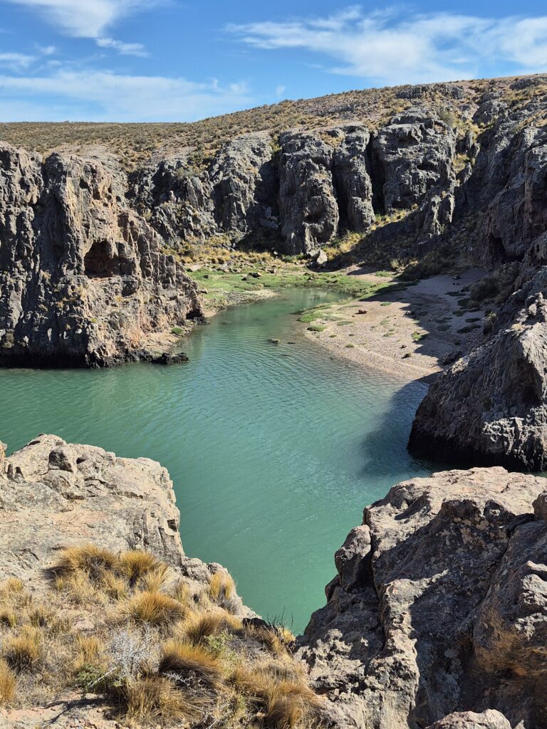 Cette petite bourgade portuaire se situe à l’embourchure du Rio Deseado, rivière vert jade qui se jette dans l’Océan atlantique. Nous y venons principalement pour partir en excursion sur une île qui abrite les fameux Pingouin Gorfou sauteurs, drôles de bêtes que l’on ne peut voir que sur une poignée d’îles dans le monde. Malheureusement, le mer étant trop déchaînée, il n’y aura pas de départ de bateau possible dans les deux jours à venir et notre rendez-vous de début décembre nous empêche de rester plus longtemps.