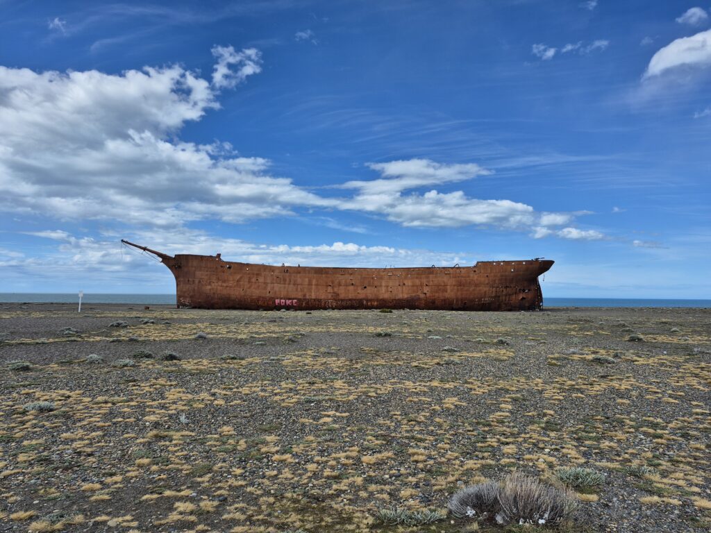Jour 9: Aujourd’hui, dernière étape argentine de notre descente vers la Terre de feu. Nous faisons un bref passage à Rio Gallegos, ville ultra-moche qui fut le principal port militaire de la guerre des Malouines. Depuis le début de notre descente, nous avons croisé de nombreux panneaux sur lesquels était inscrit: « Las Malvinas fueron, son y seran argentinas ». Nous nous rendons sur un site mémorial de cette guerre qui a eu lieu en 1982 et opposait l’Argentine au Royaume-Uni. Les Îles Malouines sont un archipel situé au large de la Terre de Feu dans l’Océan atlantique appartenant au Royaume-Uni. En 1982, l’Argentine décide d’en reprendre le contrôle et déclare la guerre. Celle-ci ne durera que 4 mois et se terminera au profit du Royaume-Uni qui en conservera la souveraineté. Malgré la défaite, l’Argentine continue à revendiquer la souveraineté de ces territoires bien que ses habitants, principalement anglais, aient voté très majoritairement pour le maintien de la gouvernance du Royaume-Uni. Ce mémorial nous permet d’expliquer aux enfants ce qu’il s’est passé ici, dans cette ville-base aérienne d’où décollaient les avions de guerre argentins. Après une trentaine de minutes sur les lieux à supporter un vent abrutissant, nous décidons de reprendre la route pour nous approcher au maximum de la frontière.