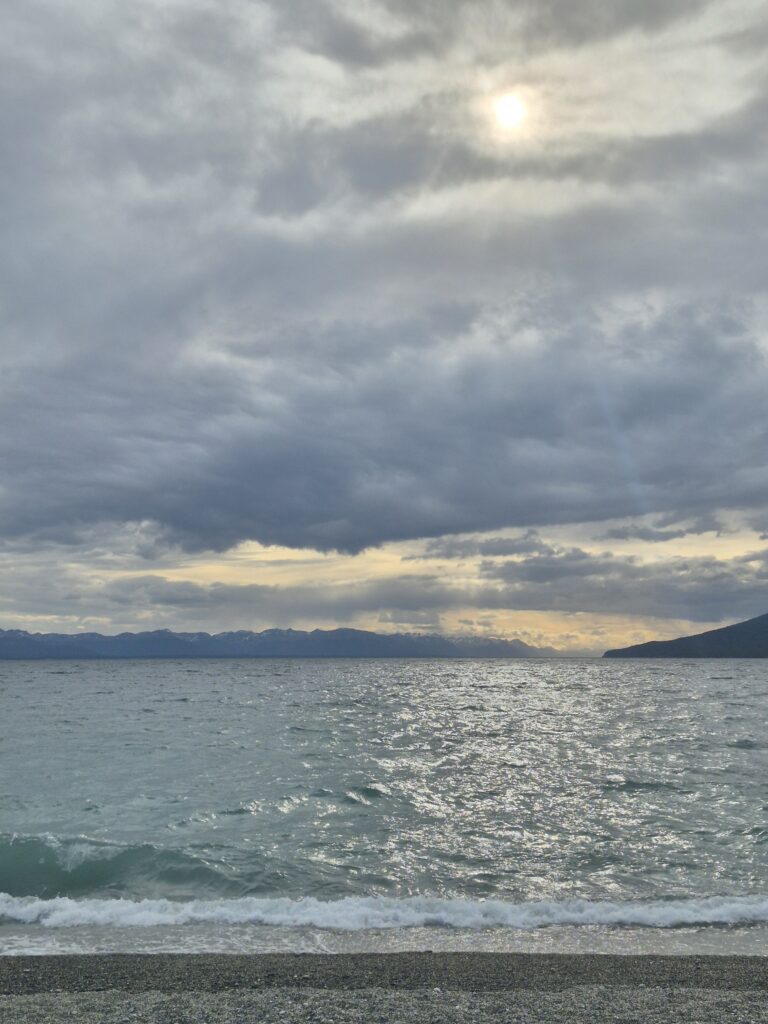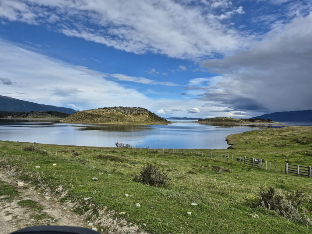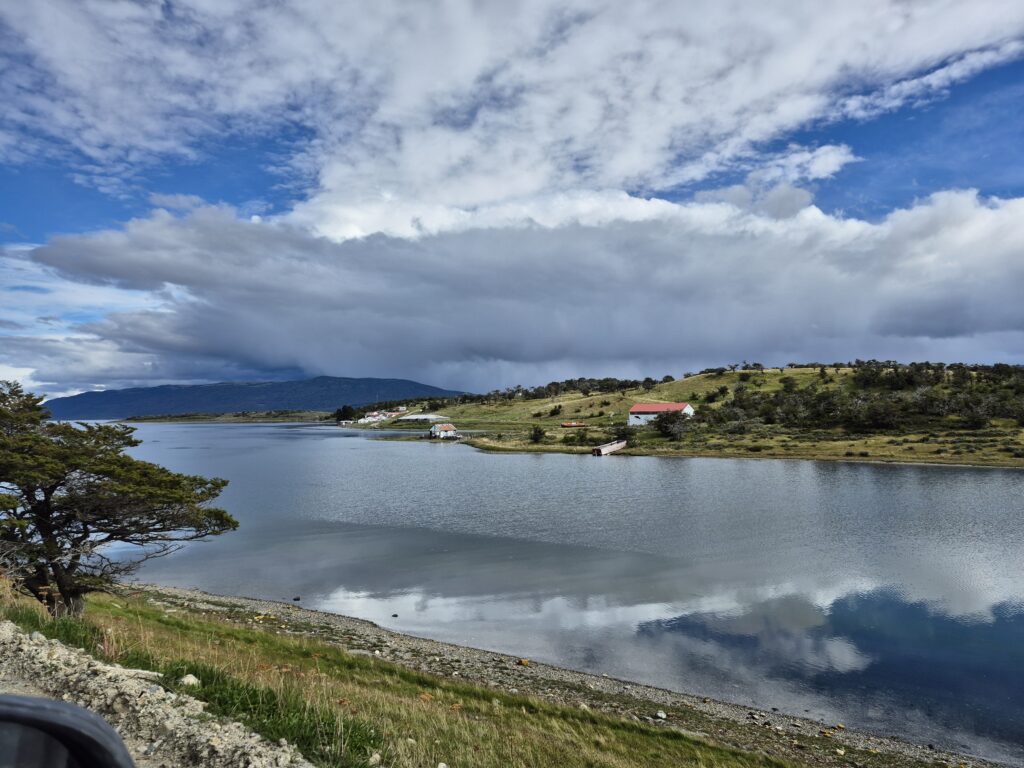 Après ces 11 jours de route vers le Sud, nous arrivons enfin en Terre de Feu. Nous faisons halte à Tolhuin, petit village en bordure de l’immense Lac Fagnano. Ici, les petites maisons sont bardées de bois colorés et de chacune sort une cheminée fumante. De l’autre côté du lac, des montagnes aux sommets saupoudrés de neige et à leur pied, de grandes forêts de lengas. Ce paysage est totalement nouveau, loin de l’aridité des espaces que nous avons traversé en Argentine. A notre arrivée, nous avons très envie de sortir nous promener sur la plage de ce très beau lac. Nous sortons naïvement du camion, en short et en tongs (vêtements que nous n’avons pas quittés depuis près de 3 mois). Trois bourrasques de vent glacial plus tard, nous voilà revenus au chaud dans le camion, chauffage en route! Nous voilà officiellement dans un autre voyage! Il va falloir sérieusement penser à faire le switch des vêtements de la garde-robe!