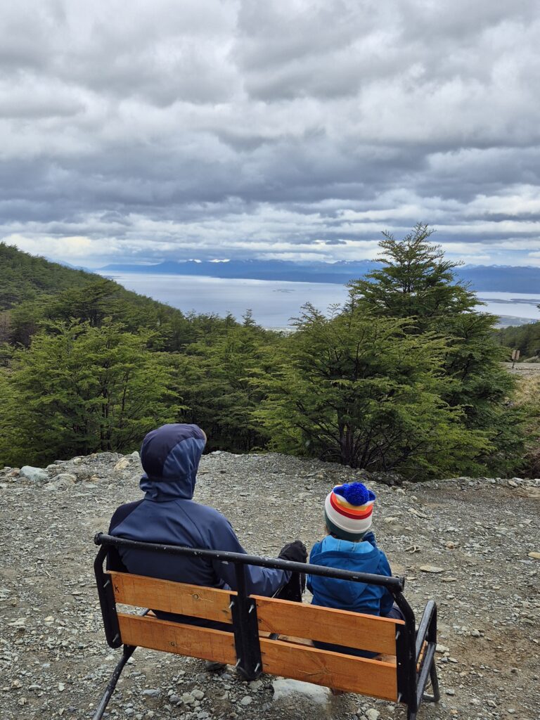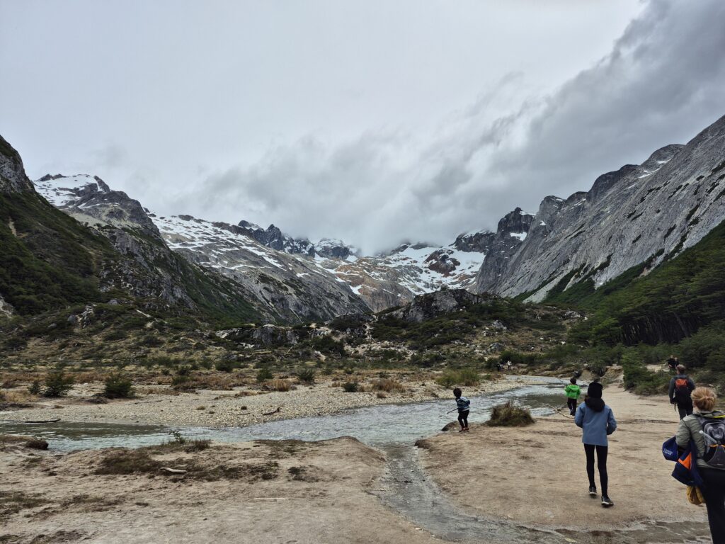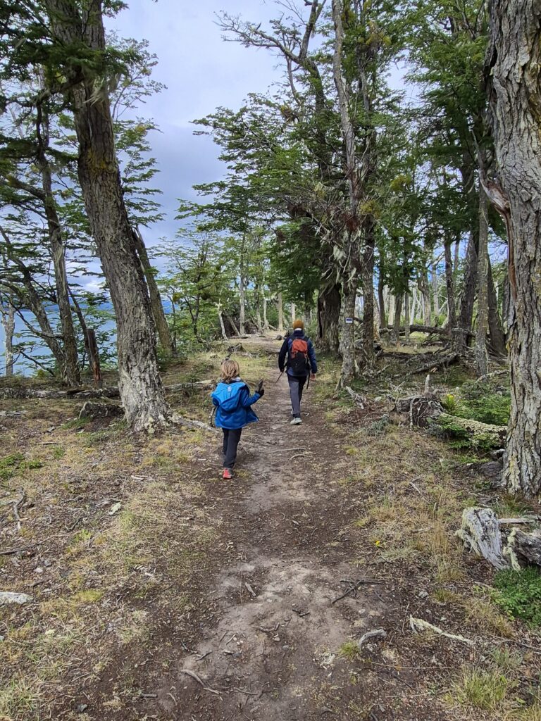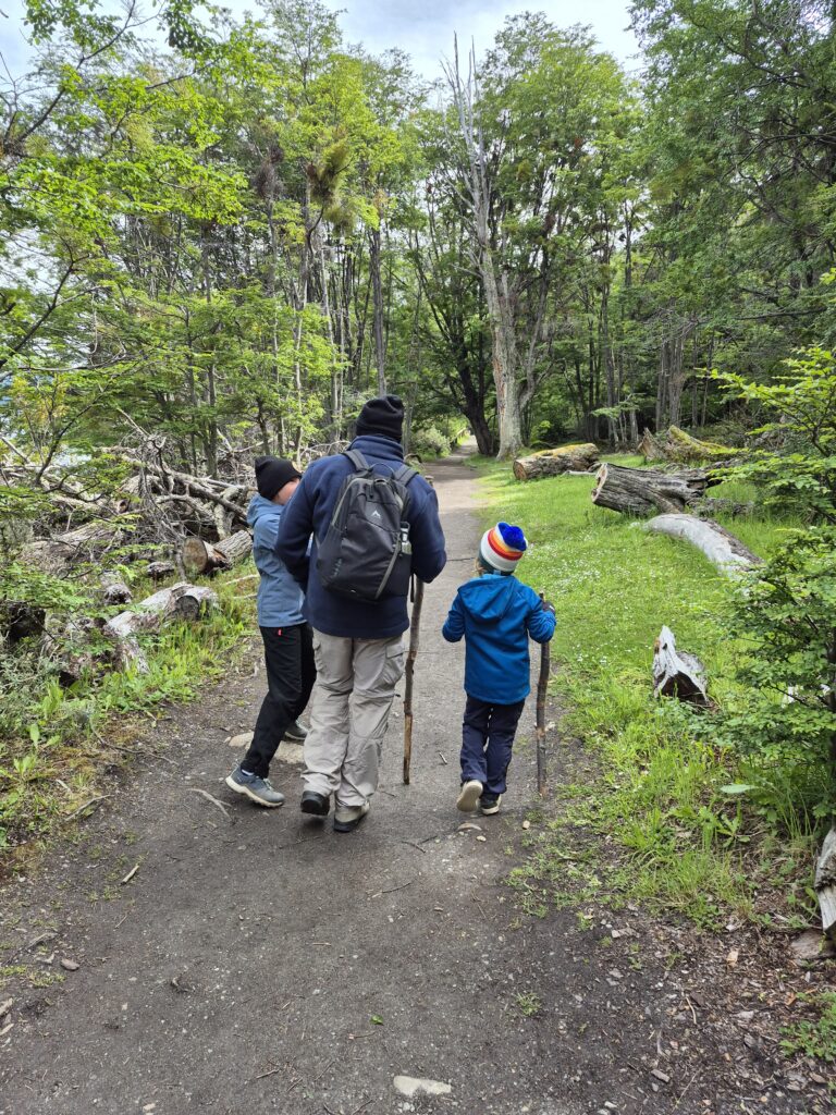 Nous passerons les trois premiers jours à visiter Ushuaia et ses environs: le parc national Tierra del Fuego et la laguna Esmeralda. Ces petites randonnées de mise en jambe nous permettent de profiter des uns des autres, de nous raconter tout ce que nous n’avons pas pu nous dire en 4 mois et de nous délester un peu des enfants qui sont ravis d’avoir de nouvelles oreilles à leur écoute! Le parc Tierra del Fuego est joli mais pas transcendant. Les sentiers déambulent tantôt dans la forêt de lengas, tantôt dans de petits marais semés d’herbes hautes et de petits arbustes épineux. Nous longeons un grand lac dans lequel plongent de basses montagnes aux sommets enneigés. De l’autre côté, le parc est bordé par le canal de Beagle qui apporte sur le rivage d’énormes moules agripées aux rochers. Sur la plage se trouve la poste du bout du monde, le bureau de poste le plus austral de la planète. La visite se réalise dans la journée et les sentiers ne présentent pas de difficulté particulière.
