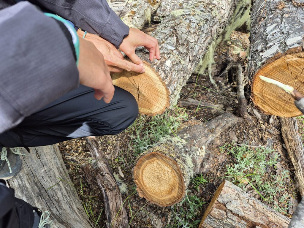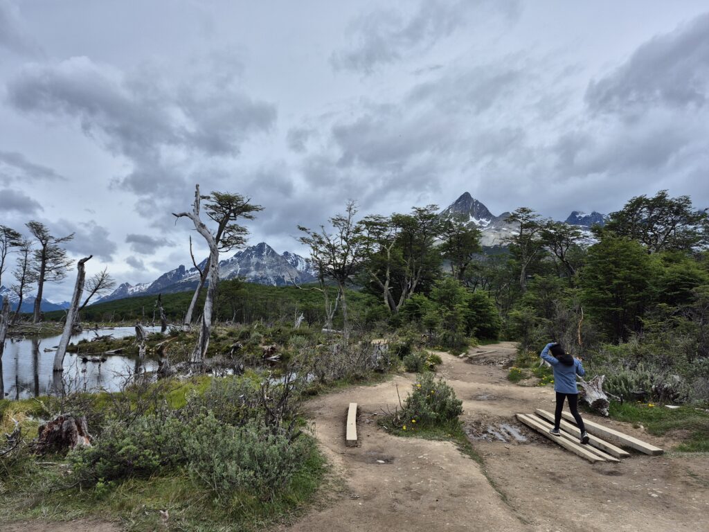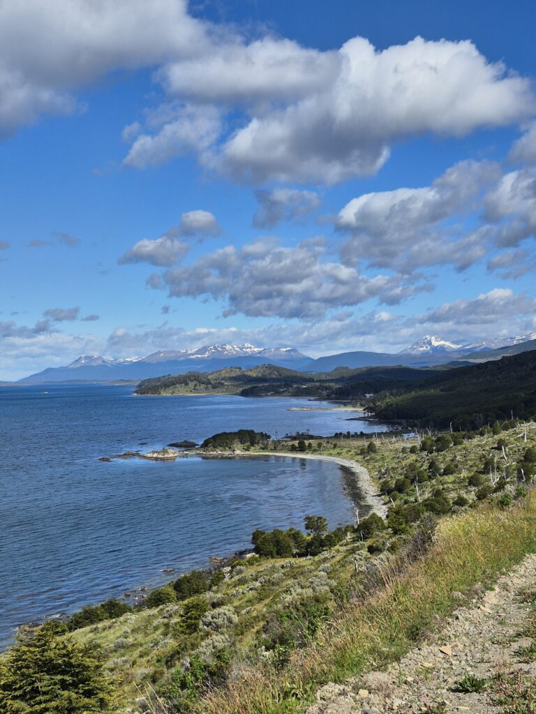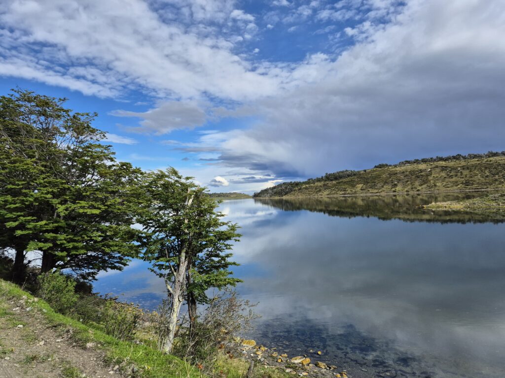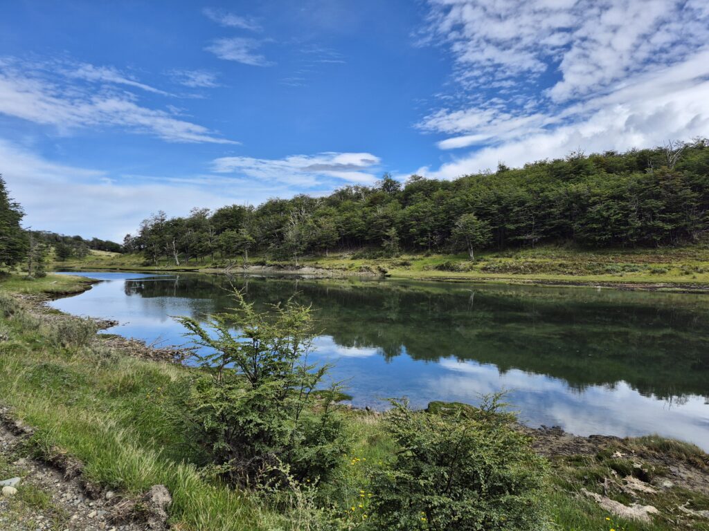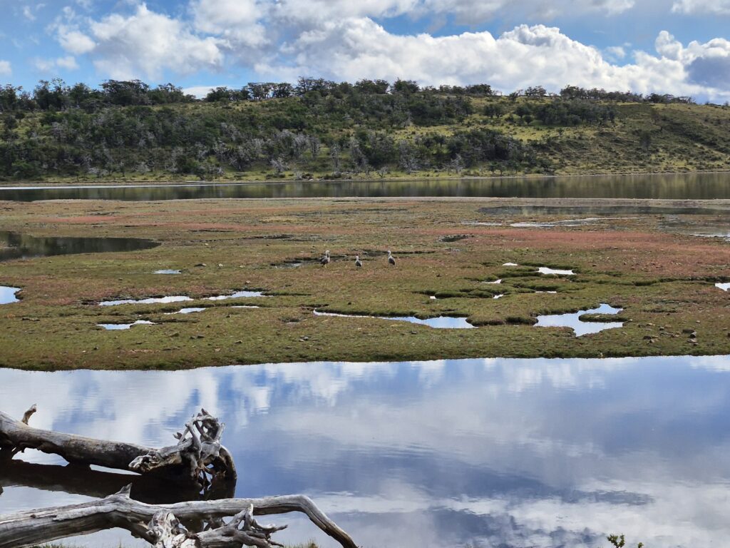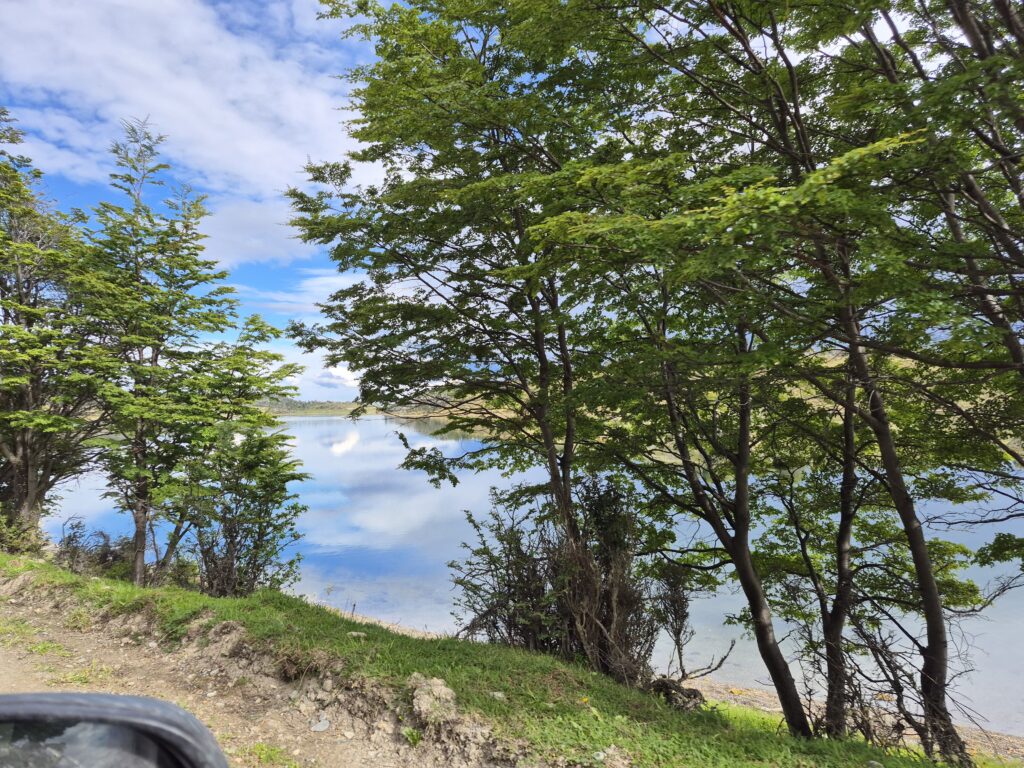 Le lendemain matin, nous partons à la découverte des lagunes de Tolhuin. Une petite balade de 10 km qui borde le lac et traverse la forêt de lengas. De petits panneaux pédagogiques nous aident à découvrir ce nouvel écosystème froid et humide. Beaucoup de mousses, de résineux, de nouveaux oiseaux ainsi que des tourbières. Nous découvrons également nos premières lagunes vert-bleu et nous nous émouvons de ce nouveau monde, frais mais extrêmement beau.