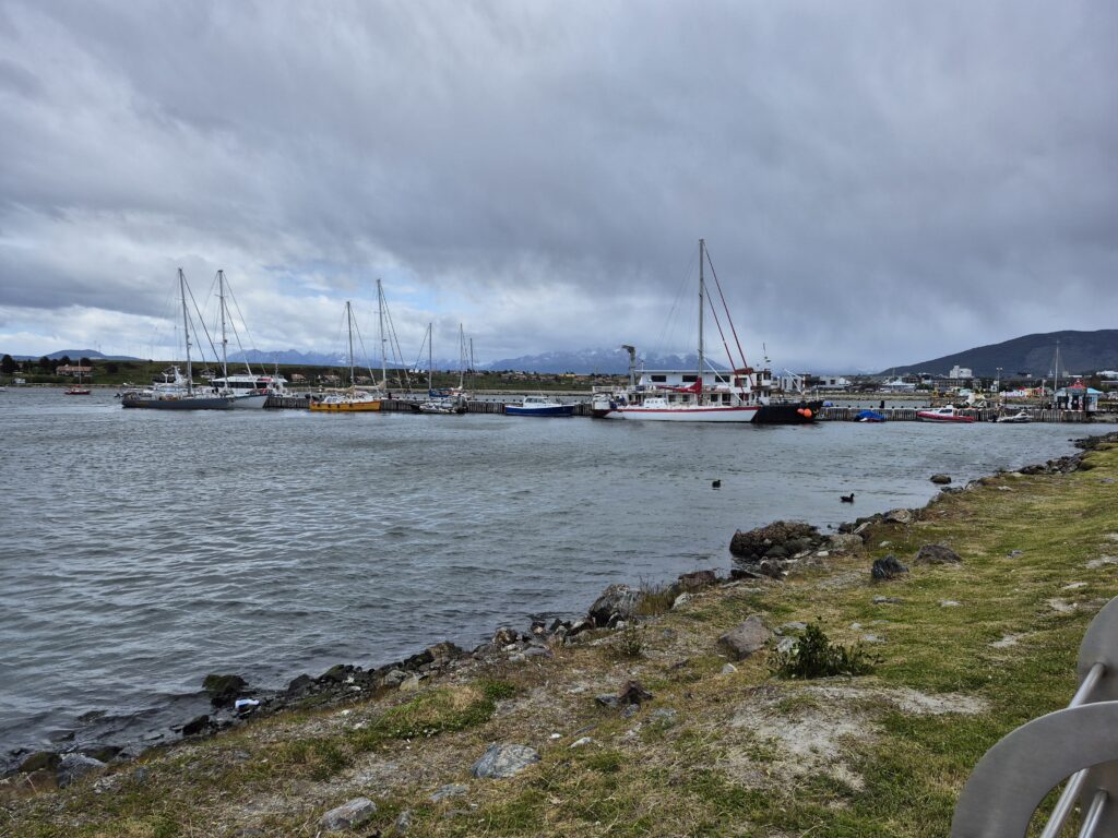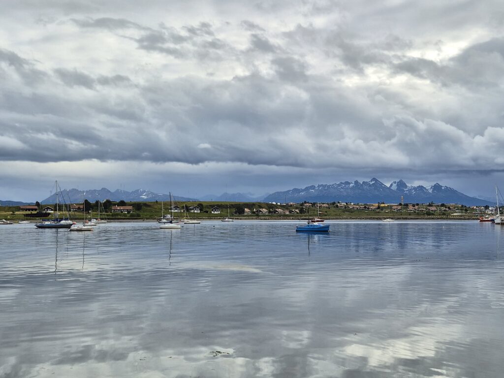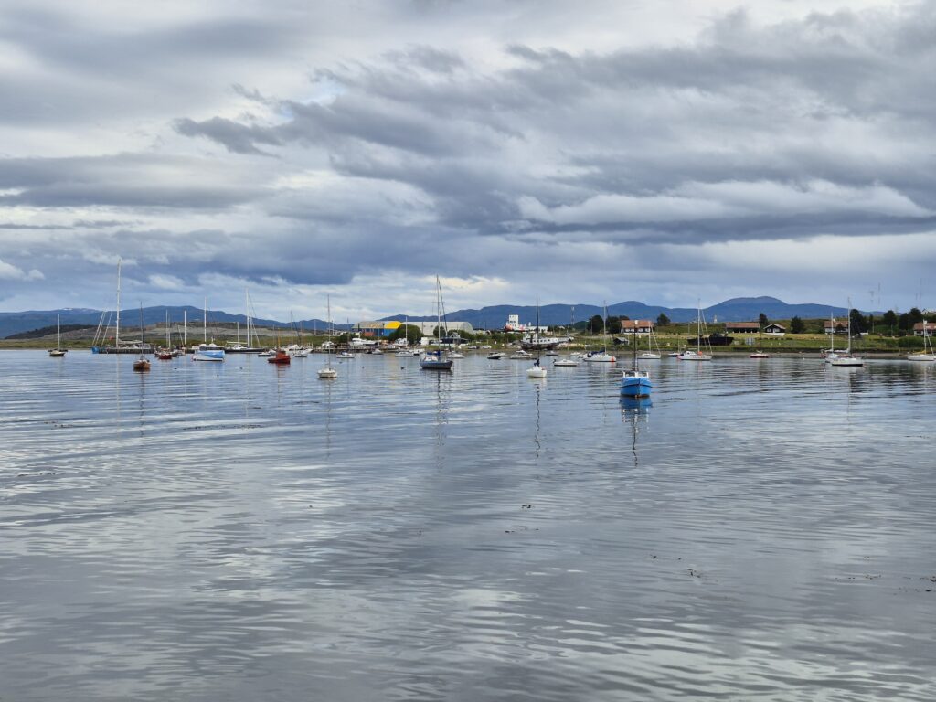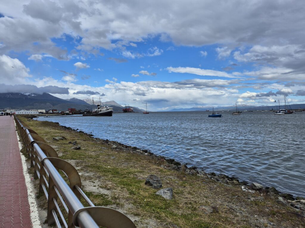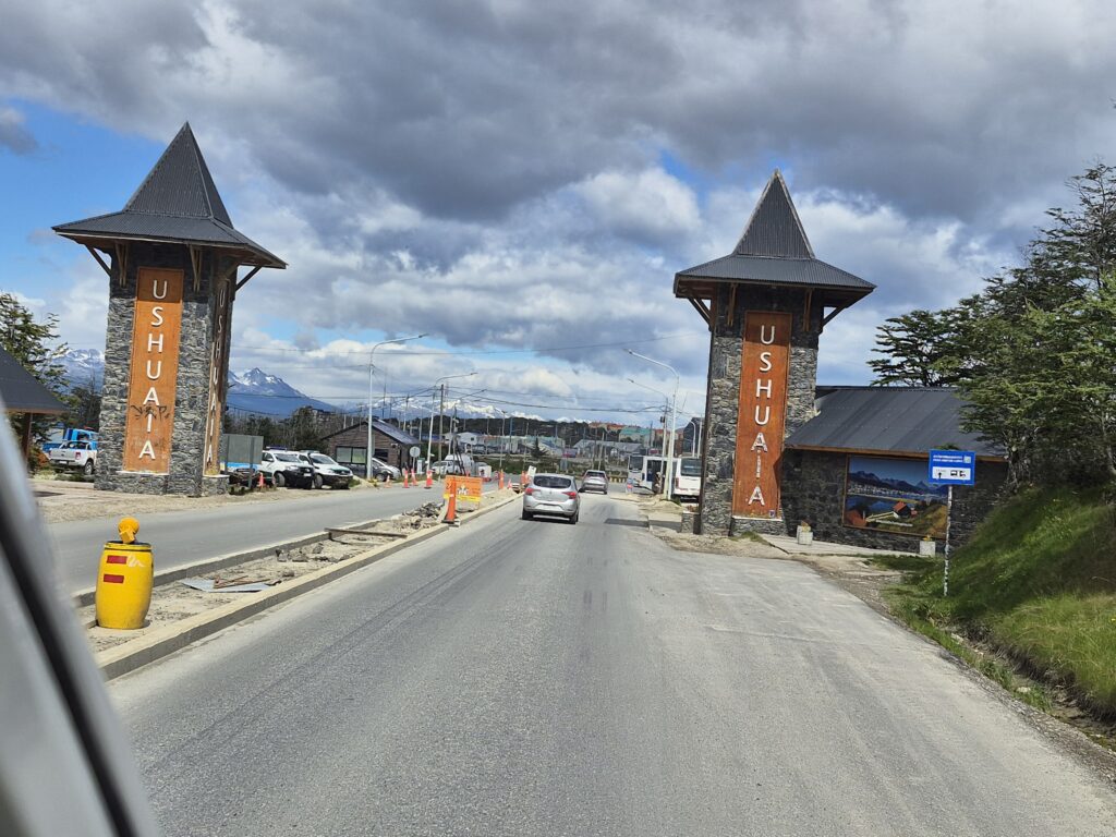 Le lendemain matin, nous reprenons la route dans l’autre sens pour rejoindre la ville d’Ushuaïa. Ce nom est lourd de sens, il évoque le bout du monde, la partie la plus australe de la planète et en tout cas de notre voyage. Il marque aussi le début d’une toute autre aventure: celle des glaciers! La route qui mène à Ushuaïa est très belle et sillonne entre lacs et montagnes. L’arrivée dans la ville, quant à elle, n’a pas grand chose de spectaculaire. Deux grands poteaux de bois indiquent l’entrée puis il faut traverser pendant une bonne dizaine de minutes un long boulevard industriel et portuaire pour rejoindre le centre. Celui-ci se résume à une petite rambla le long du canal de Beagle et à quelques rues commerçantes parallèles perchées sur la montagne.