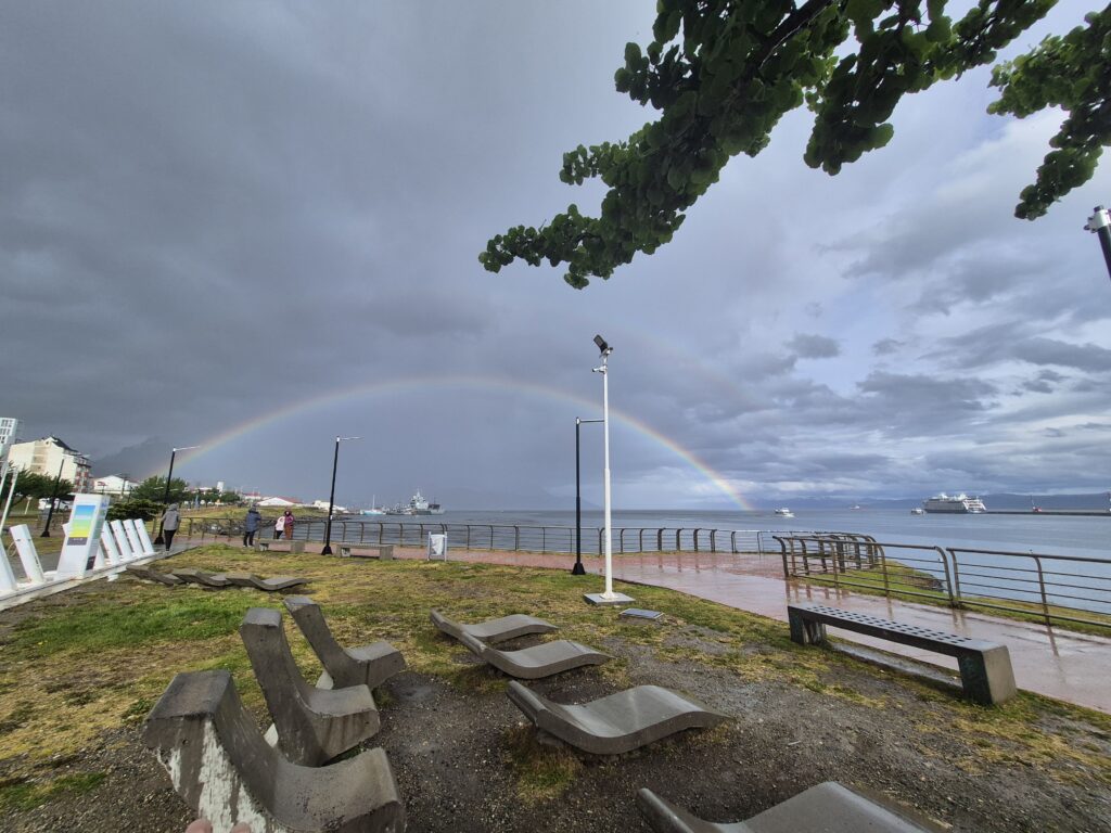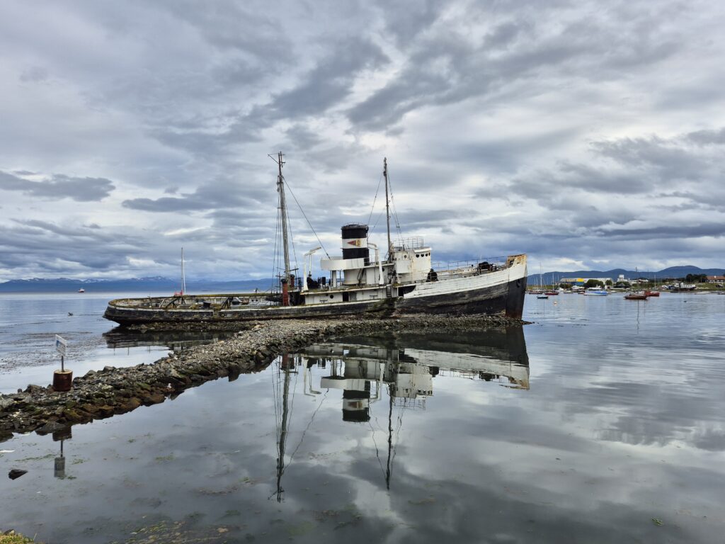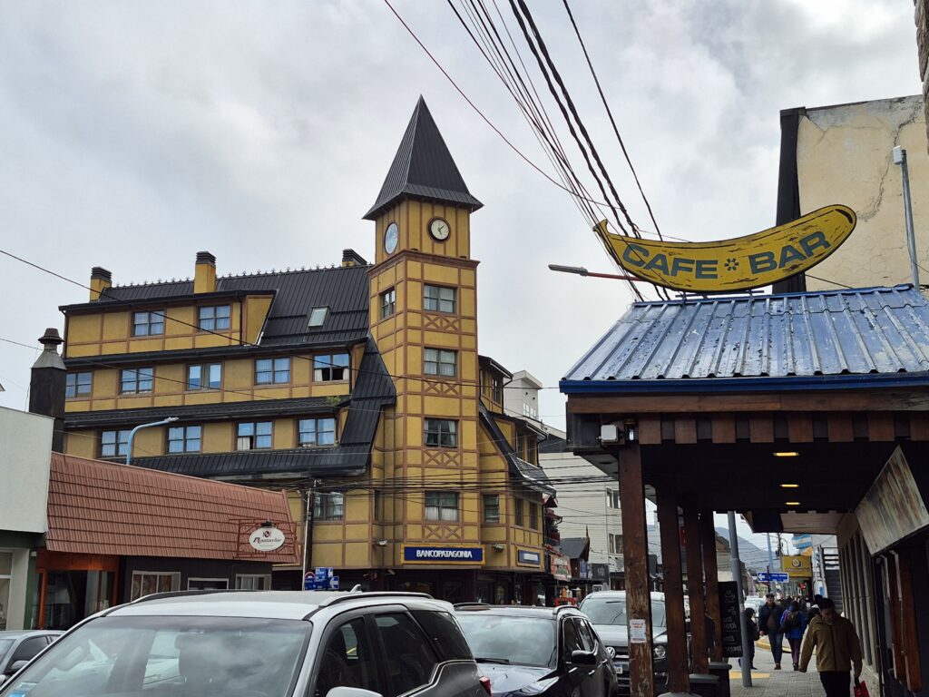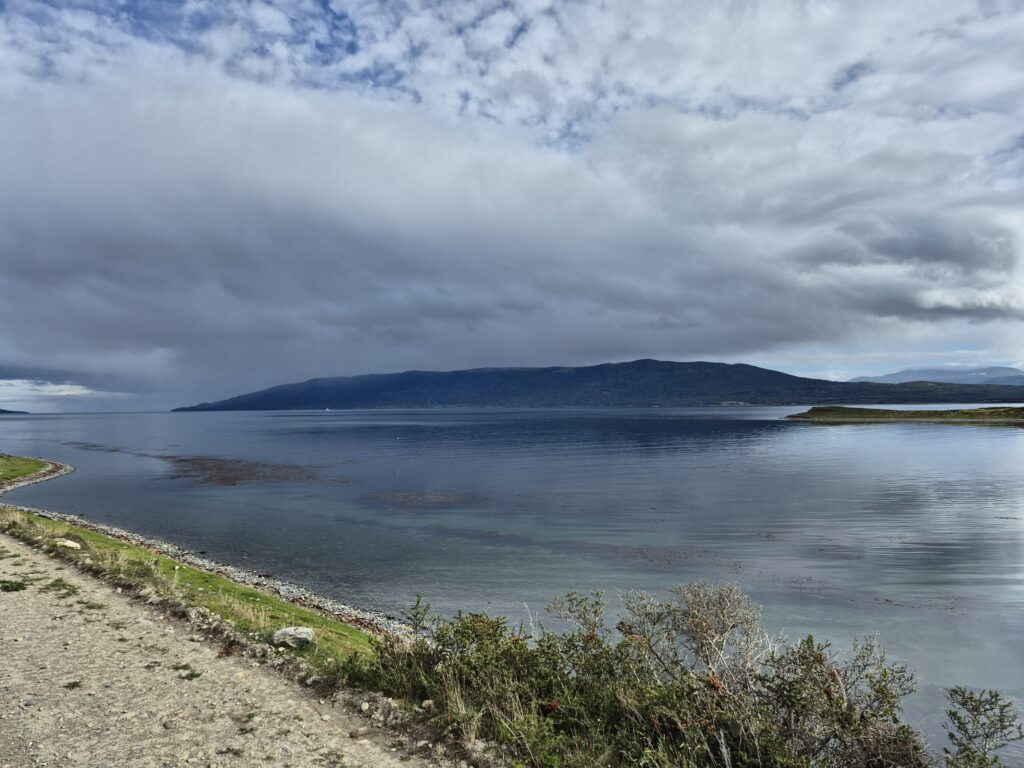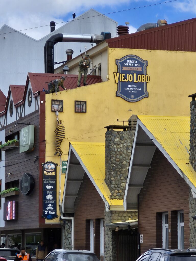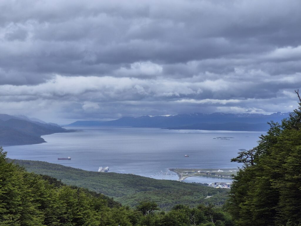 Le lendemain matin, nous reprenons la route dans l’autre sens pour rejoindre la ville d’Ushuaïa. Ce nom est lourd de sens, il évoque le bout du monde, la partie la plus australe de la planète et en tout cas de notre voyage. Il marque aussi le début d’une toute autre aventure: celle des glaciers! La route qui mène à Ushuaïa est très belle et sillonne entre lacs et montagnes. L’arrivée dans la ville, quant à elle, n’a pas grand chose de spectaculaire. Deux grands poteaux de bois indiquent l’entrée puis il faut traverser pendant une bonne dizaine de minutes un long boulevard industriel et portuaire pour rejoindre le centre. Celui-ci se résume à une petite rambla le long du canal de Beagle et à quelques rues commerçantes parallèles perchées sur la montagne.