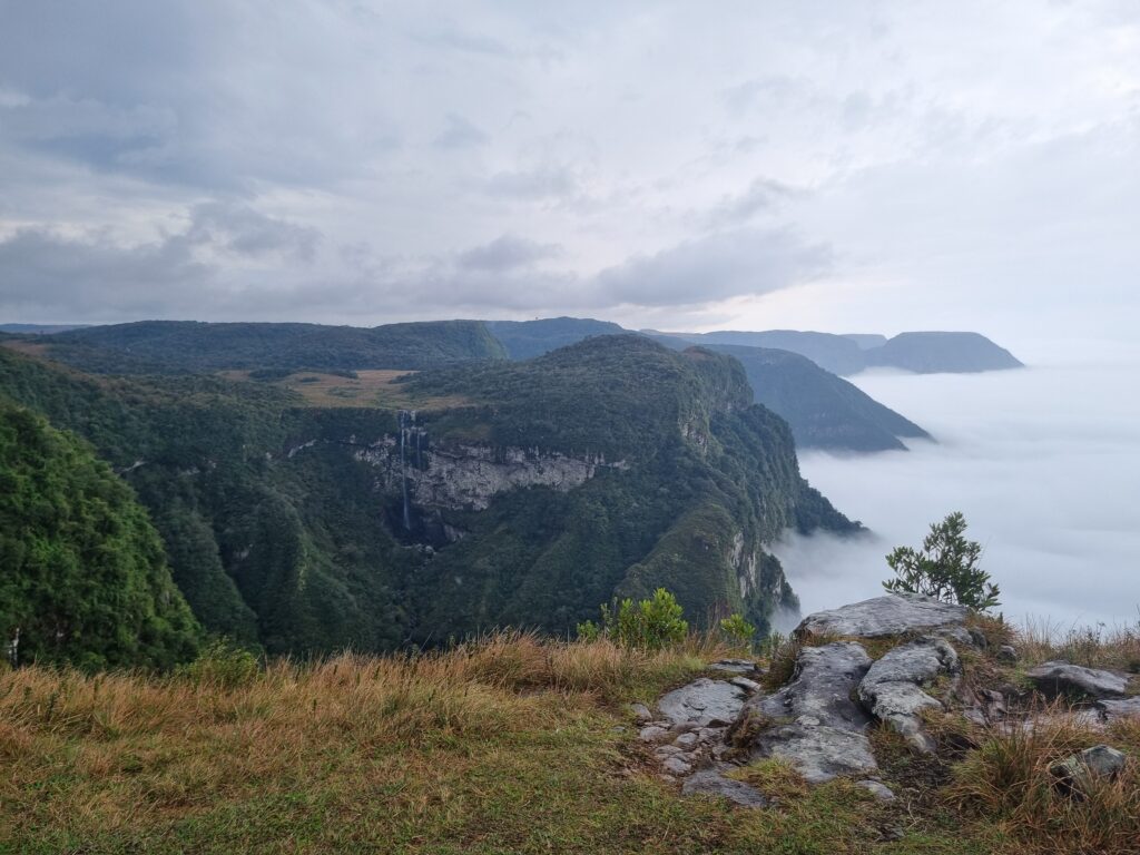 Suivant les conseils du gérant du camping de Cassino (une jolie plage au sud de Porto Alegre), nous nous rendons à Praia Grande, dans le Parc national de Serra Geral. C’est une ville touristique qui accueille principalement pendant l’été (décembre, janvier, février) de nombreux Brésiliens, mais aussi des Uruguayens et des Argentins qui recherchent des lieux en pleine nature et des vues époustouflantes.