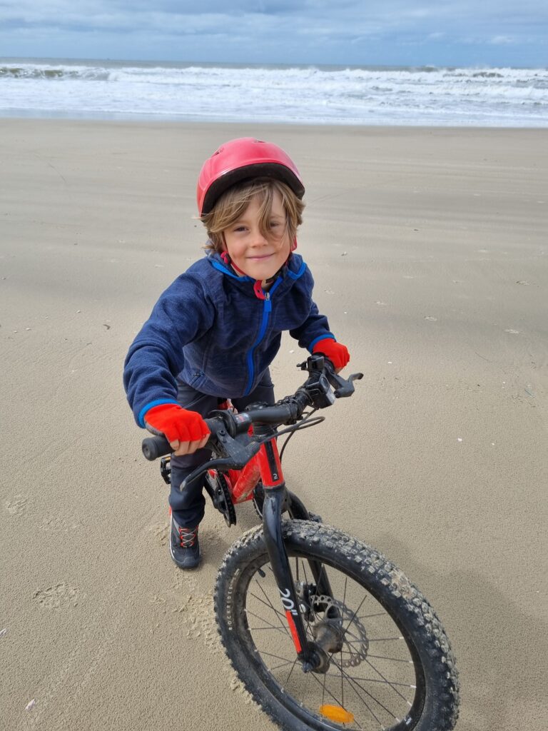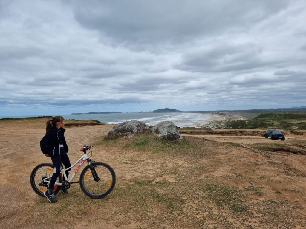 Le lendemain, nous avons pu mettre le nez dehors et sommes partis à vélo vers Laguna. L’océan était encore trop déchaîné pour que les dauphins montrent le bout de leur nez. En revanche, on a fait une belle balade de 20km à vélo et avons trouve un pump-track naturel dans les dunes pour le plus grand bonheur des enfants! Le paysage est magnifique et très sauvage. Cette partie de la côte est en plein essor, avec des terrains constructibles à vendre un peu partout le long du littoral…dans quelques années le paysage sera totalement transformé!