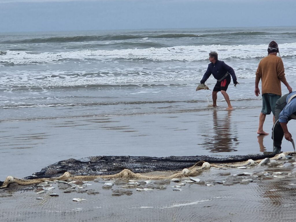 Le Dimanche, lors d’une balade à vélo sur la plage, nous avons pu assister à la pêche traditionnelle au filet. les pêcheurs se retrouvent à plusieurs dizaines, vont déposer un filet gigantesque avec un petit bateau puis le tirent tous ensemble. Ils en sortent des dizaines de poissons qu’ils vont vendre ensuite soit directement sur la plage, soit au marché.