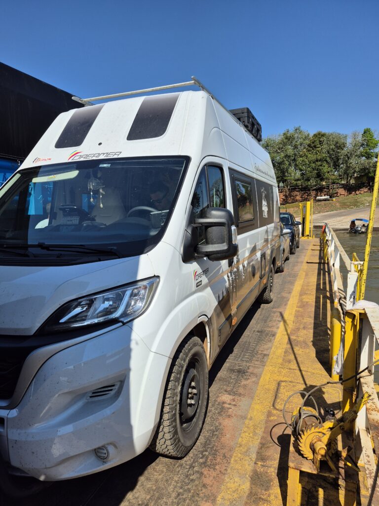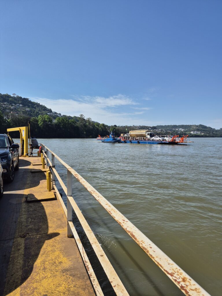 Nous traversons la province de Missiones en Argentine pour rejoindre Foz do Iguaçu au Brésil. Ce trajet ne devait durer que 3 heures mais c’était sans compter le temps de passage de la frontière Brésil-Argentine puis de nouveau Argentine-Brésil. Nous savons maintenant que les journées de passage de frontière sont des journées perdues. Même si ce ne sont que de simples formalités (merci au passeport français), cela prend tout de même du temps: d’abord faire tamponner nos passeports pour la sortie du pays, puis faire tamponner le TIP du véhicule pour que lui aussi soit enregistré comme sorti du territoire. Ensuite passage à la douane d’entrée et recommencer: faire tamponner nos passeports pour l’entrée et faire-faire le document pour le véhicule. Ce jour-là nous sommes entrés en Argentine puis ressortis pour le Brésil, il a donc fallu faire ces démarches deux fois!
