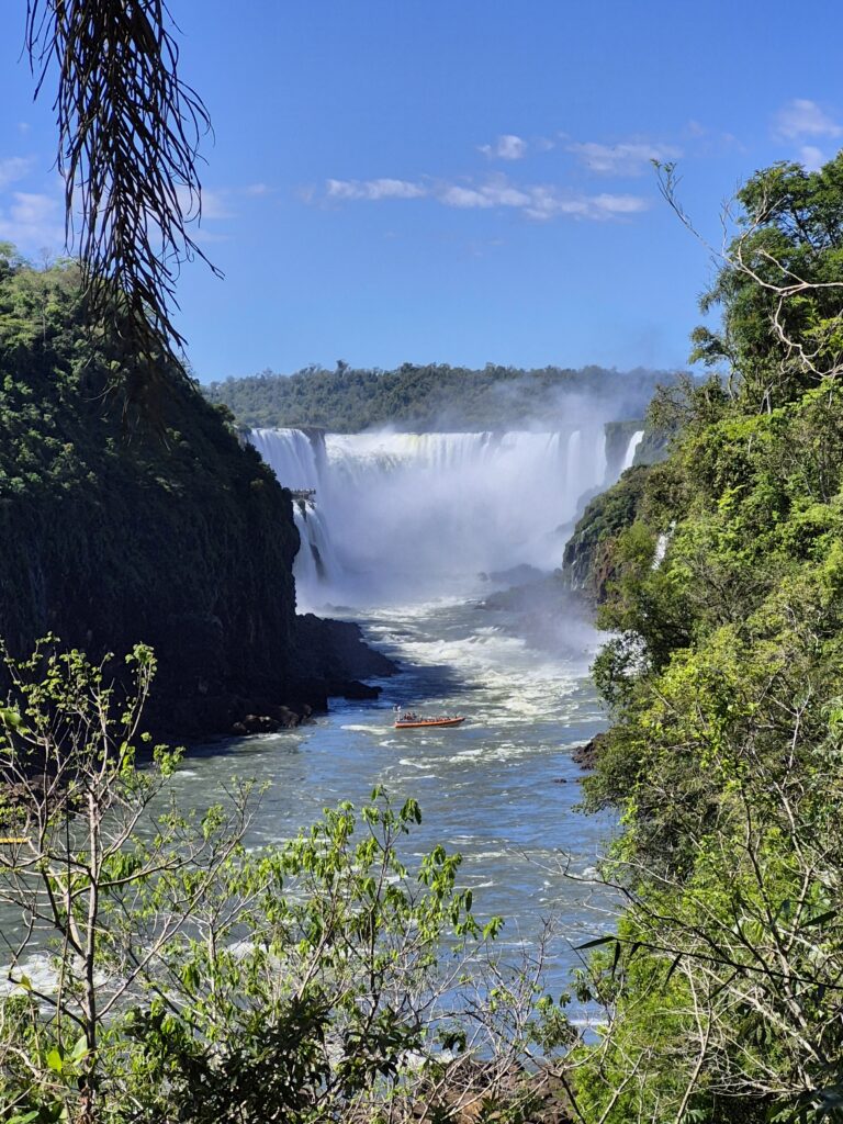 Clou du spectacle: la Garganta del Diablo. 82 mètres de haut. Une longue passerelle nous conduit au bord de la chute et nous offre une vue imprenable et spectaculaire sur cette cataracte surpuissante. D’ici on peut sentir l’immense force de l’eau et son rugissement assourdissant. Il faut crier pour pouvoir se parler. On se sent tout petit, insignifiant face à cette monstrueuse merveille de la nature. Il n’y a pas assez de mots, nous sommes subjugués!