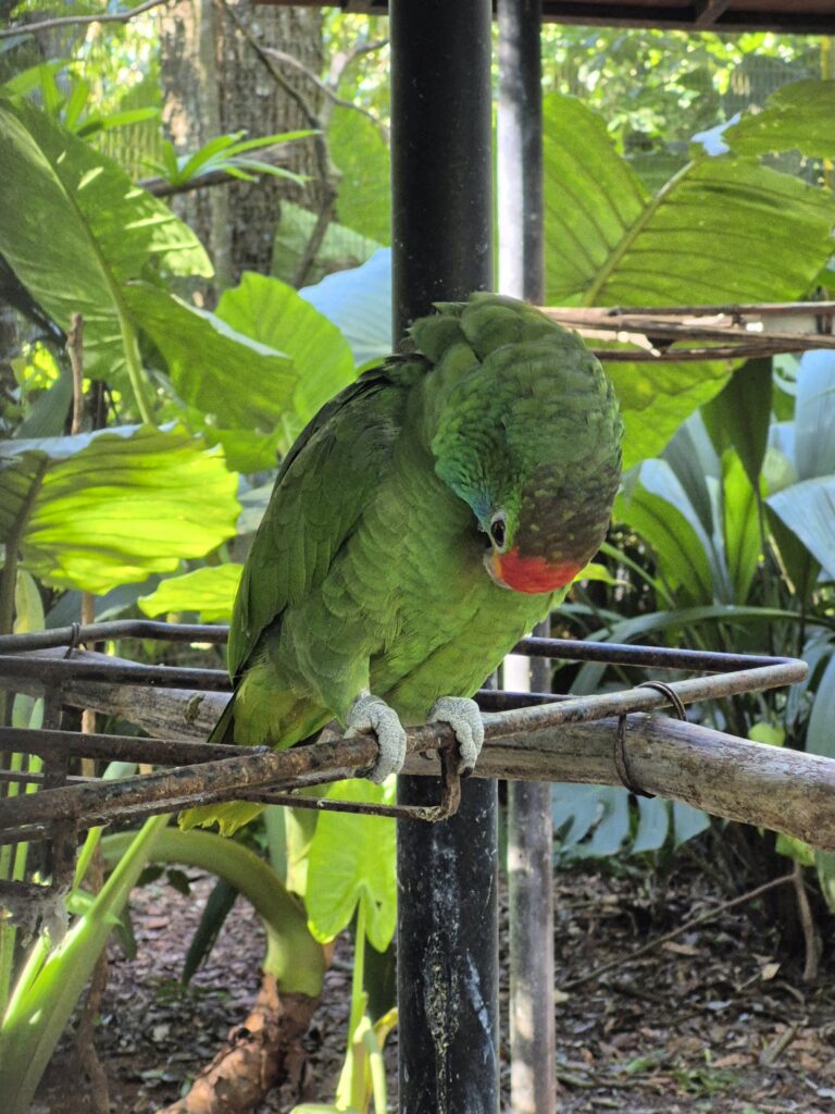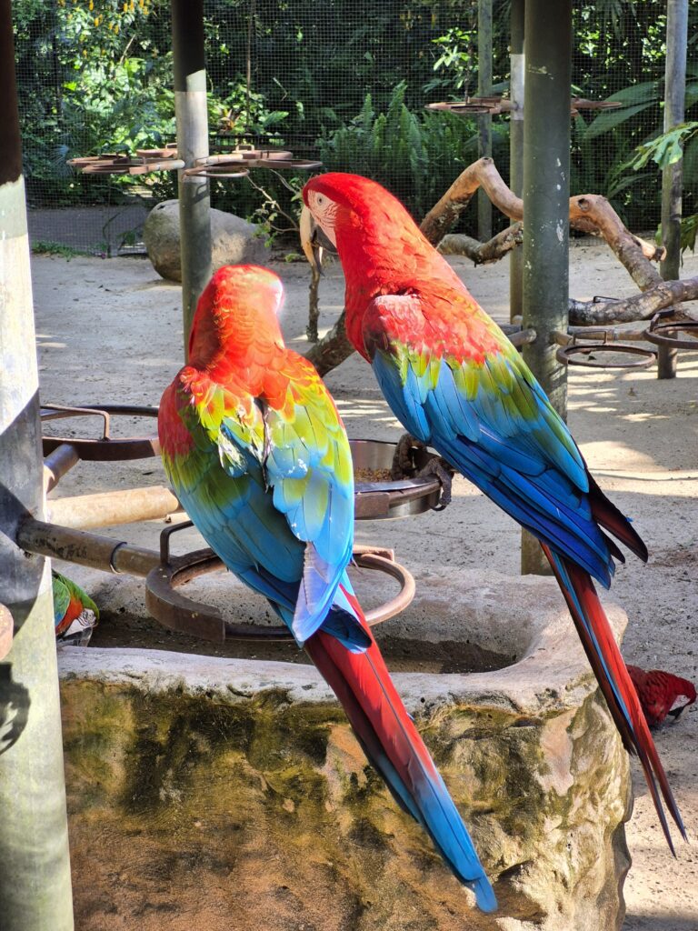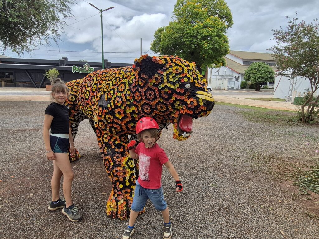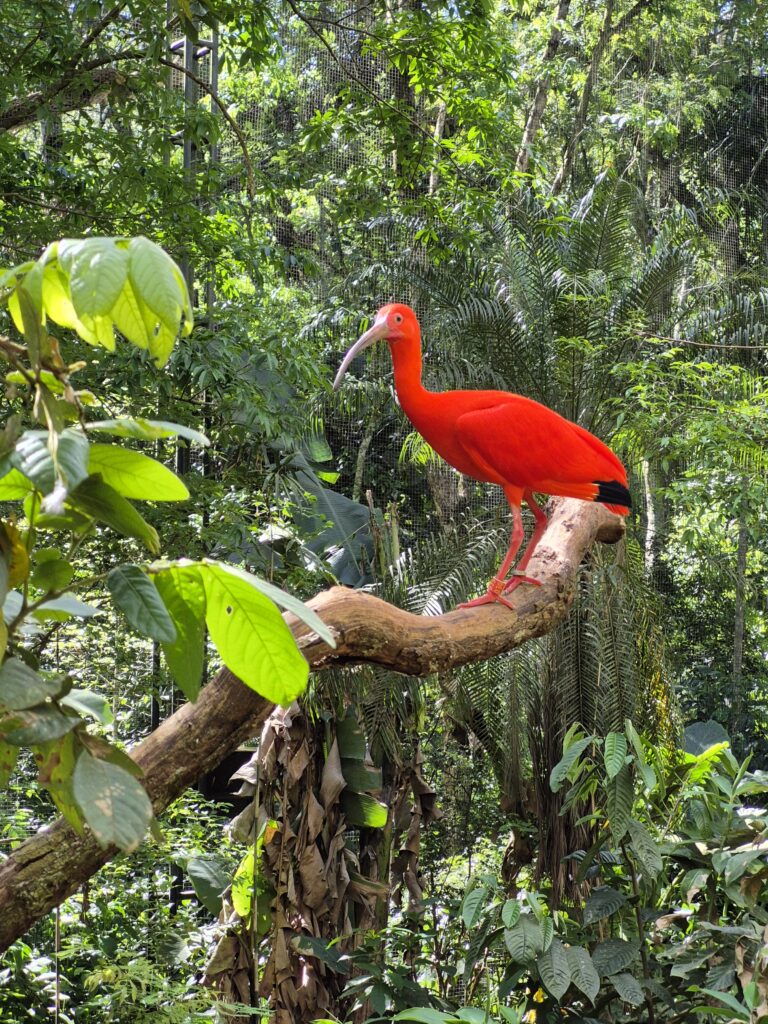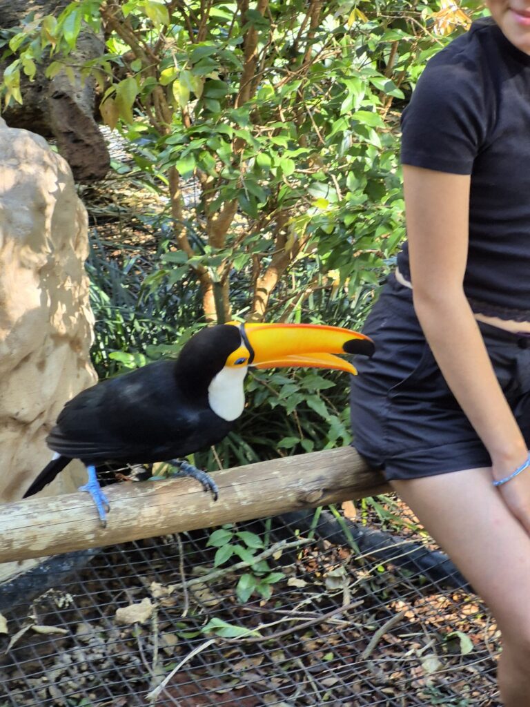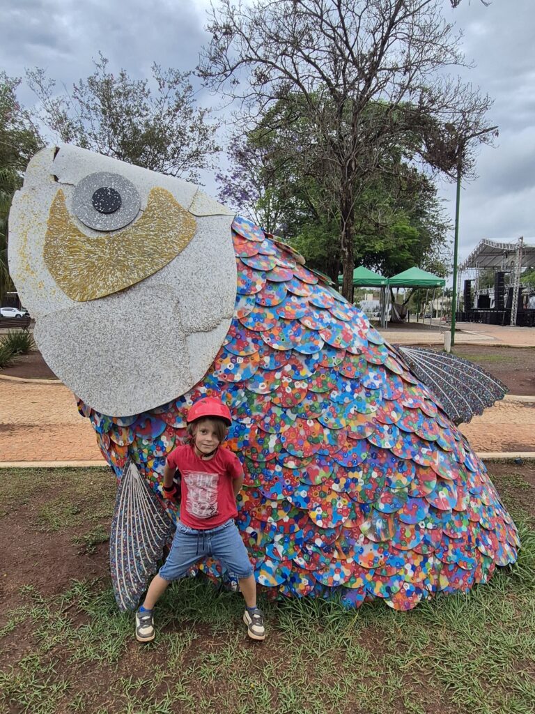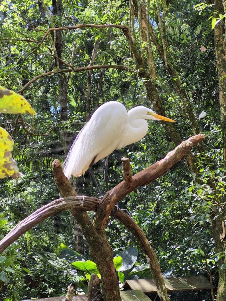 L’après-midi, nous visitons le Parque das Aves. C’est un très beau parc de volières dans lesquelles ont peut observer les Aras, perroquets, perruches, colibris, toucans, etc, et découvrir la biodiversité de la Matà Atlanticà. Le Parc est magnifique et très pédagogique. Les affichages sont simples, visuels et concis, si bien que les enfants en ressortent en ayant bien compris les enjeux de la lutte contre la déforestation car celle-ci détruit l’habitat des oiseaux, leur alimentation et conduit à leur disparition. Il y a également toute une explication sur le Cecropia, arbre emblématique et pionnier de la Mata Atlanticà qui représente un écosystème à lui tout seul. Les relations d’interdépendance entre les espèces dans la forêt et la notion d’écosystème sont également très bien expliquées et sensibilisent le public. Ce parc a réussi le pari de faire d’une attraction touristique un lieu de sensibilisation et tout cela dans un cadre magnifique et agréable, bravo à eux!