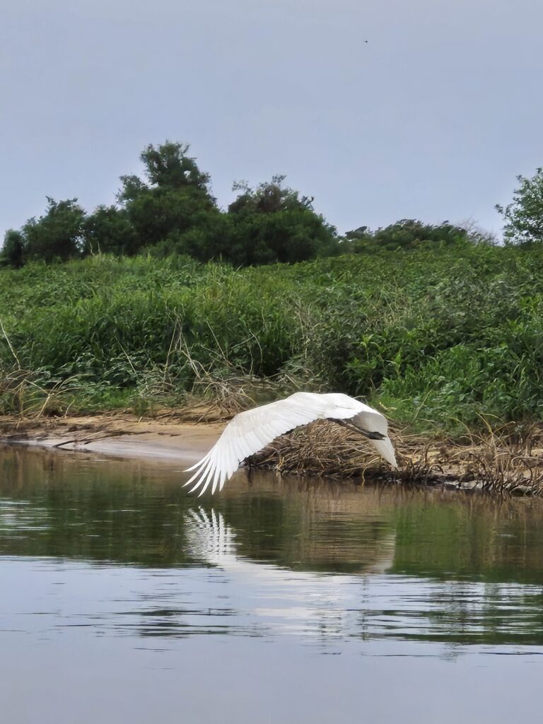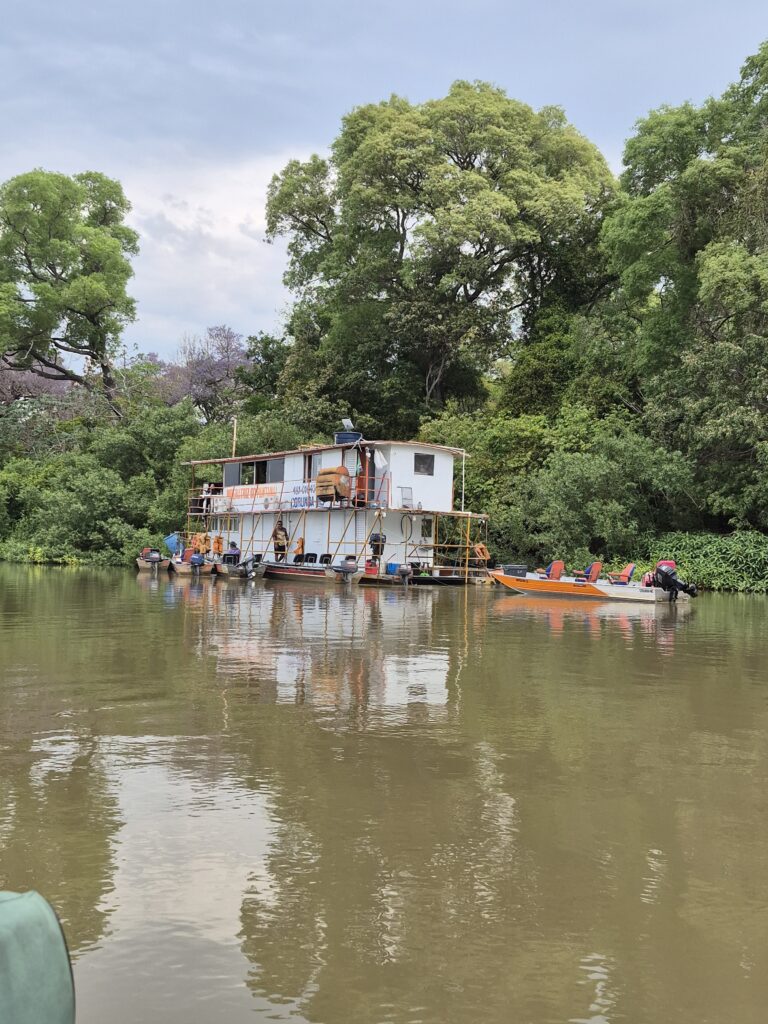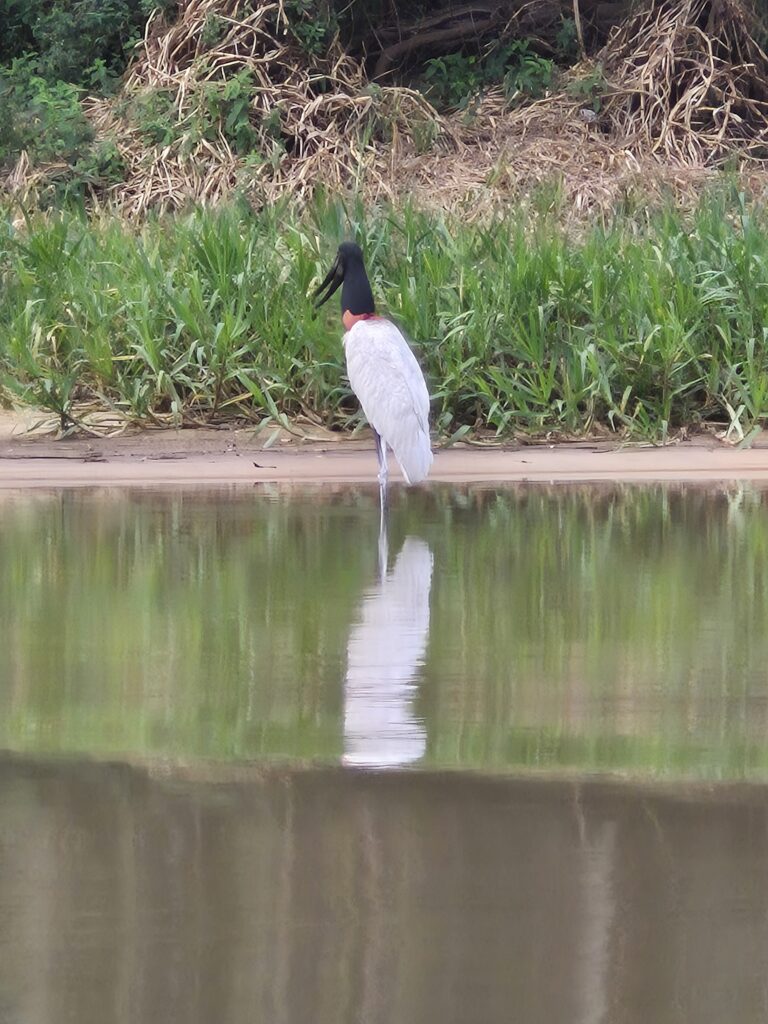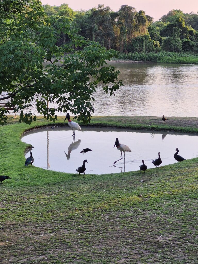 Nous nous installons sur l’espace réservé aux camping car d’une lodge au bord de la rivière. C’est un petit hôtel qui comprend quelques chambres dans des cabanes en bois, une jolie piscine avec vue sur la rivière et un restaurant très simple mais très bon. Nous y passerons trois jours, le temps de profiter de la vue que nous offraient les oiseaux et autres animaux aquatiques tout au long de la journée depuis la terrasse et de partir une demi-journée sur la rivière pour observer le Pantanal de l’intérieur.