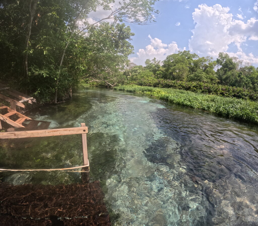 Bonito est une petite ville touristique aux portes du Pantanal entourée de rios aux eaux cristallines dans lesquels on peut nager avec le poissons. Ici fleurissent les agences d’éco-tourisme, passage obligé pour se baigner dans ces eaux transparentes aux bleus si intenses. Les Fazendas (fermes), dont le domaine d’activité était historiquement l’agriculture, se sont transformées petit à petit en lieux touristiques et tirent largement bénéfice de la protection de l’environnement. Les propriétaires ont ainsi tout intérêt à maintenir l’environnement propre et sauvage afin de satisfaire leurs clients qui paient (très cher) le droit de se baigner quelques heures dans les rivières de leurs propriétés. L’état brésilien a ainsi trouvé le moyen de protéger la région de la déforestation et de la pollution. C’est un cercle vertueux financé par les touristes dans lequel faune, flore et populations locales ont trouvé un juste équilibre.