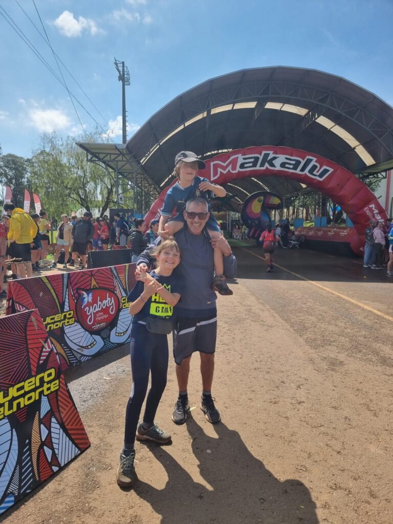 Nous passerons ensuite 3 jours et 3 nuits à Paraiso, dans ce camping de la jungle, en compagnie de coureurs et d’organisateurs argentins (et des burrachudos!!!). Dès notre arrivée, le contact se fait facilement avec Gustavo et ses deux équipiers. Ils viennent de Santa Fe et Gustavo est là pour entraîner et encourager les deux autres. Il nous propose rapidement de s’occuper des enfants pendant qu’on court et de les conduire jusqu’à l’arrivée, à Paraiso, la petite ville à 10km de là. Les enfants se sentant en confiance, on acceptera sa proposition. C’est fou comme on accorde la confiance rapidement à quelqu’un en voyage, nous fiant à notre seule intuition! Les rencontres, lorsqu’elles viennent à nous, sont sensibles, véritables et souvent intenses. Elle s’imposent à nous, comme une évidence. Quand le « courant » passe, les échanges deviennent très vite familiers. Je ne sais pas vraiment encore si c’est propre à l’Amérique du Sud ou bien à cette attractivité que nous créons par le seul fait de vivre cette aventure… Ici, les touristes étrangers ne viennent jamais. On est bien loin des circuits touristiques ordinaires. Autant vous dire que les Français semblent venir d’une autre galaxie!