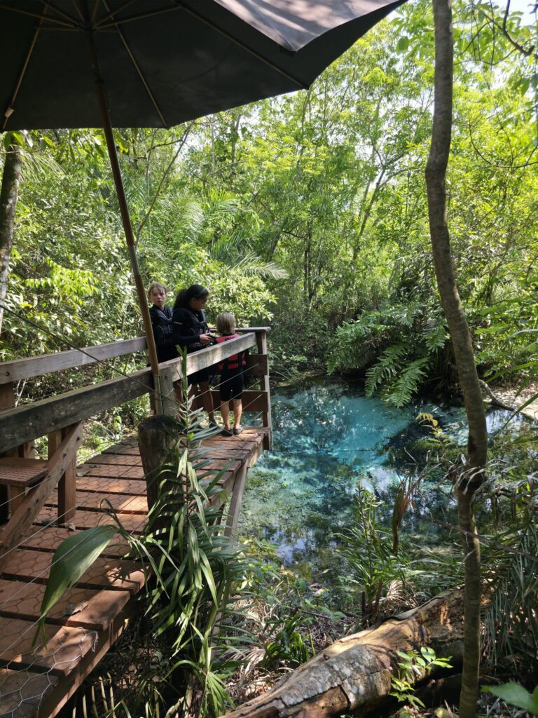Le lendemain, nous décidons de rester la journée à profiter de la piscine, écrire, observer la faune depuis le balcon. Nous passons une très bonne journée de repos avant de repartir vers Bonito où nous rejoignons Yohan, Julie, Lubin et Soline, une famille de voyageurs français rencontrés à Iguazu.