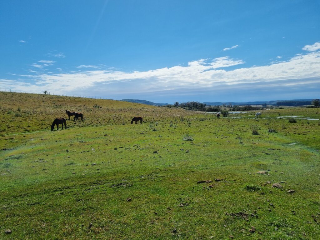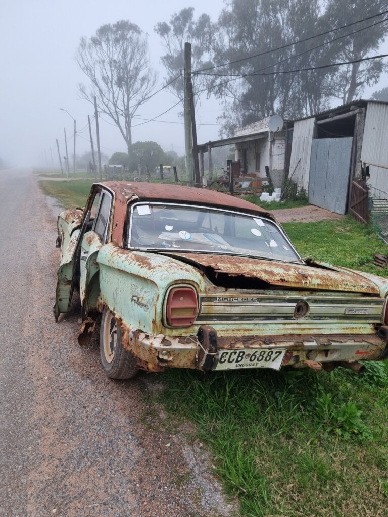 - Un développement à deux vitesses: en Uruguay, tu peux aussi bien croiser des voitures électriques dernier cri ou des pick-up flambant-neufs comme des tacots de 1960 tout rouillés ; des gens qui vivent avec l’équivalent de 200€/mois comme d’autres qui gagnent dix fois plus ; des fermiers qui vivent comme au début du XXème siècle en France, sans eau chaude ni machine à laver, qui doivent parcourir 30 minutes de piste pour rejoindre une ville (quand la route n’est pas coupée par une rivière en crue) et à seulement 200km, une côte océane bordée d’autoroutes asphaltées, de luxueux immeubles, de pistes cyclables et de shopping center. Des disparités comme celles-ci sont monnaie courante ici. Cependant, tout le monde semble manger à sa faim, être logé et en sécurité. Il y a ceux qui sont montés dans le train de la mondialisation et de la société de consommation et qui en ont tiré du confort et les autres qui, soit par choix, soit par fatalité, son restés sur le quai. Dans le Nord, c’est vraiment par choix. Les gens d’ici défendent la culture gaucho, le « bien vivre » à la campagne et la préservation de leur terroir. Revers de la médaille: un exode rural important chez les jeunes qui s’expatrient dans les villes et ne veulent plus revenir. Le tourisme rural est en pleine expansion et certains l’ont bien compris avant les autres: des pousadas (auberges) poussent un peu partout avec des nuits insolites dans des cabanes en A, des petites constructions géodésiques ou autre constructions peu banales. Une manière de redonner un peu de dynamisme à ces grandes étendues abandonnées…à tort ou à raison? Nous nous garderons bien d’émettre un avis sur le sujet. Pendant ces trois semaines en Uruguay, nous aurons rencontré des conservateurs, des pro-développement, des avant-gardistes, toutes ces visions cohabitent en bonne intelligence dans ce pays qui cherche encore la voie qu’il veut emprunter.
