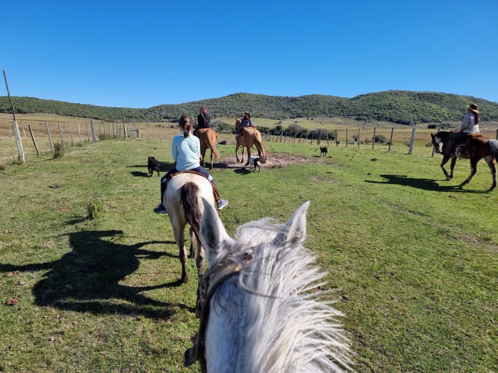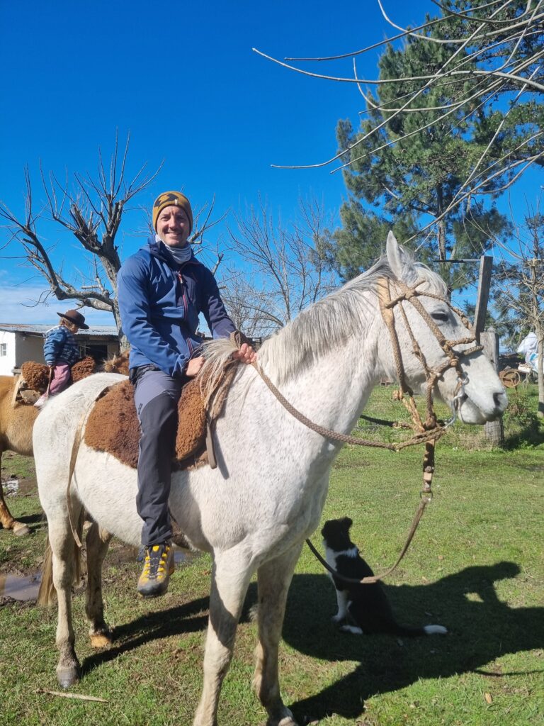 - Les animaux: Nous avons également été frappés par l’importante présence d’animaux, sauvages comme domestiques. D’abord les oiseaux : il y en a énormément! Des petits, des gros, qui volent et planent au-dessus de votre tête où que vous soyez. Bien sûr il y en a encore davantage à la campagne. Le chant des oiseaux vous accompagnent du matin au soir, c’est très plaisant! Les chevaux : nous ne nous étions pas trompés, l’Amérique du Sud est le continent du cheval. L’Uruguay ne fait pas exception: il y a un nombre impressionnant de chevaux dans les champs, servant aux gauchos, mais aussi en ville, parfois sur les pelouse, les bas-côtés. Le cheval est un animal domestique très répandu et très respecté. Enfin les chiens: chaque famille possède parfois un, souvent plusieurs chiens. Il y a des magasins spécialisés pour leur nourriture et leur bien-être à tous les coins de rue. Dans l’aéroport de Montévidéo, il y a même des toilettes pour femmes, de toilettes pour hommes (jusque-là rien de bien exceptionnel!) et … des toilettes pour chiens! Partout où nous allons, nous finissons toujours par être accompagnés d’un ou deux chiens errants cherchant un peu d’affection ou quelques restes de repas. Les animaux sont tous très gentils, nous n’avons croisé aucun chien agressif. Cependant, il est important de faire bien attention où l’on met les pieds (petite revanche contre ces humains qui jettent leurs déchets partout???)!