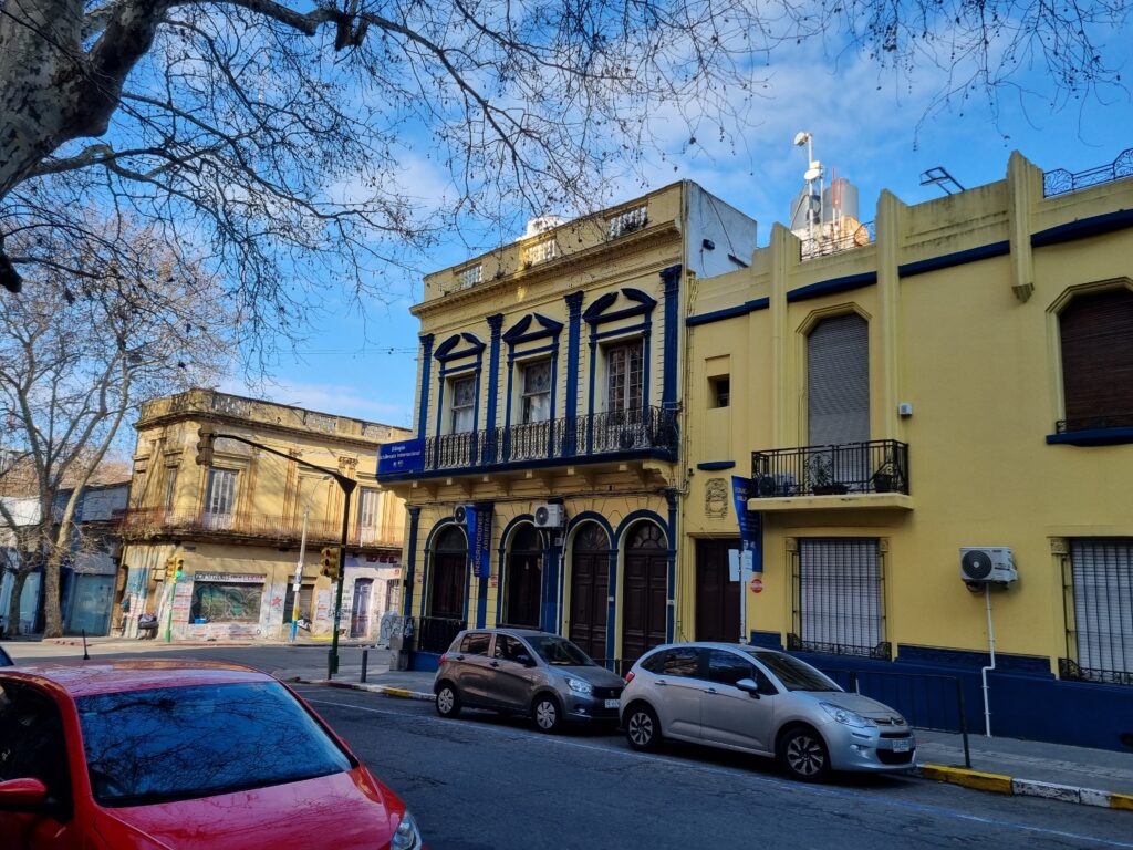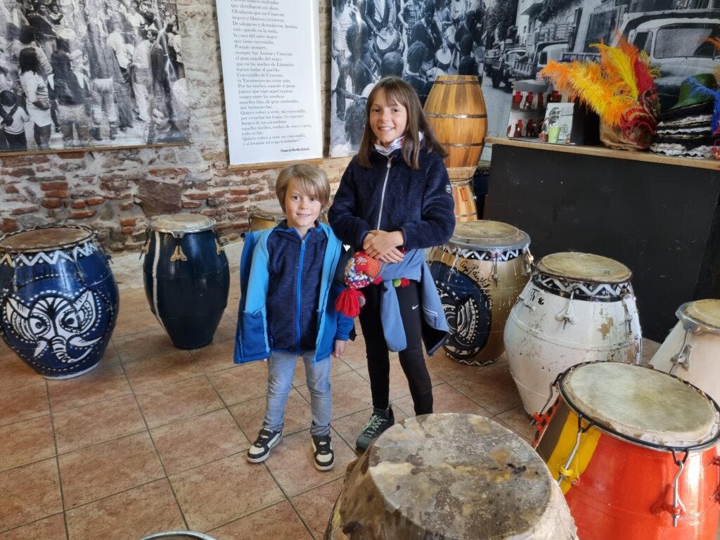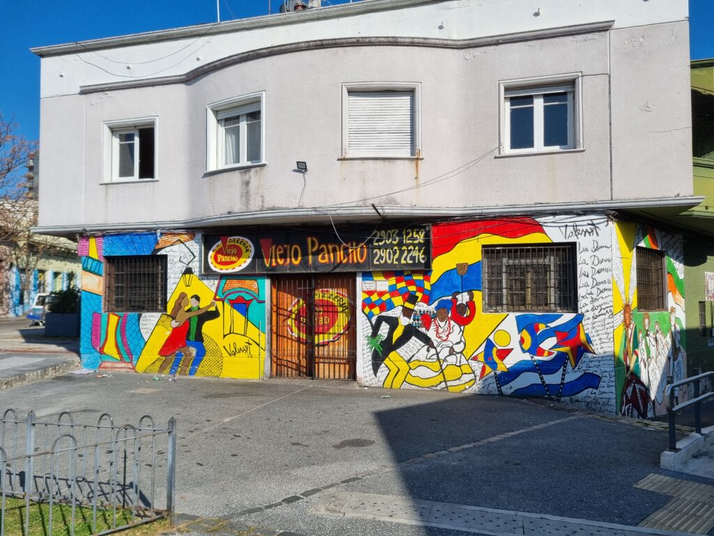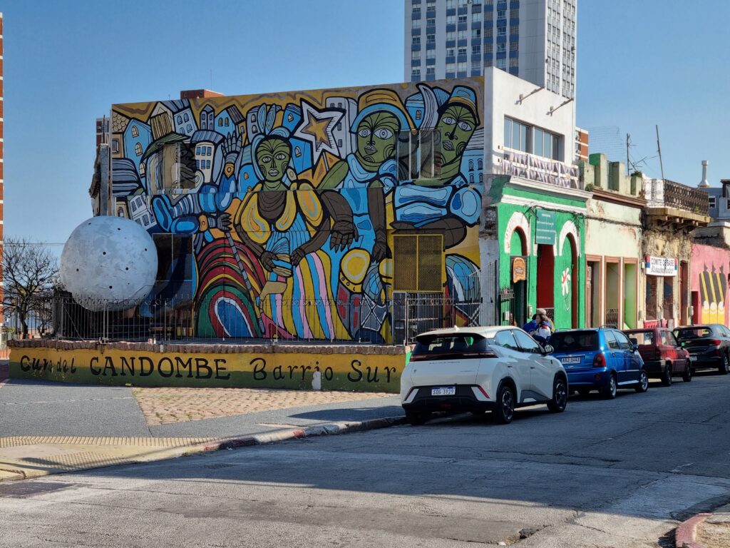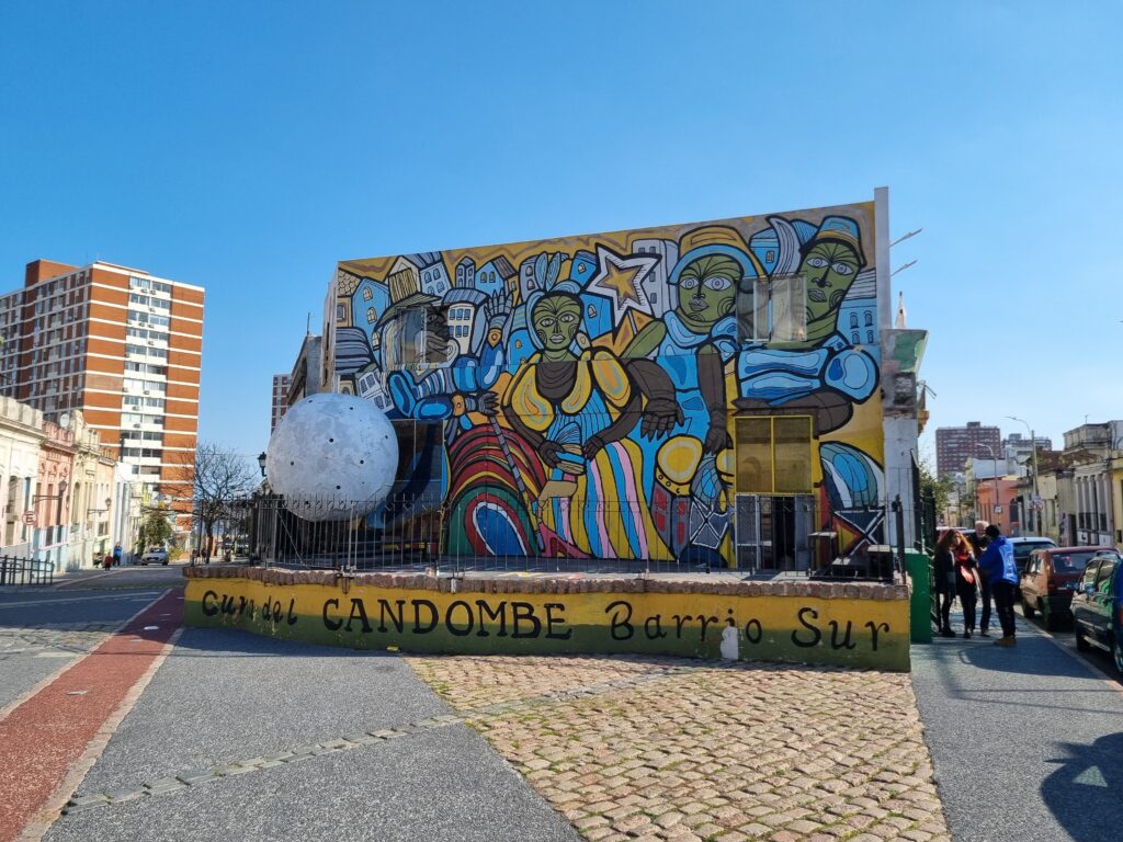 En sortant du Mirador, nous traversons Barrio Sur, le quartier Afro-uruguayen qui s’étend sur quelques pâtés de maisons entre l’avenue du 18 juillet et l’Océan. C’est un des quartiers les plus populaires de la ville où se mêlent culture africaine et sudaméricaine. Ce quartier est un véritable coup de cœur pour ma part. Ses graphs sur les murs, ses maisons typiques et colorées, pour la plupart délabrées, donnent une ambiance toute particulière à ses rues. Ici résonne l’histoire de Montevideo, on ressent quelque chose de puissant mais indescriptible…Ces rues racontent une histoire…à chacun de se l’imaginer. C’est aussi ici que réside le berceau du Candombe, cette danse populaire pratiquée lors du Carnaval principalement. Nous croisons un homme devant un bâtiment très coloré. Il nous explique que c’est une association culturelle et qu’ils reçoivent actuellement la délégation congolaise. Le son des tambours résonne dans les rues alentours. L’homme nous explique qu’un enregistrement a lieu en ce moment-même et que nous ne pouvons pas entrer pour le moment. Il nous laisse tout de même photographier les tambours typiques de cette musique traditionnelle.