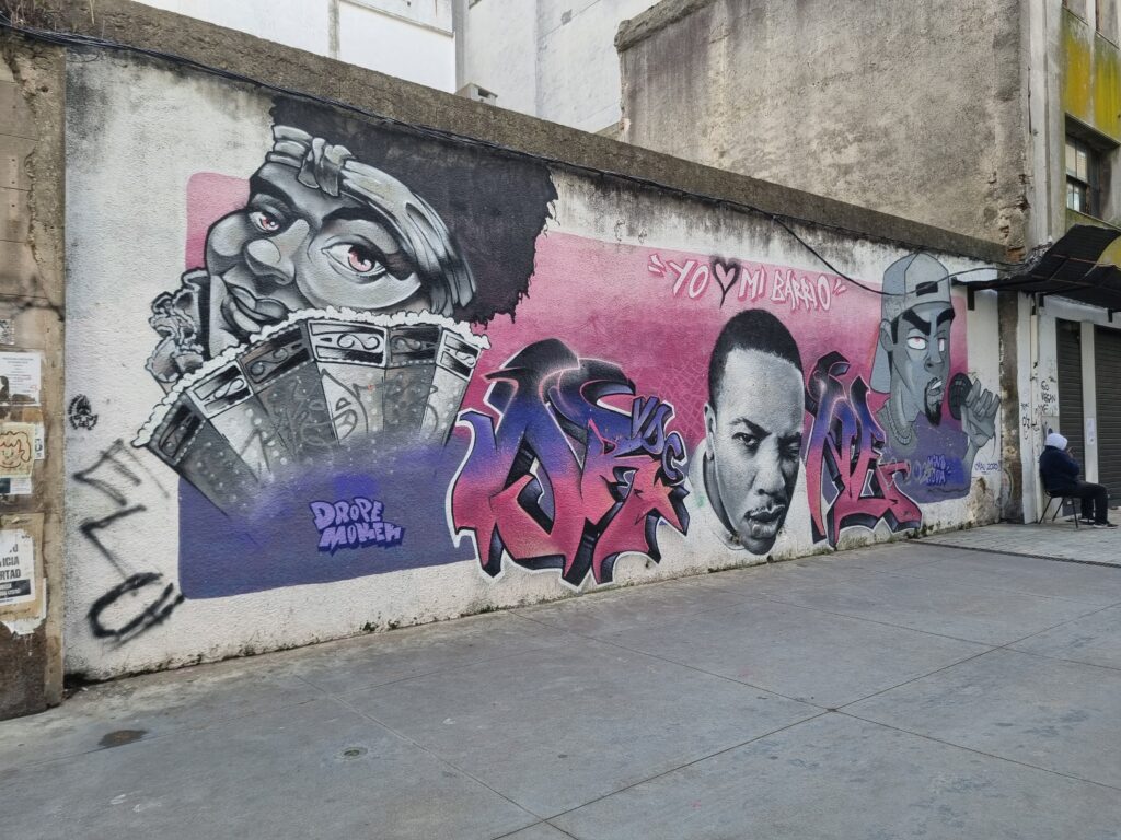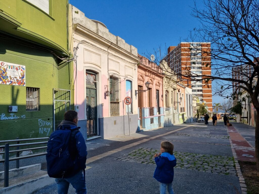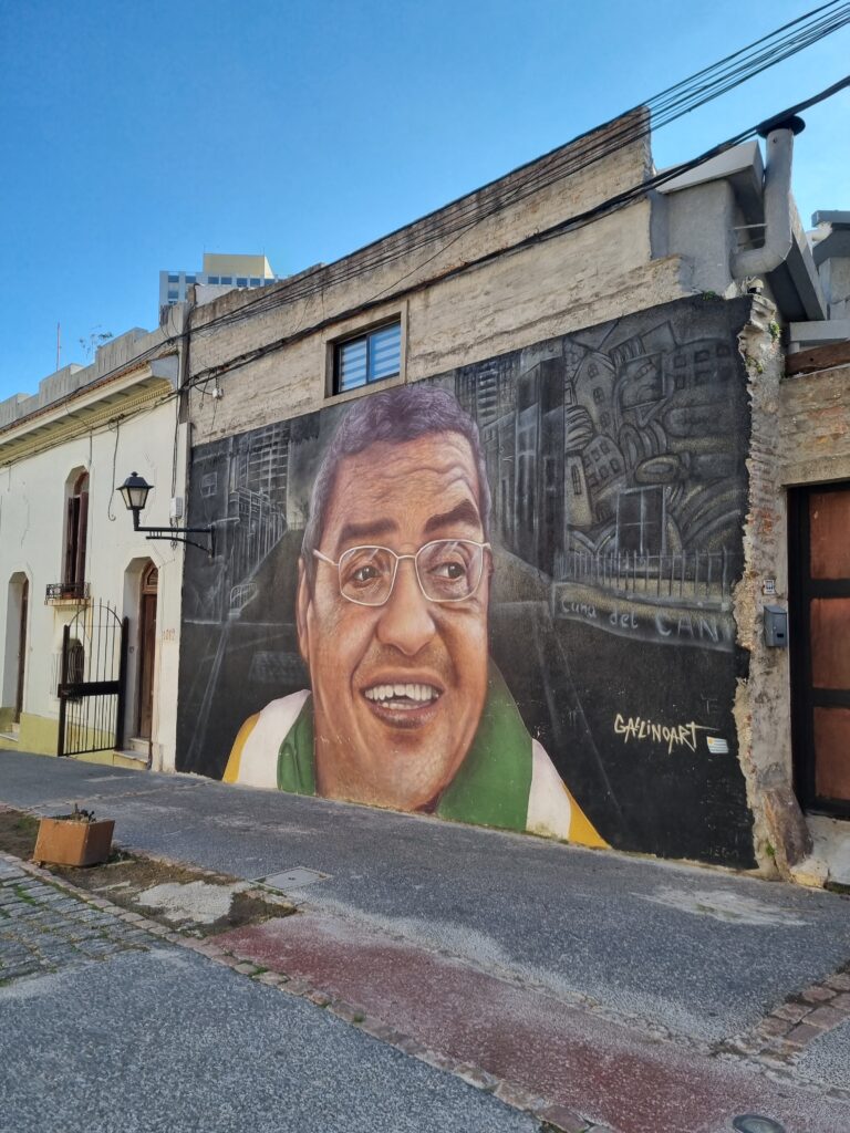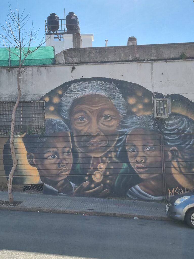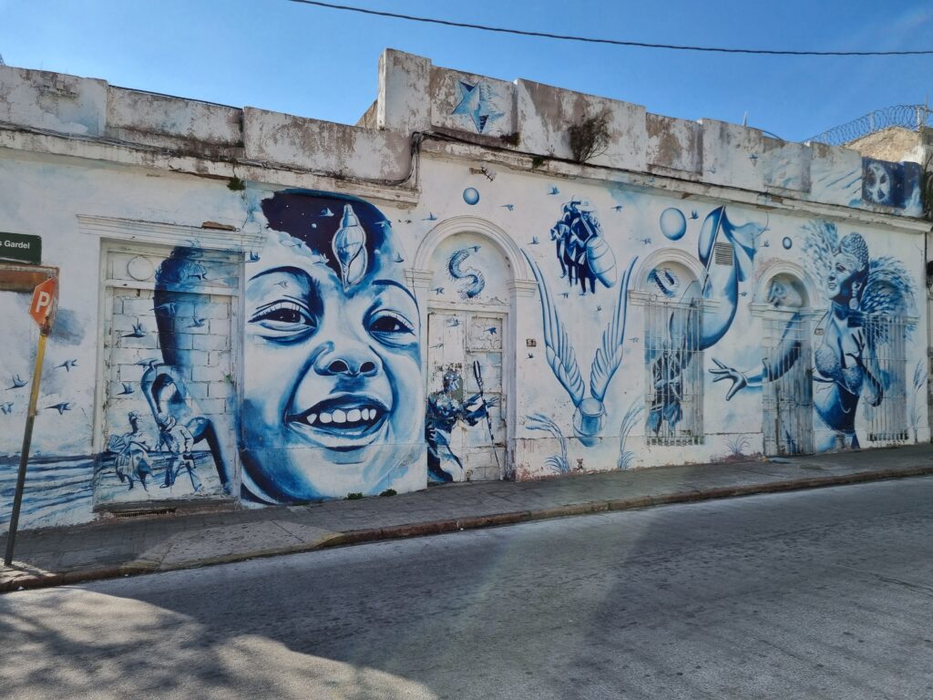 En sortant du Mirador, nous traversons Barrio Sur, le quartier Afro-uruguayen qui s’étend sur quelques pâtés de maisons entre l’avenue du 18 juillet et l’Océan. C’est un des quartiers les plus populaires de la ville où se mêlent culture africaine et sudaméricaine. Ce quartier est un véritable coup de cœur pour ma part. Ses graphs sur les murs, ses maisons typiques et colorées, pour la plupart délabrées, donnent une ambiance toute particulière à ses rues. Ici résonne l’histoire de Montevideo, on ressent quelque chose de puissant mais indescriptible…Ces rues racontent une histoire…à chacun de se l’imaginer. C’est aussi ici que réside le berceau du Candombe, cette danse populaire pratiquée lors du Carnaval principalement. Nous croisons un homme devant un bâtiment très coloré. Il nous explique que c’est une association culturelle et qu’ils reçoivent actuellement la délégation congolaise. Le son des tambours résonne dans les rues alentours. L’homme nous explique qu’un enregistrement a lieu en ce moment-même et que nous ne pouvons pas entrer pour le moment. Il nous laisse tout de même photographier les tambours typiques de cette musique traditionnelle.