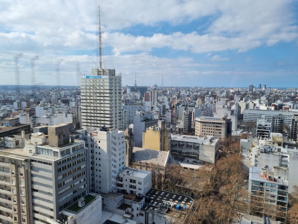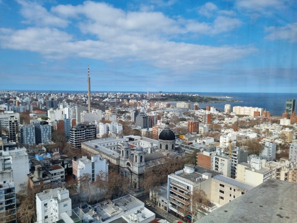 Nous découvrons ainsi les rues de la « ciudad vieja » (vieille ville) et ses jolies places (plaza Independancia, Plaza Zabala, Plaza de la Constitucion). Dans la rue Sarandi, des artisans, artistes s’installent pour étaler leurs créations. Cette rue doit être très animée en été mais à cette saison, les exposants sont assez espacés. Nous débouchons sur l’avenue du 18 juillet (jour de l’Indépendance de l’Uruguay) qui est surnommée de manière (un peu) exagérée « les Champs Elysées de Montevideo ». C’est la plus grande artère de la ville ancienne, elle est bordée de commerces en tout genres et est très bruyante. Nous la quittons pour nous diriger vers le Mirador panoramico de la Intendencia de Montevideo. Il est possible de monter gratuitement au 22ème étage de cet immeuble sur une grande terrasse qui offre une vue panoramique de la capitale. D’ici on peut observer la ville qui s’étire à perte de vue le long de l’Océan. En effet, la vieille ville a été construire sur une petite péninsule et n’a cessé de s’étaler vers l’est en longeant le littoral. La métropole s’étire sur près de 20km. Aujourd’hui, les classes moyennes supérieures et les classes aisées ont déserté la vieille ville pour s’installer dans les quartiers de Los Pacitos et même à une quinzaine de kilomètres, proche de l’aéroport international.