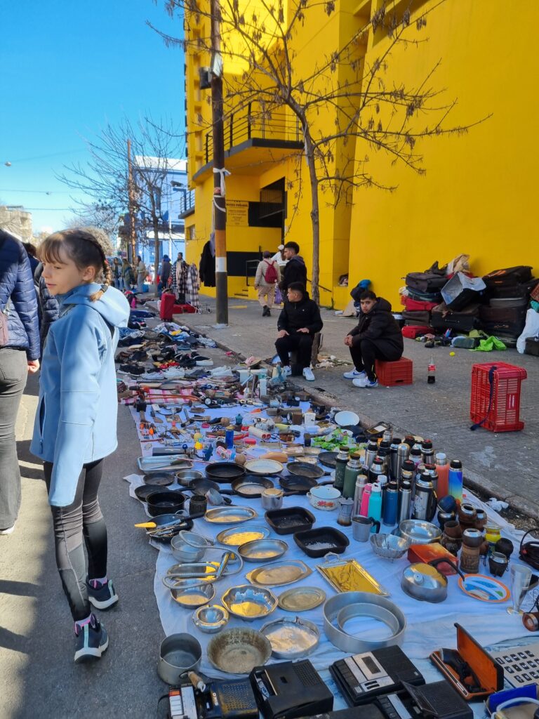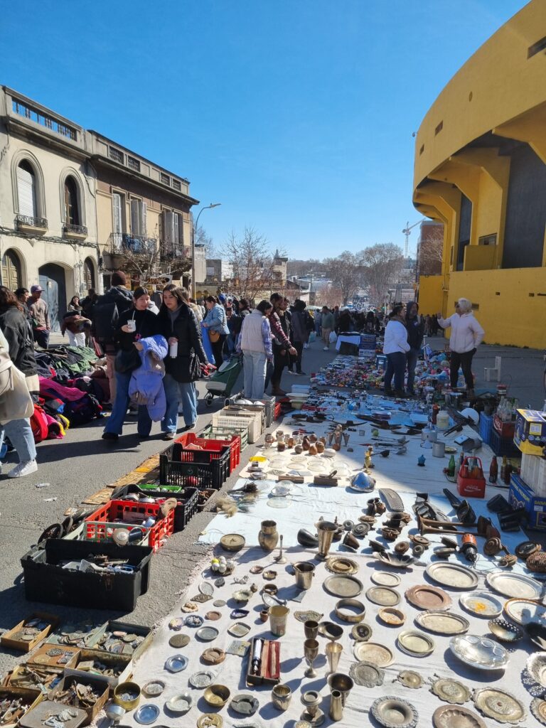 Le lendemain, nous prenons le bus pour nous rendre aux ferias de Tristan Narvaja. C’est une grande braderie qui s’étale sur plusieurs rues dans le centre ville…des kilomètres d’exposants en tout genre : marchands de fruits et légumes, de fromage, quincaillerie, jouets, souvenirs, antiquités mais aussi des habitants qui exposent des objets dont ils veulent se débarrasser. En Uruguay, les marchés et les ferias sont le meilleurs endroit pour faire des courses à prix abordable. En effet, les prix dans les supermarchés sont vraiment très élevés, 20 à 30% plus chers qu’en France. C’est pourquoi les ferias sont bondées, on avance lentement à travers la foule de badauds. Au bout d’une bonne heure, la foule nous oppresse, nous choisissons de quitter les ferias pour aller manger dans un restaurant conseillé par Claudia, la propriétaire de notre Air BnB.