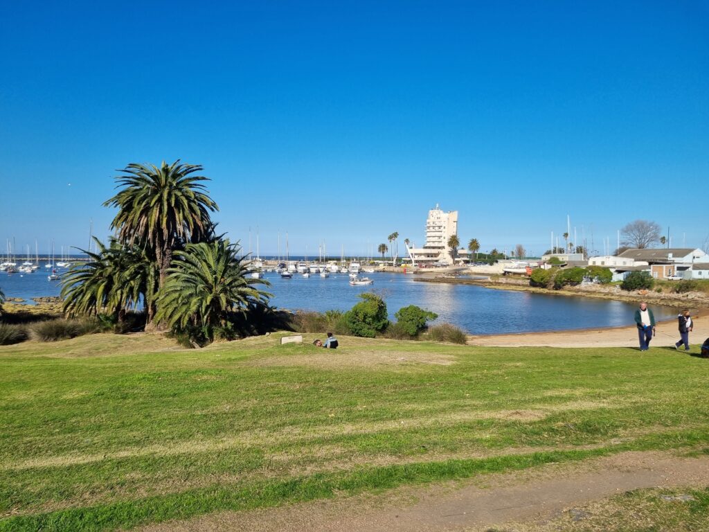 Nous continuons notre balade et arrivons sur la rambla qui longe l’Océan atlantique. Nous marchons en direction de Punta Carreta. Nous croisons beaucoup d’habitants qui se promènent, courent, font du vélo, pêchent et boivent leur maté en discutant, assis sur les murets qui bordent l’océan. Les Uruguayens semblent apprécier d’être dehors, quelque soit le temps. Il ne fait pas très chaud, 14°C tout au plus mais les gens ne semblent pas être sensibles au froid.