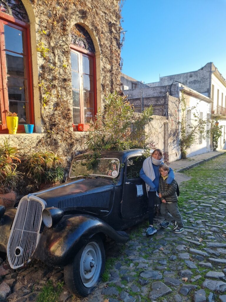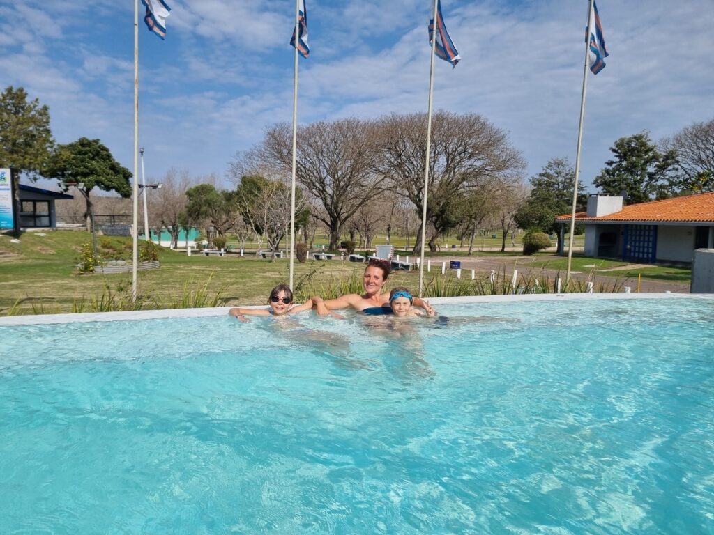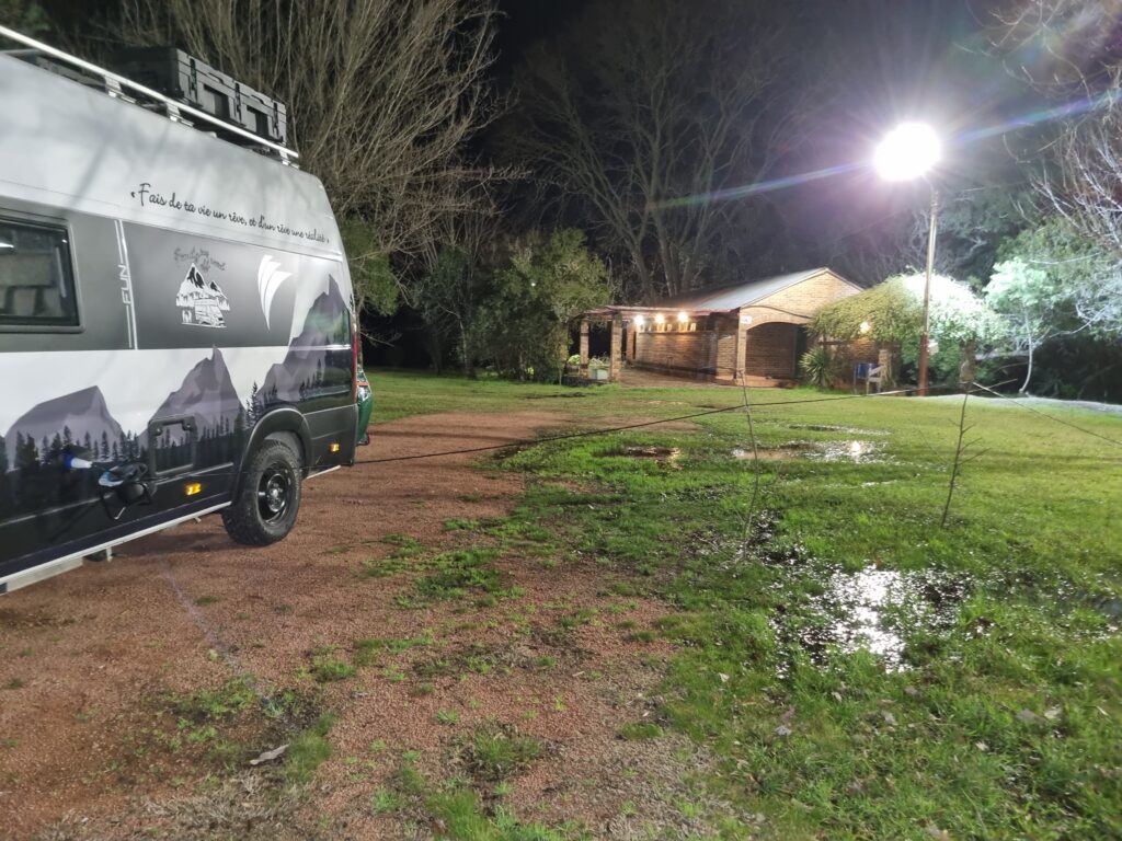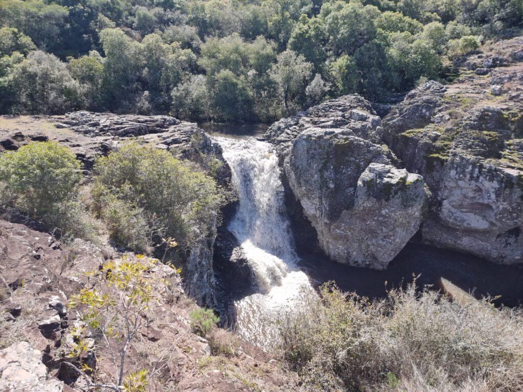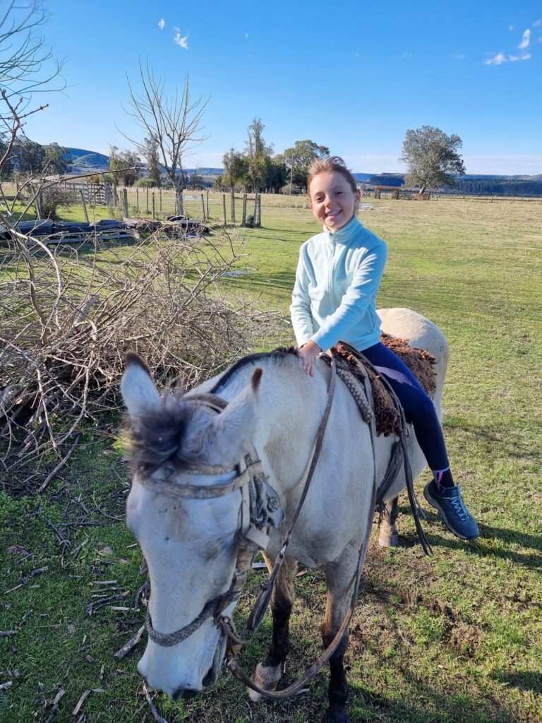 Ils nous ont très bien accueillis chez eux, ils nous ont proposé de l’eau, de l’électricité et des sanitaires. Nous nous sommes posés, il était déjà tard. Le lendemain nous sommes partis faire une balade à cheval. Nathalia, notre guide, nous a distribué les chevaux. David dit qu’ici ils n’ont que des doubles poneys car c’est plus robuste. J’ai monté une ponette très jolie, mais la beauté ne fait pas le caractère ! Nathalia nous a laissé trotter et galoper dans les champs. Elle est venue avec sa fille Mano (Emmanuella), 4 ans qui manie le cheval avec un fouet comme une pro. Je me suis rendue compte qu’ici, l’équitation n’était pas comme en France. Pendant la balade, Nathalia nous a fait voir un des arbres endémiques d’Uruguay. Il s’appelle Seibo. Il peut atteindre 2 à 10 mètres. Nous sommes rentrés au camion pour vaquer à nos occupations. Le lendemain, Nathalia nous a emmenés faire une balade à pied sur leurs terres pour voir une cascade. Nous avons pu aller dessous. Ce n’est pas souvent que l’on peut faire ça !!! Nous sommes rentrés et nous avons repris la route.