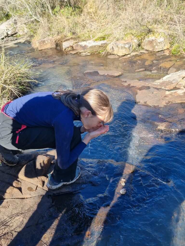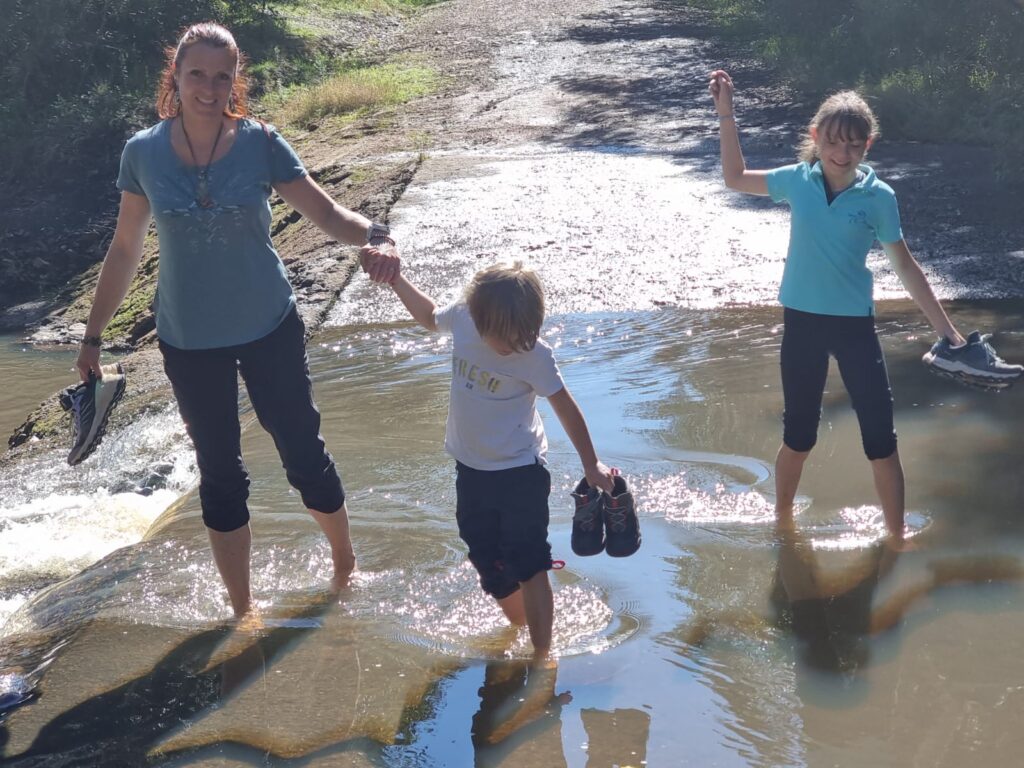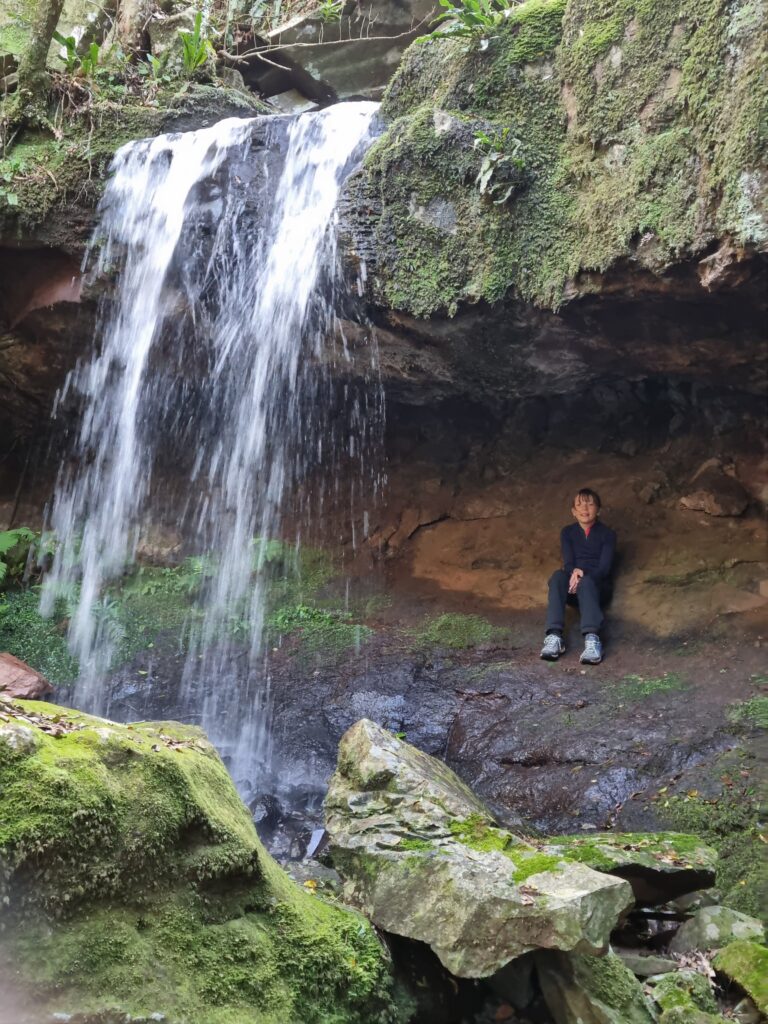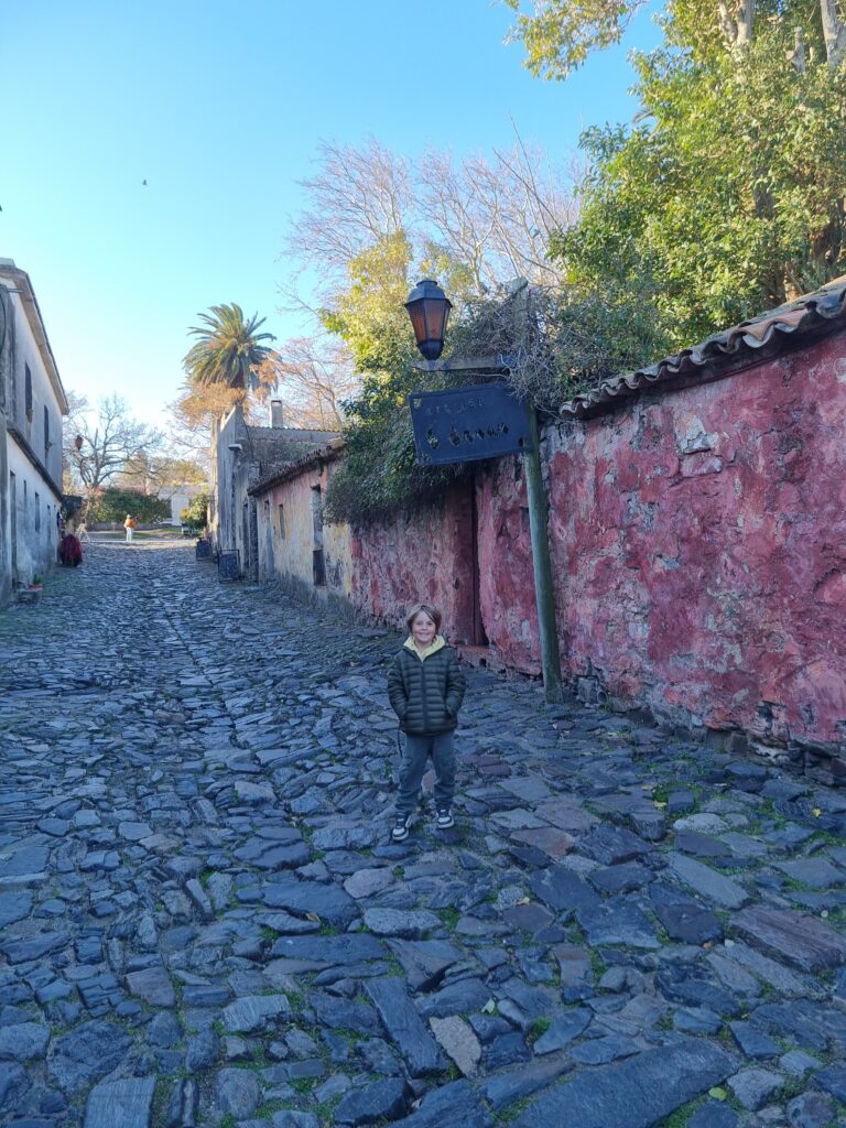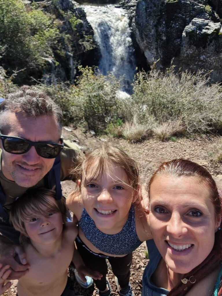 Ils nous ont très bien accueillis chez eux, ils nous ont proposé de l’eau, de l’électricité et des sanitaires. Nous nous sommes posés, il était déjà tard. Le lendemain nous sommes partis faire une balade à cheval. Nathalia, notre guide, nous a distribué les chevaux. David dit qu’ici ils n’ont que des doubles poneys car c’est plus robuste. J’ai monté une ponette très jolie, mais la beauté ne fait pas le caractère ! Nathalia nous a laissé trotter et galoper dans les champs. Elle est venue avec sa fille Mano (Emmanuella), 4 ans qui manie le cheval avec un fouet comme une pro. Je me suis rendue compte qu’ici, l’équitation n’était pas comme en France. Pendant la balade, Nathalia nous a fait voir un des arbres endémiques d’Uruguay. Il s’appelle Seibo. Il peut atteindre 2 à 10 mètres. Nous sommes rentrés au camion pour vaquer à nos occupations. Le lendemain, Nathalia nous a emmenés faire une balade à pied sur leurs terres pour voir une cascade. Nous avons pu aller dessous. Ce n’est pas souvent que l’on peut faire ça !!! Nous sommes rentrés et nous avons repris la route.
